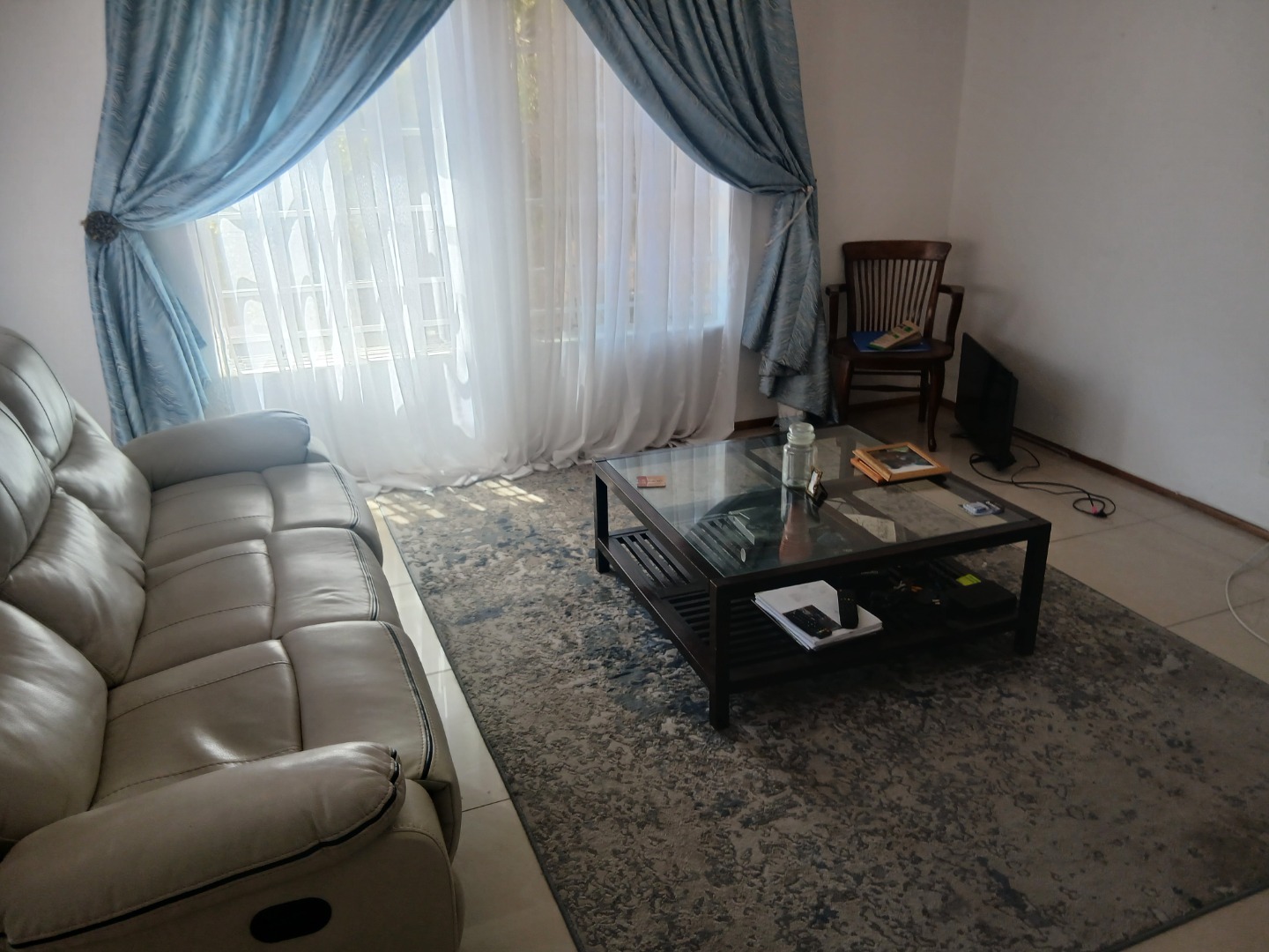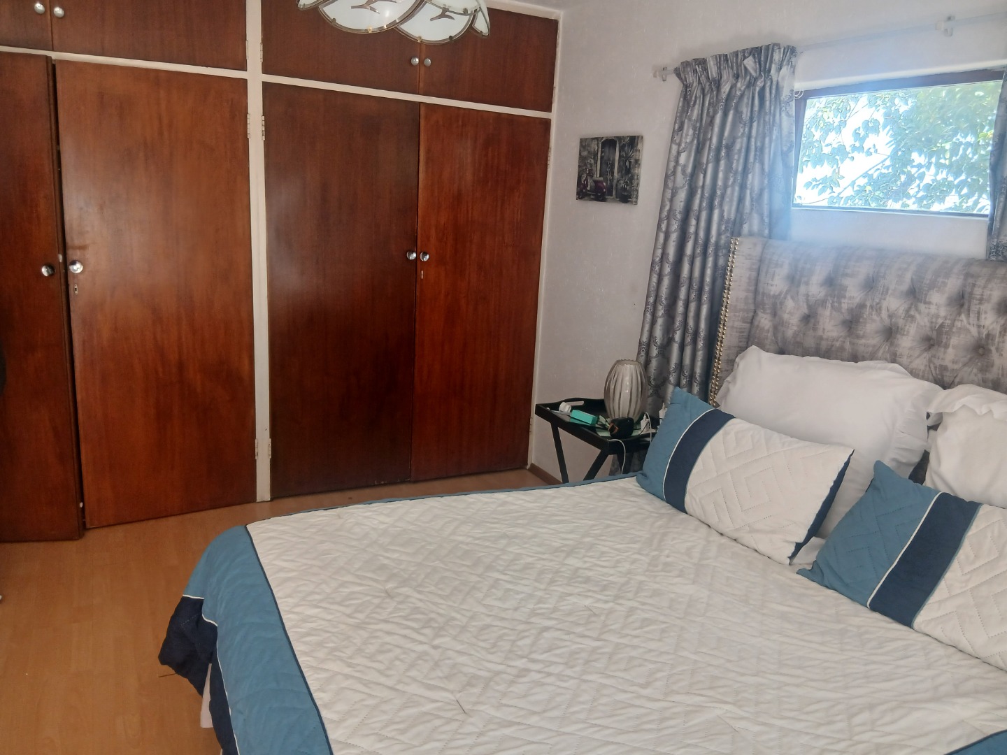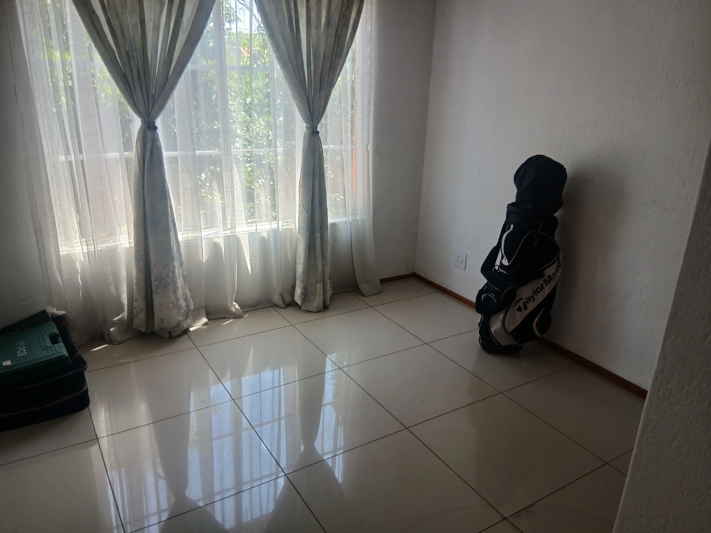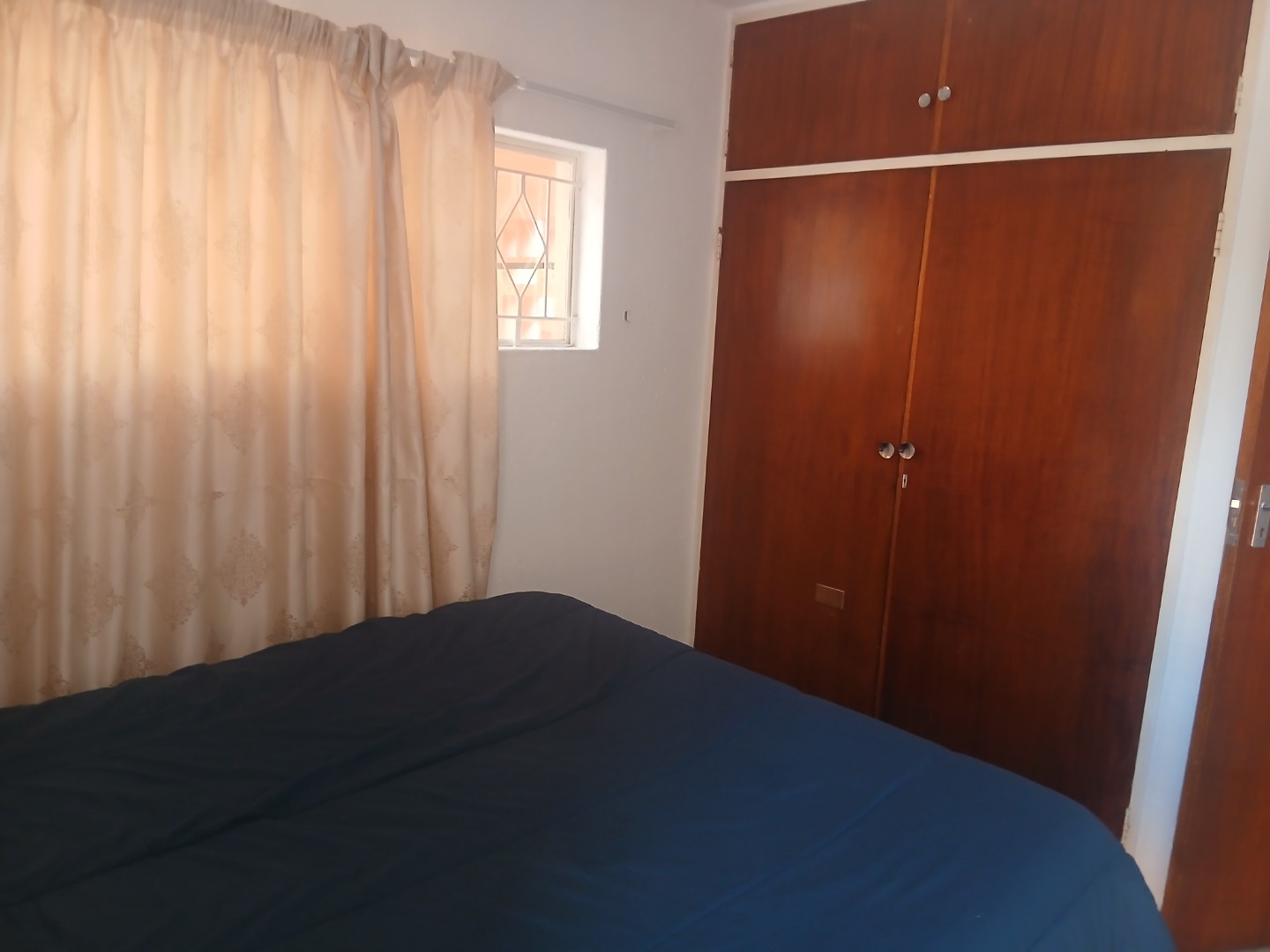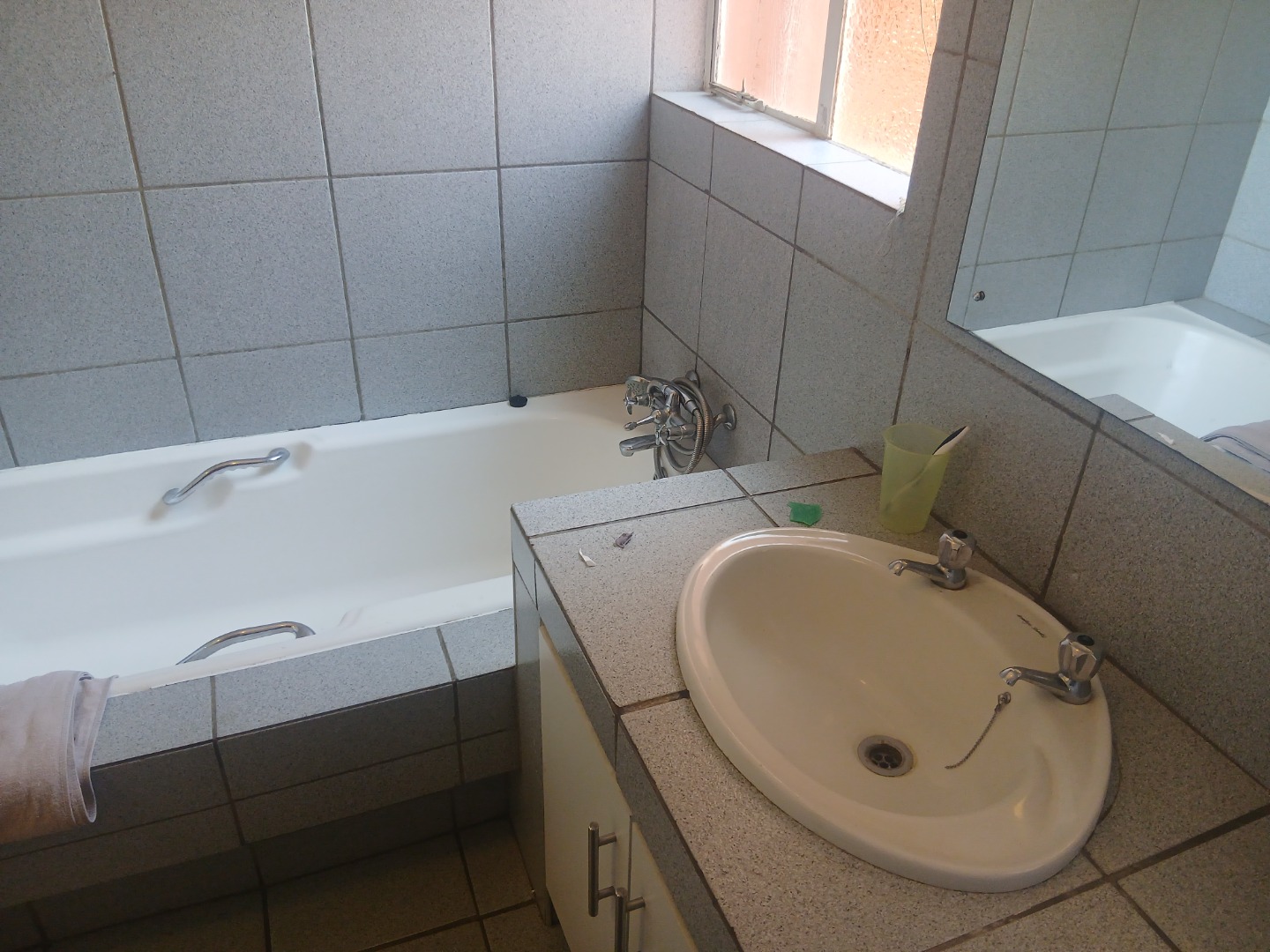 Spacious top floor unit in a small complex located in a quiet area. The unit features a tiled open plan dining and living area. The kitchen is huge with lots of cupboards, island, gas hob and fire place. The main bedroom has an ensuite bathroom, built in cupboards, balcony and space for a king size bed. The two other well sized tiled bedrooms have built in cupboards and enough space for double and queen beds. The patio is spacious and hosts a beautiful view, built in braai with enough space for a table and chairs. There is one automated garage with ample space for visitors to park. A must see for people who require a lock up and go!