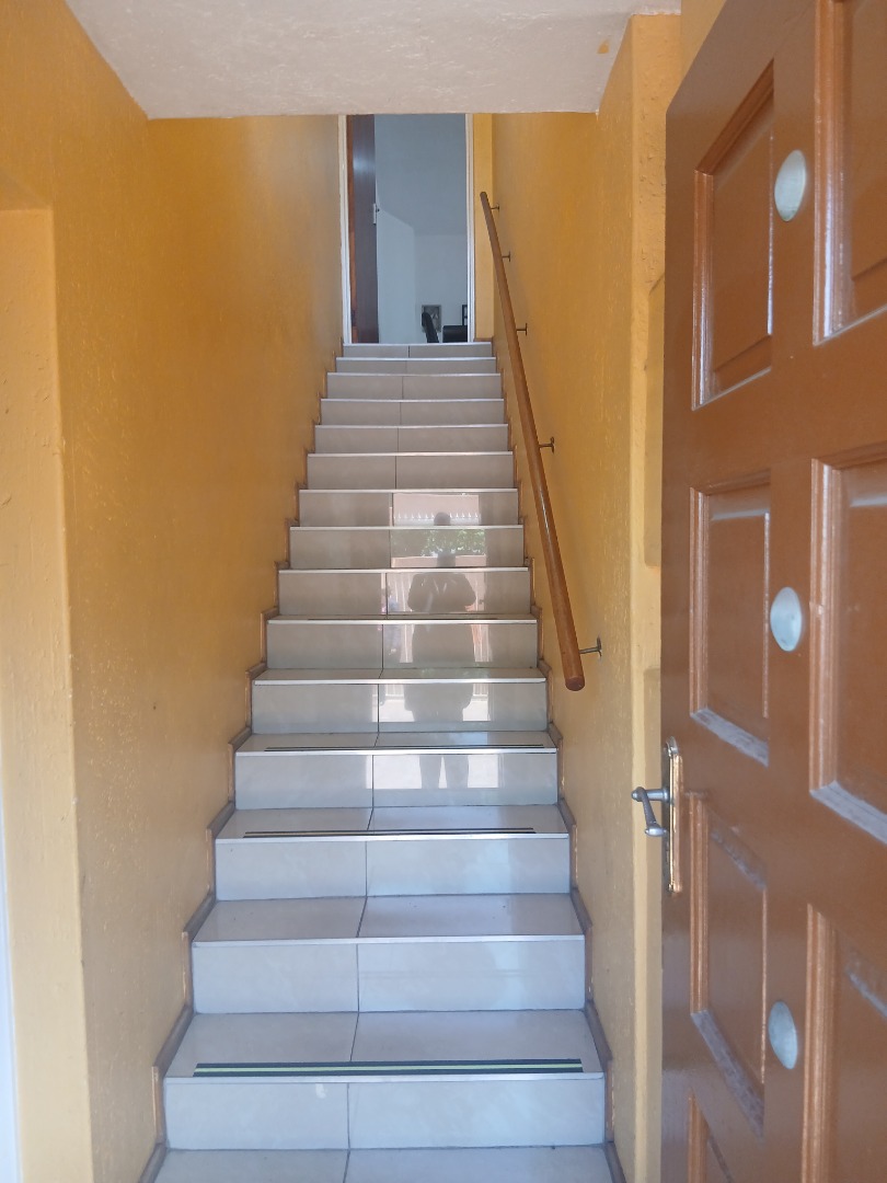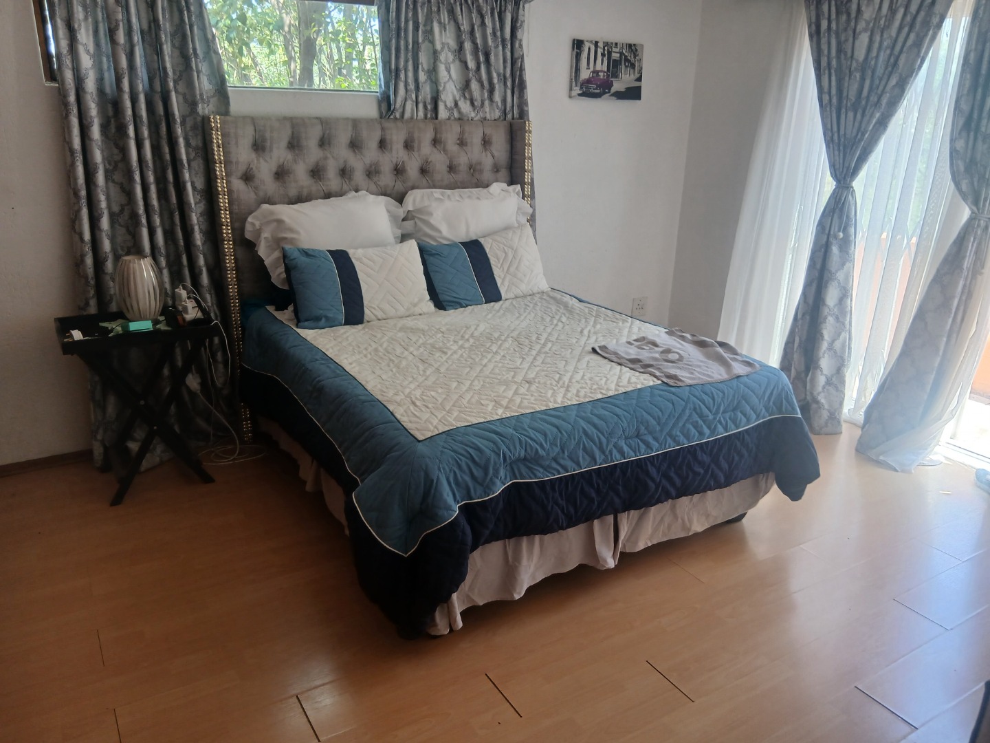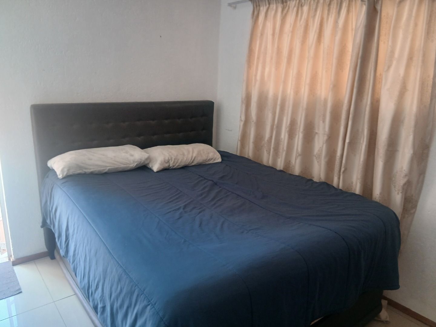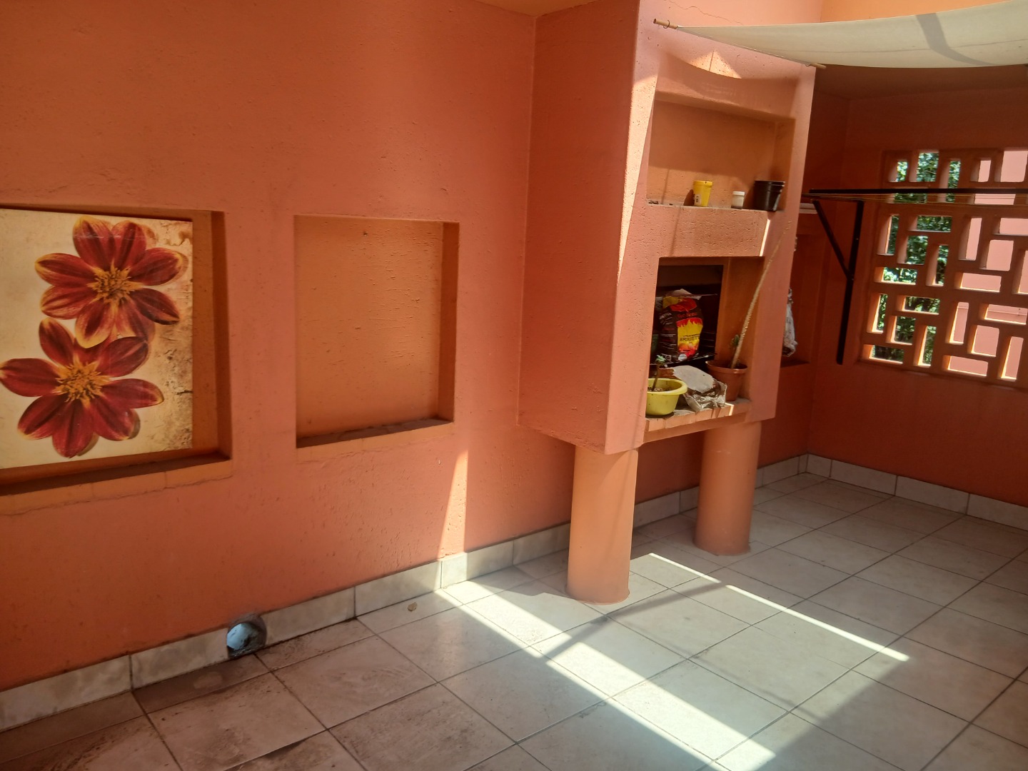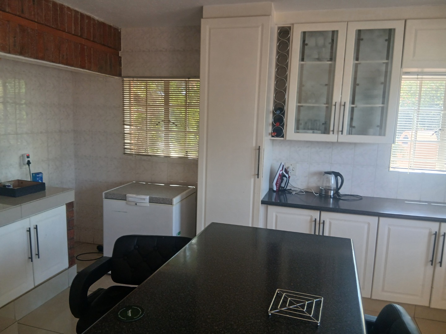 Spacious top floor unit in a small complex located in a quiet area. The unit features a tiled open plan dining and living area. The kitchen is huge with lots of cupboards, island, gas hob and fire place. The main bedroom has an ensuite bathroom, built in cupboards, balcony and space for a king size bed. The two other well sized tiled bedrooms have built in cupboards and enough space for double and queen beds. The patio is spacious and hosts a beautiful view, built in braai with enough space for a table and chairs. There is one automated garage with ample space for visitors to park. A must see for people who require a lock up and go!