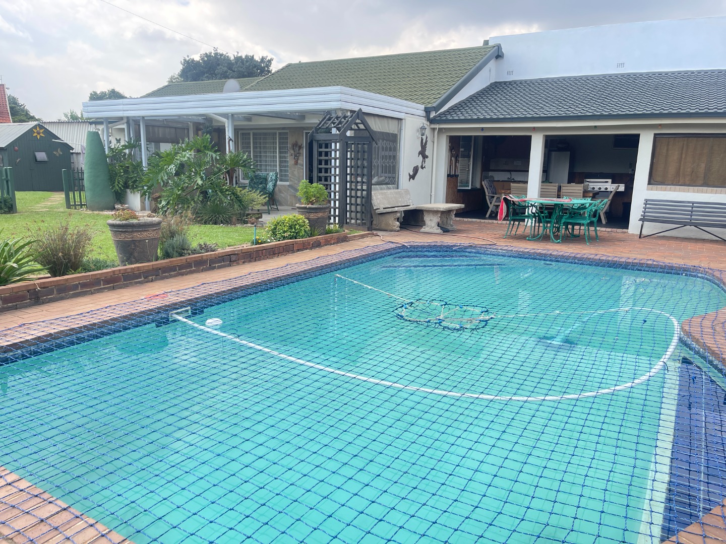 - Pool, patio, and Wendy house