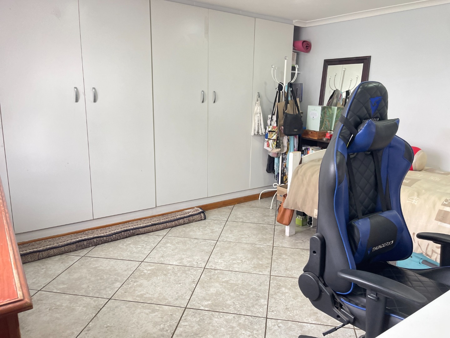 - Bedroom is fully tiled, ensuring easy maintenance