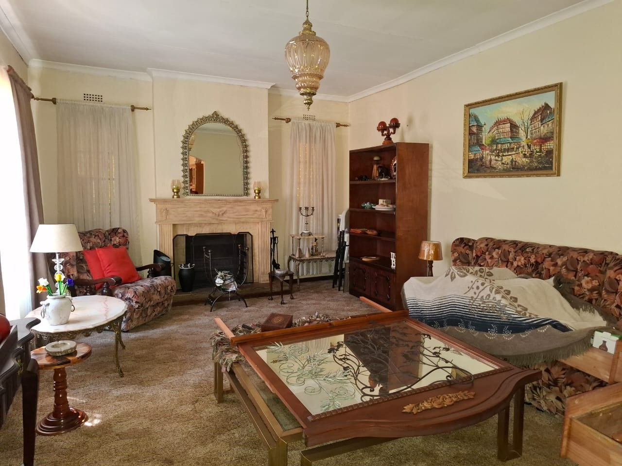 The main residence features a thoughtfully designed interior, comprising a formal lounge, a dedicated dining room, and a cosy TV room complete with a classic fireplace, perfect for relaxation. The functional kitchen is equipped with a standalone stove, featuring a gas hob and electric oven, catering to all culinary needs.