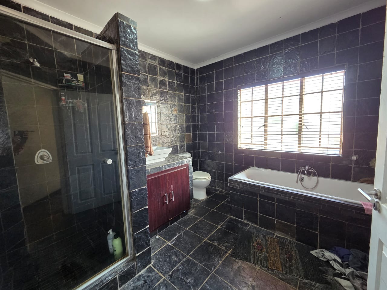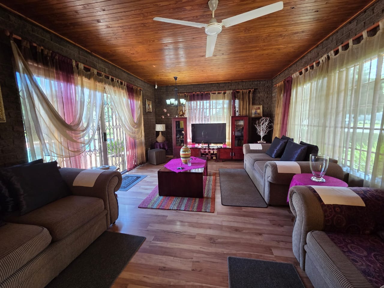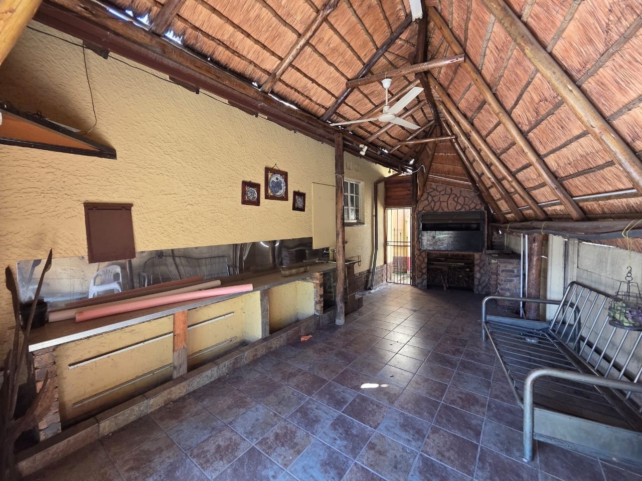 Step outside to enjoy a sparkling swimming pool, thatched entertainment area, and built-in braai, creating the perfect setting for outdoor entertaining.