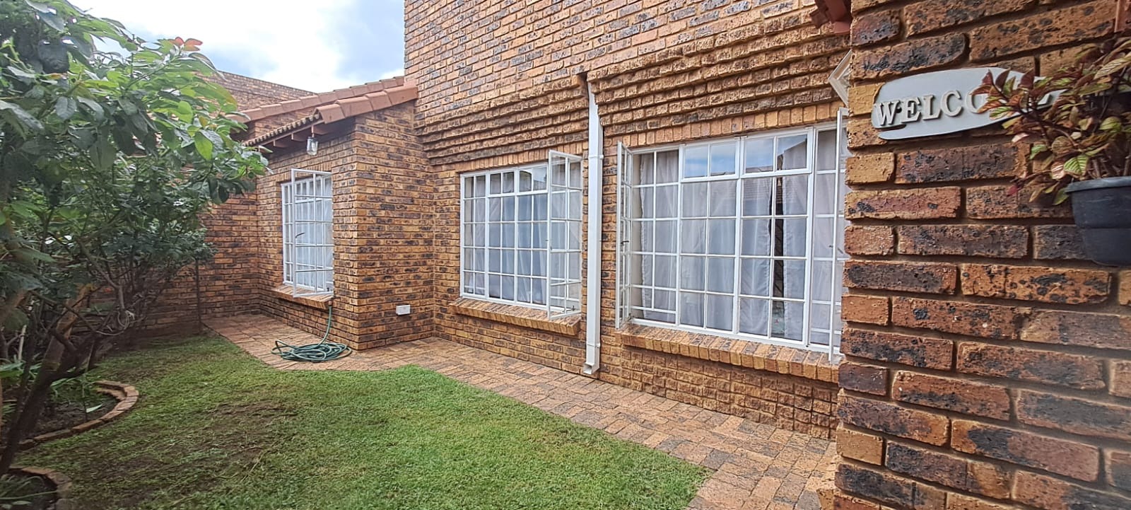 A covered patio opens onto a private, easy-to-maintain garden, perfect for relaxed outdoor living.