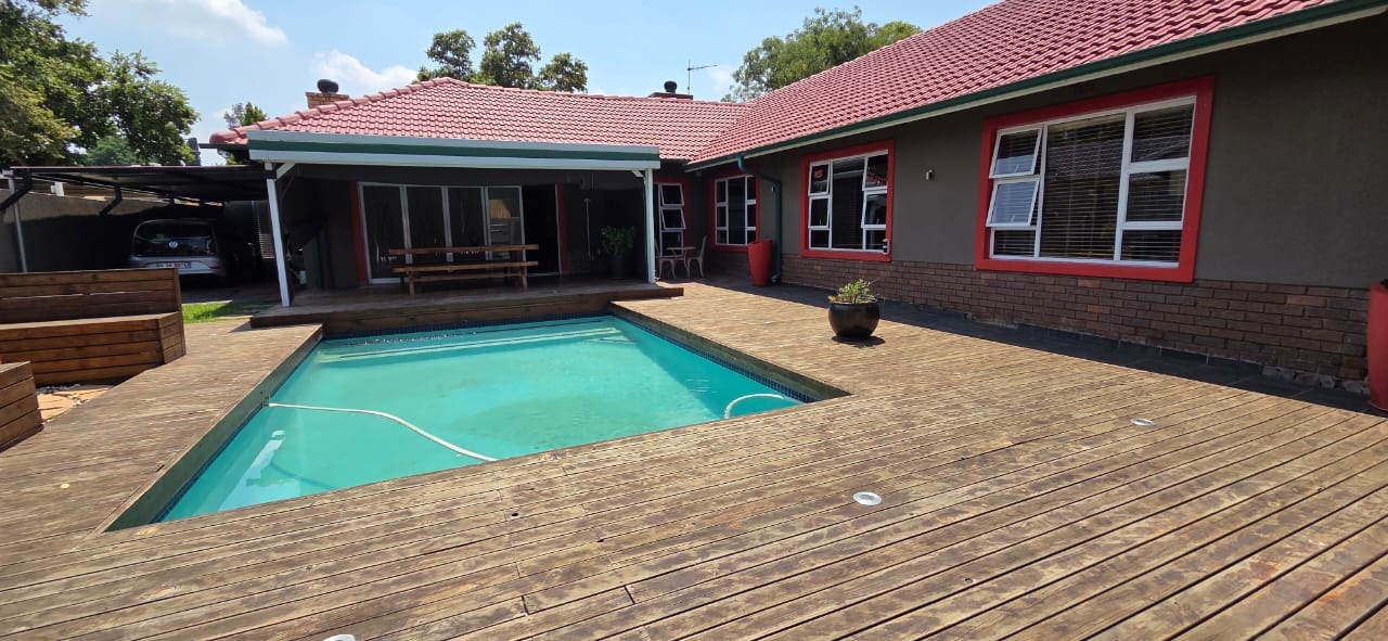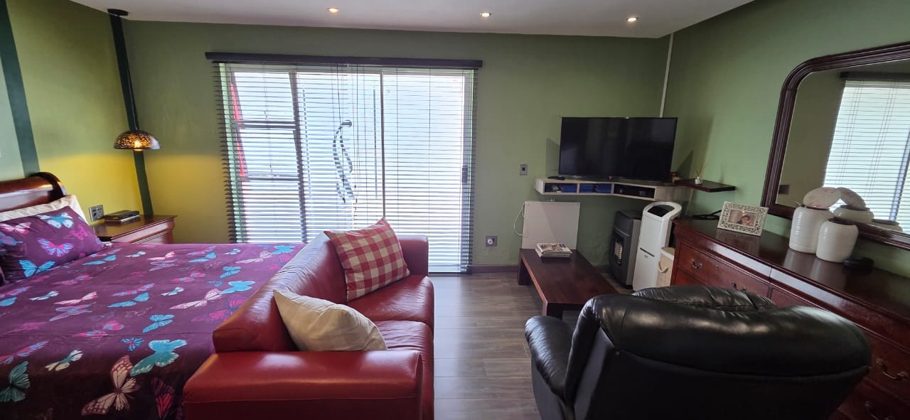 Step inside to a bright and airy open-plan lounge with a welcoming fireplace, flowing seamlessly into a family and entertainment area complete with a built-in braai and pool table—ideal for social gatherings or relaxed family time. A separate dining area connects to a sleek, modern kitchen featuring granite countertops, a centre island with gas hob, ample storage, a breakfast nook, and high-quality appliances, perfect for culinary enthusiasts.