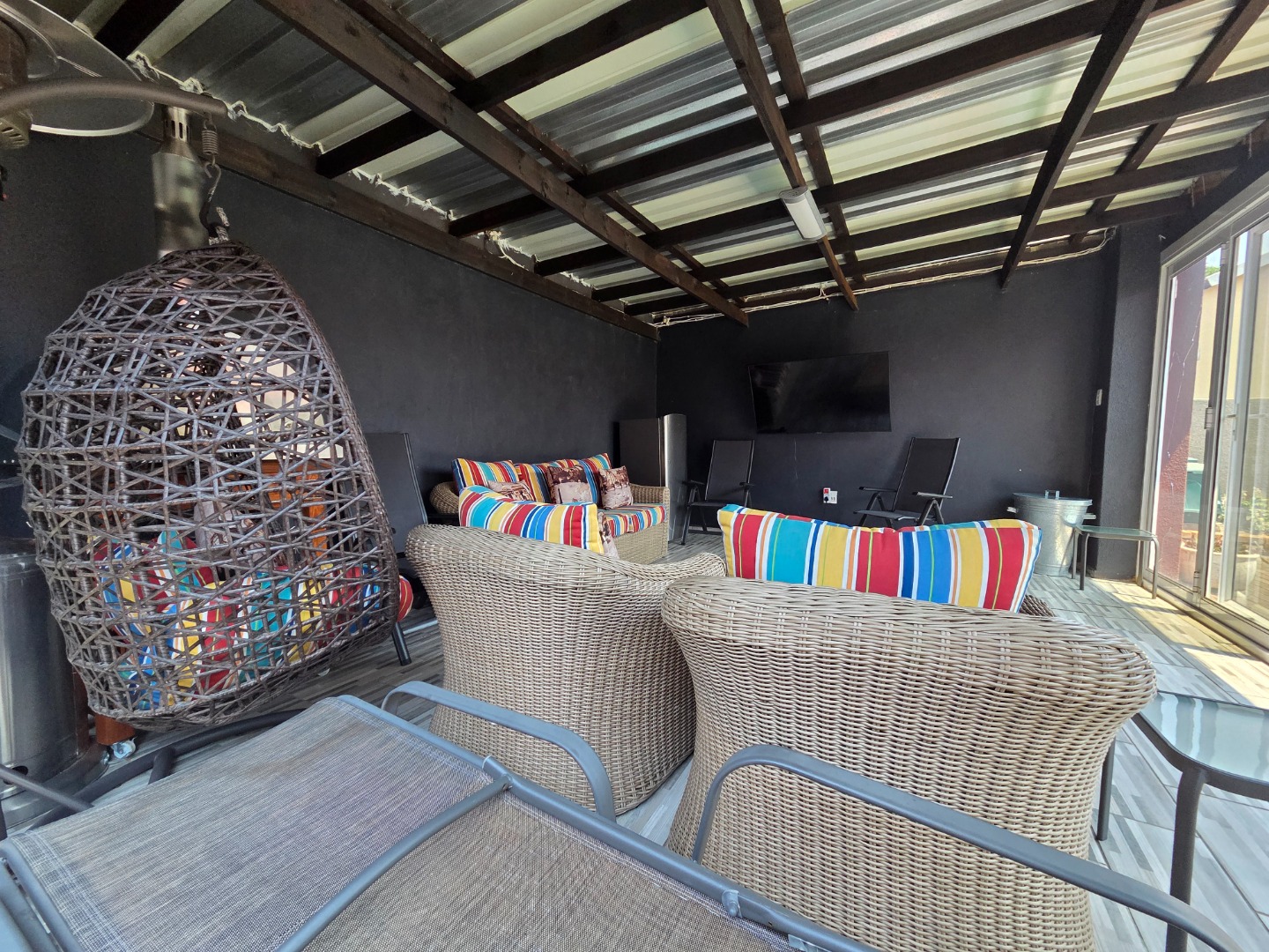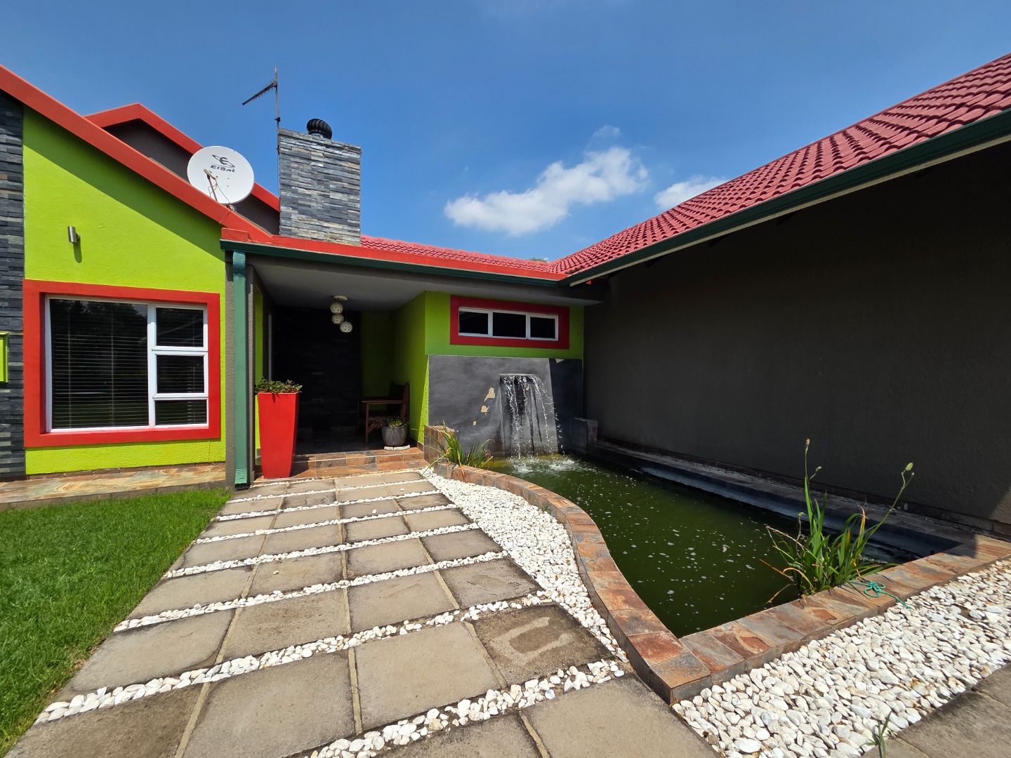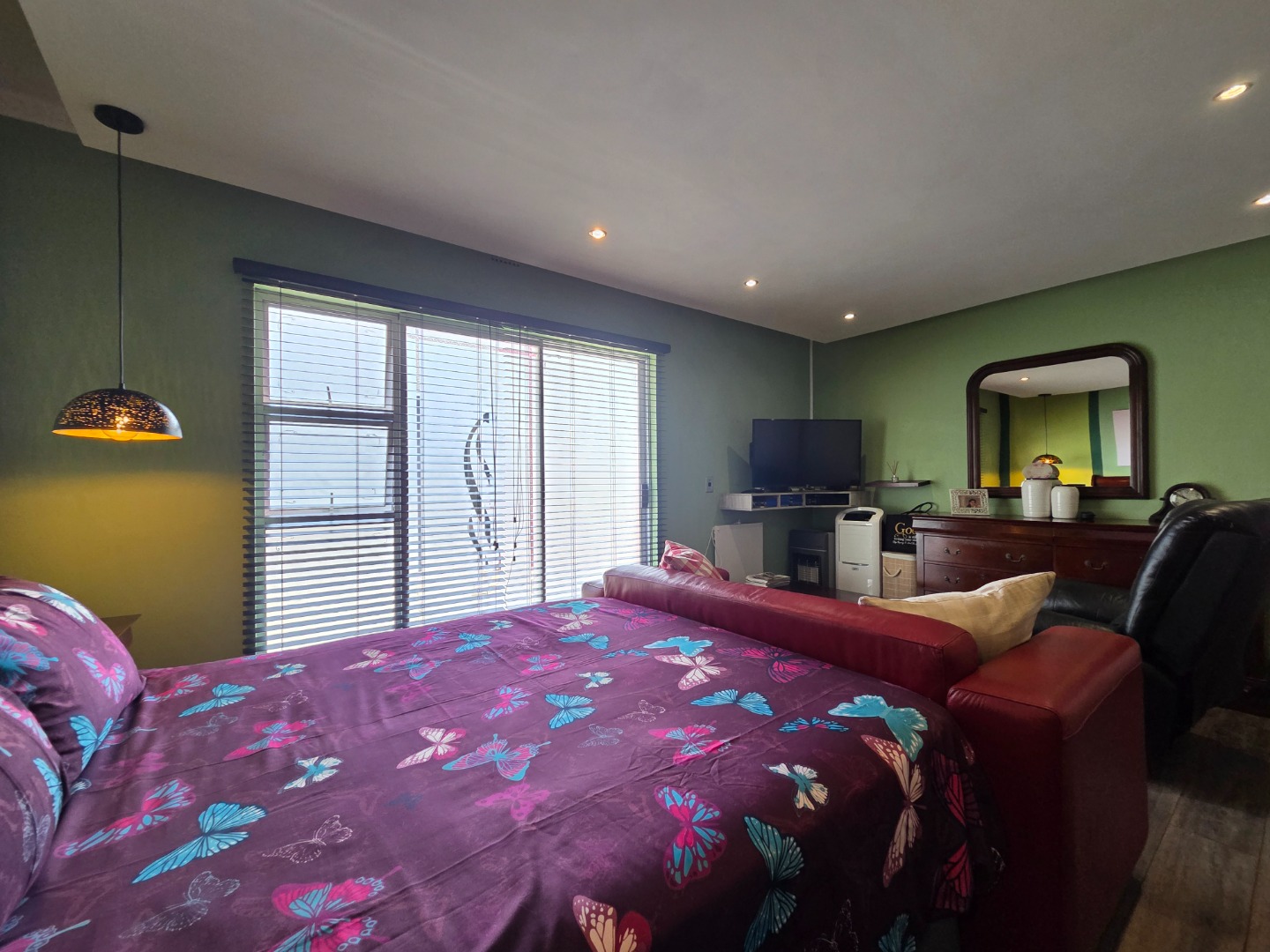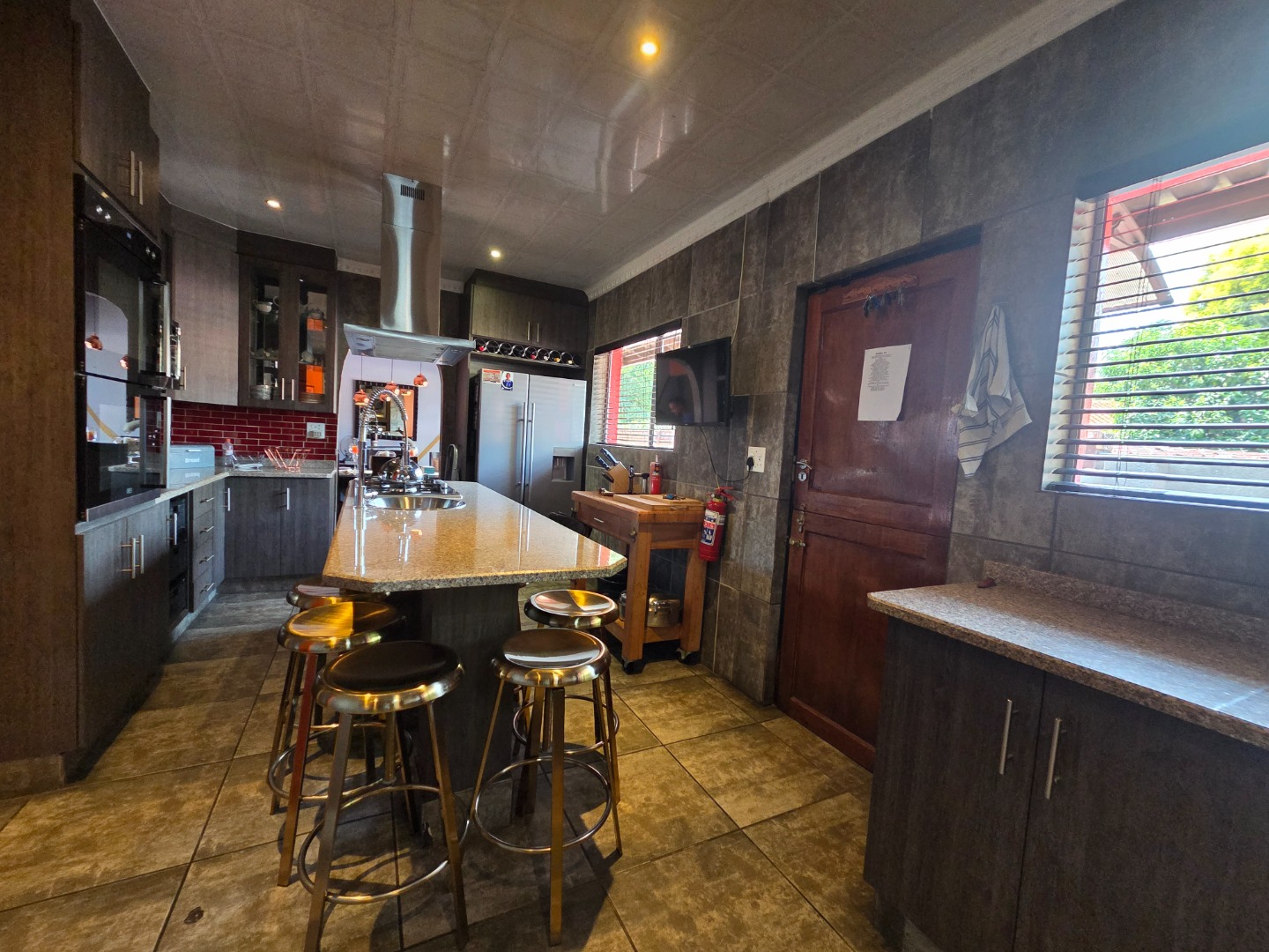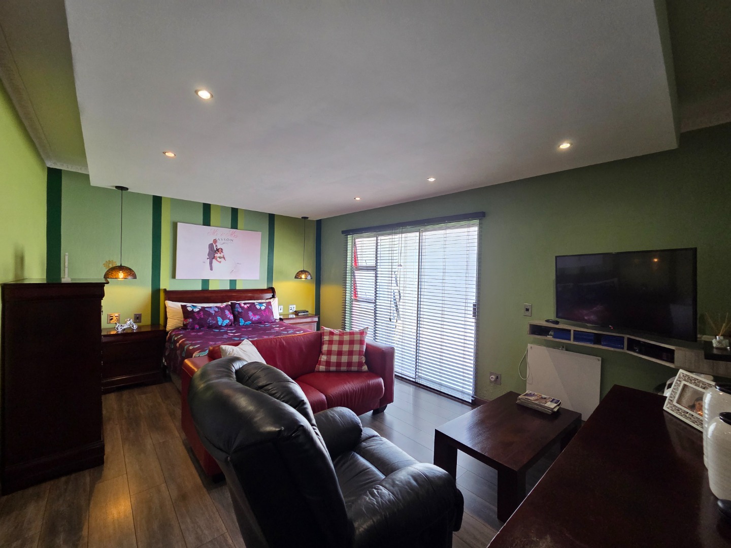 A dedicated dining room and study—which can easily be converted into a cinema room or private office—add versatility to the layout. The entertainment room features a built-in braai and sliding doors that open onto a patio overlooking the swimming pool and garden, ideal for relaxed gatherings.