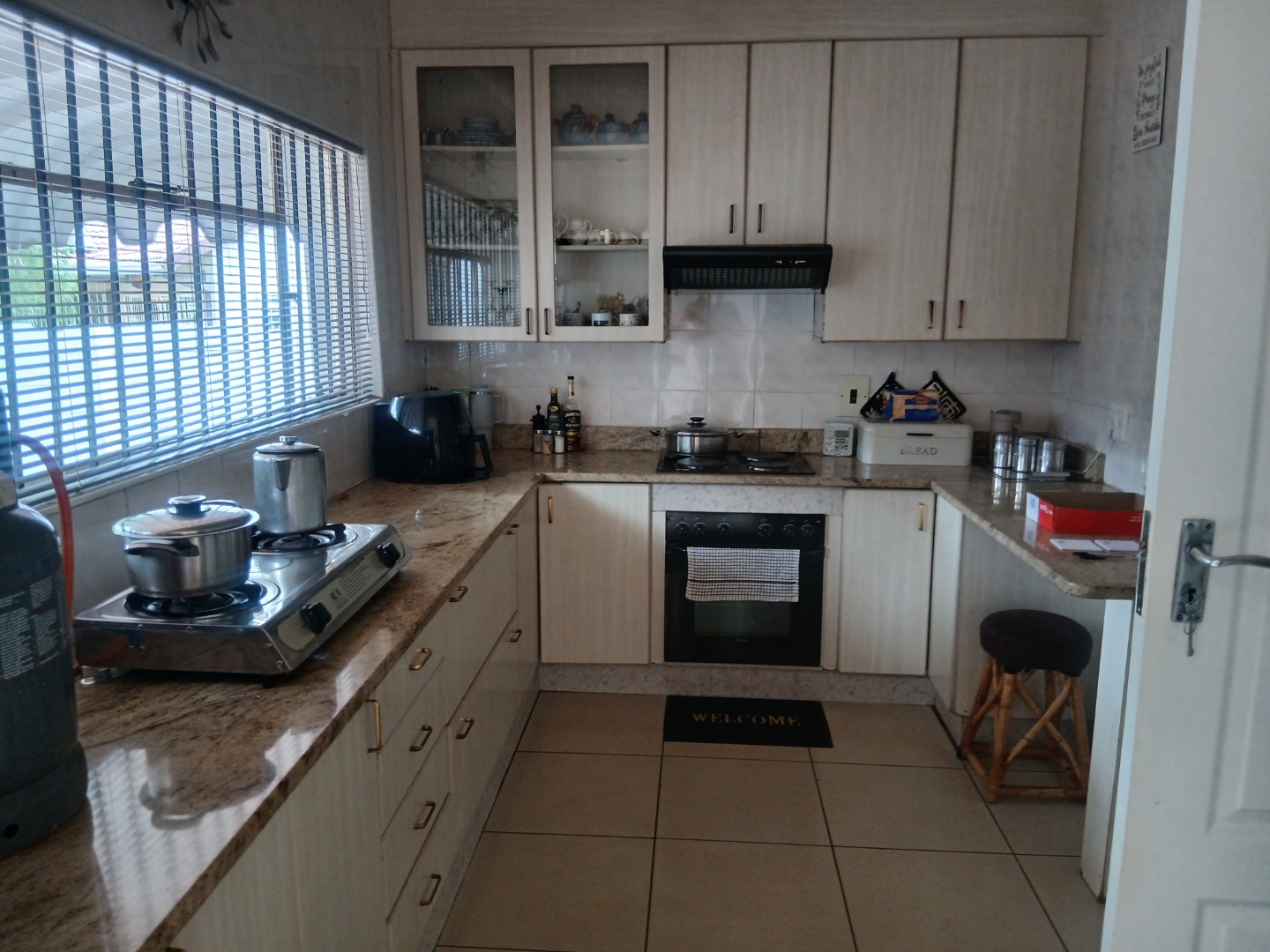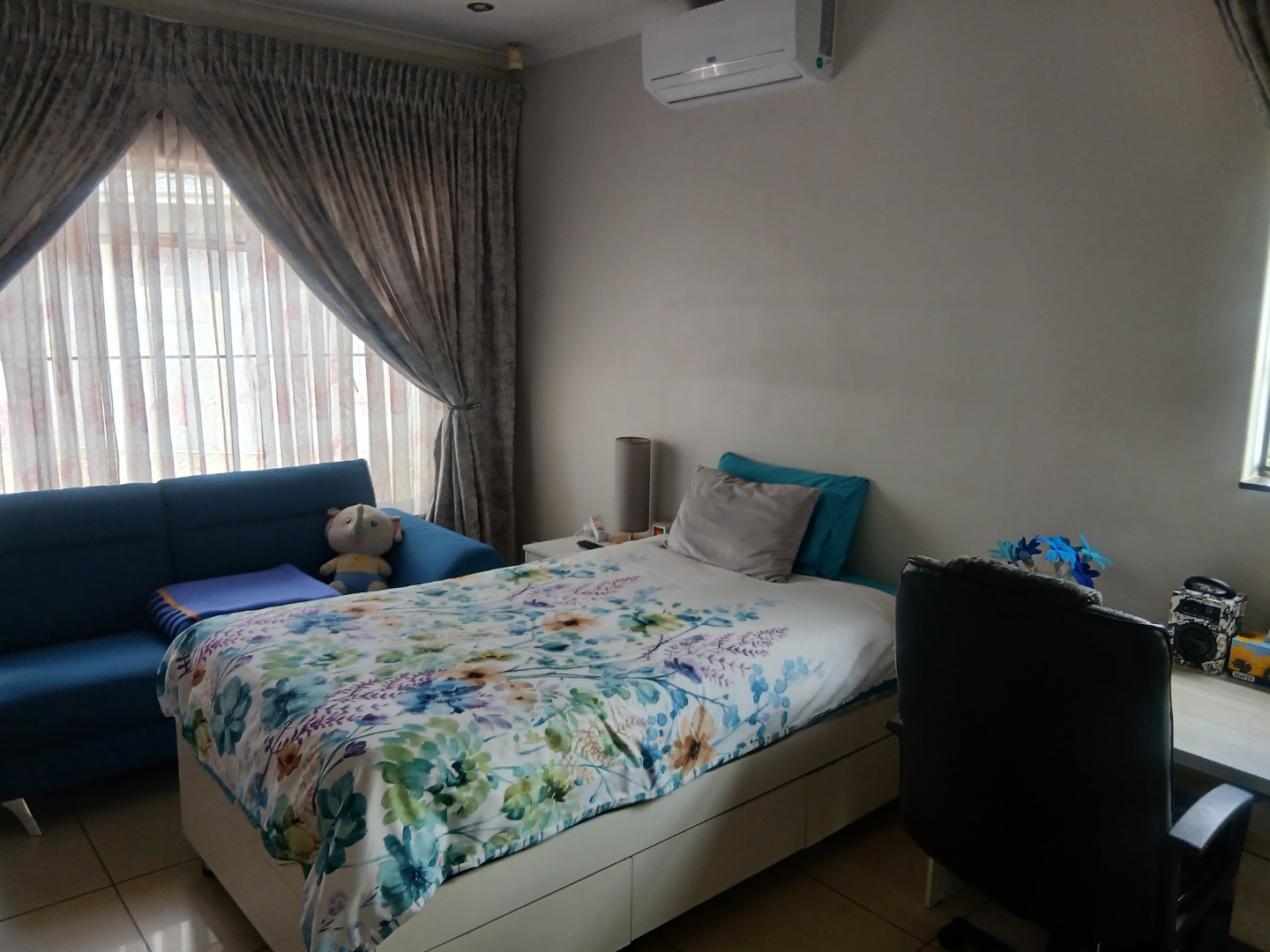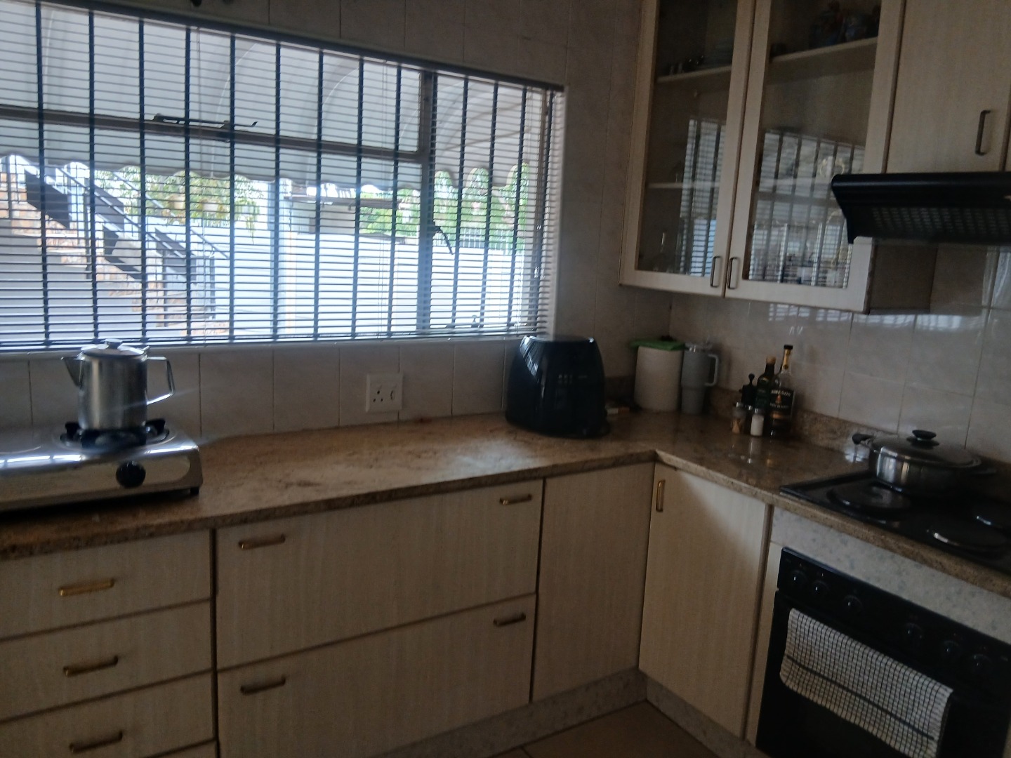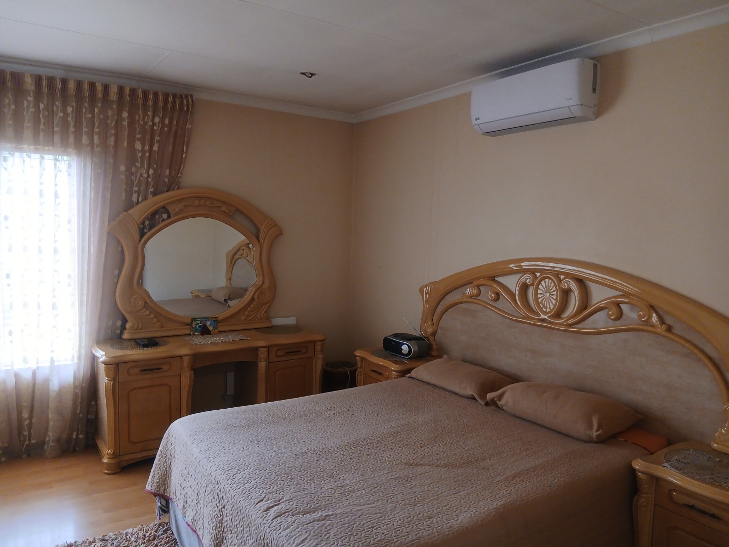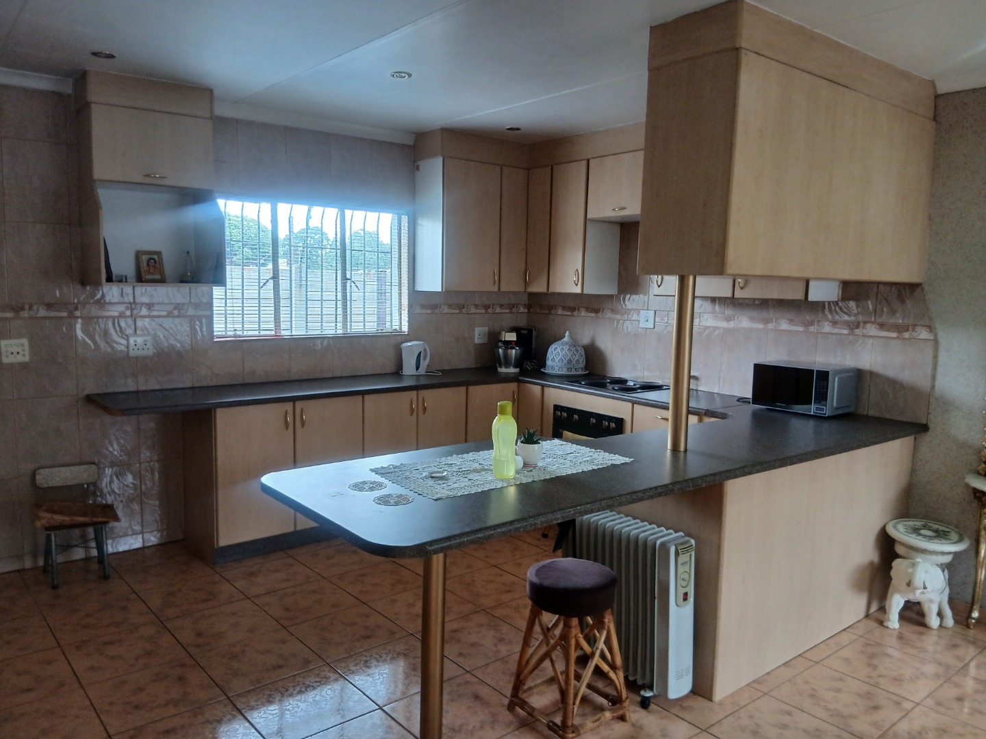 This immaculate, move-in-ready property is ideal for the extended family and includes a spacious 2-bedroom flat. Wonderfully maintained and offering generous living spaces, this home is perfect for comfortable living and effortless entertaining .The main house features a modern kitchen with granite countertops and ample cupboard space, bright tiled lounge fitted with a cozy fireplace, spacious dining room—perfect for hosting social gatherings, three well-sized bedrooms all with built-in cupboards, two modern bathrooms, including a stylish en-suite to the main bedroom. The flatlet features a large open-plan kitchen and lounge, ideal for independent living, two bedrooms, each with built-in cupboards, one modern tiled bathroom plus a separate toilet, ensuring convenience and comfort. Outside is a large, well-maintained yard with plenty of space for children and pets, sparkling swimming pool—great for summer days. Big double automated garage plus double carport for additional parking, large storeroom for extra storage or workspace, outside shower and toilet.
