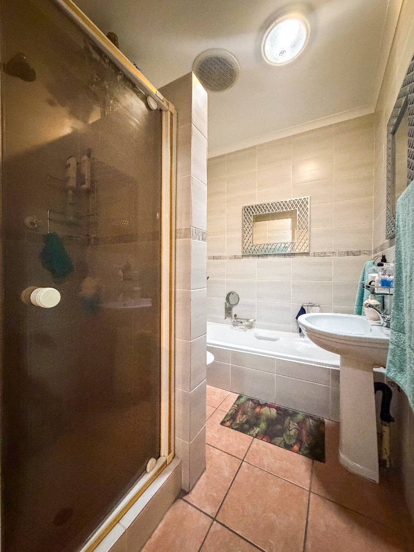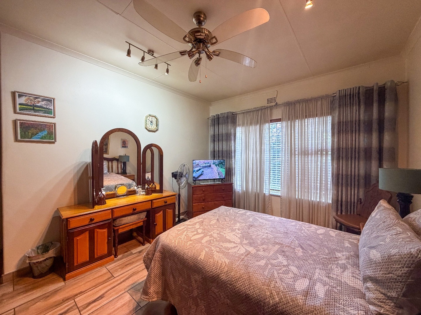 A separate scullery provides additional convenience, offering extensive built-in cupboards, accommodation for a double-door fridge and three appliances, a freestanding gas stove with extractor fan, and a walk-in pantry. An enclosed courtyard and laundry area further enhance the home’s practicality.