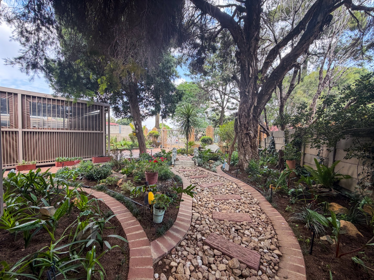 A beautifully maintained front garden, complete with a mature tree, bench, and pathway, welcomes you to the home and creates an immediate sense of warmth and tranquility.