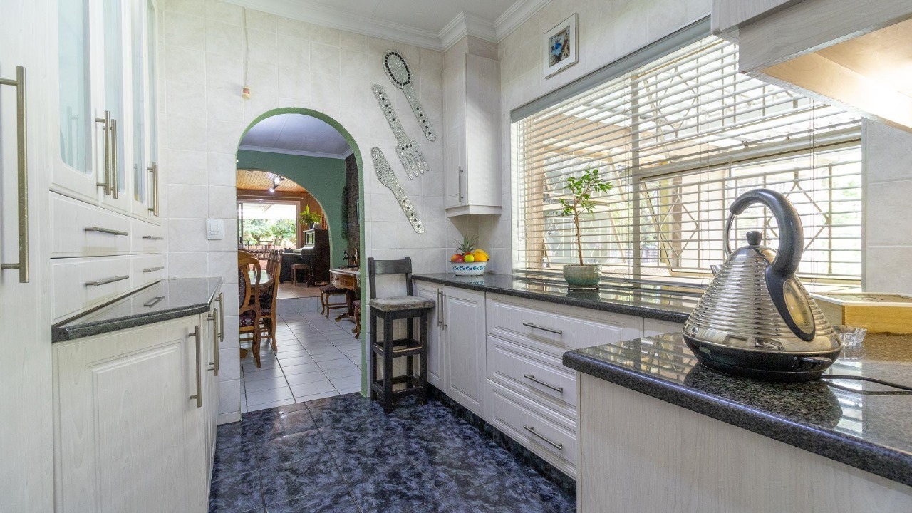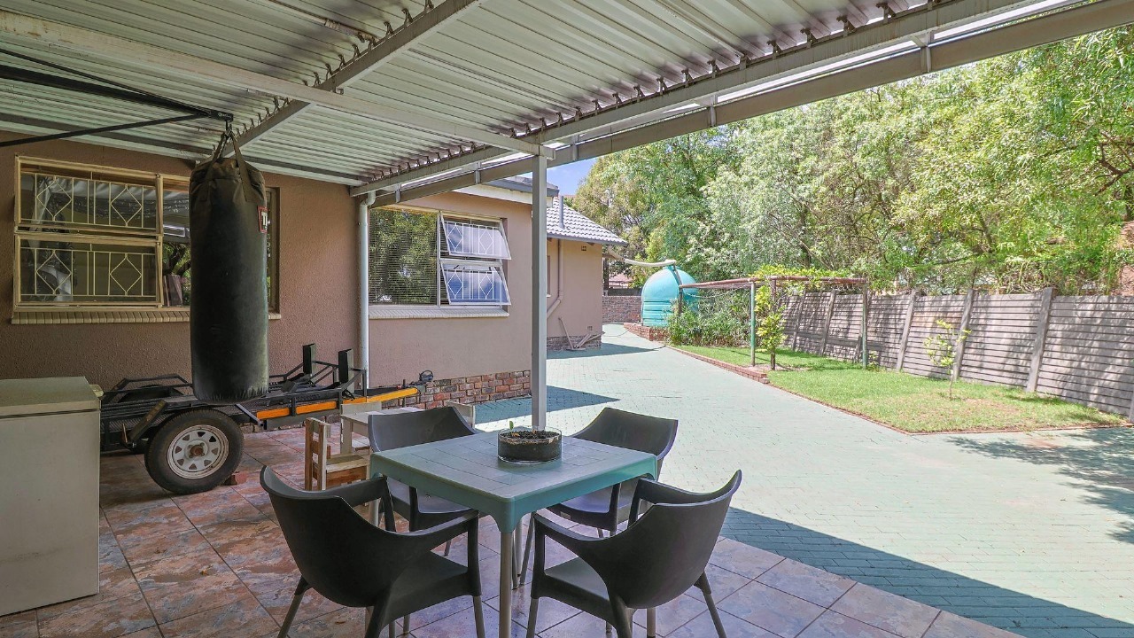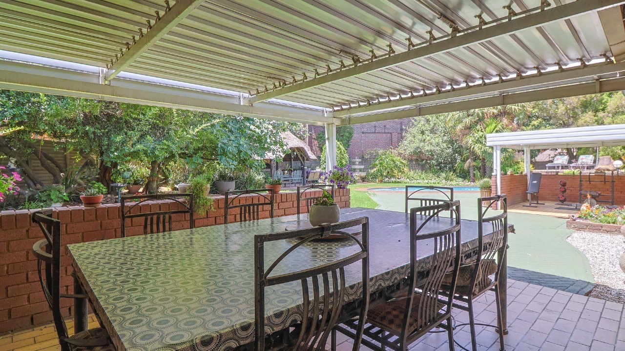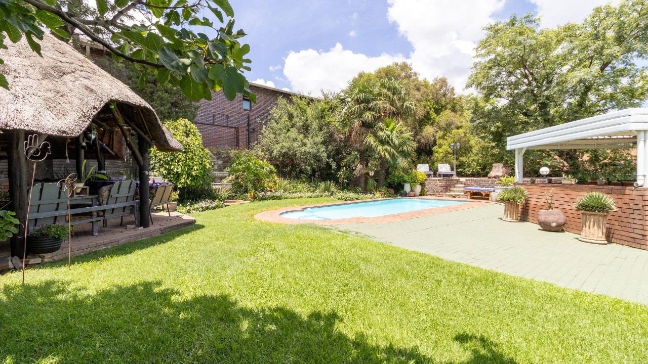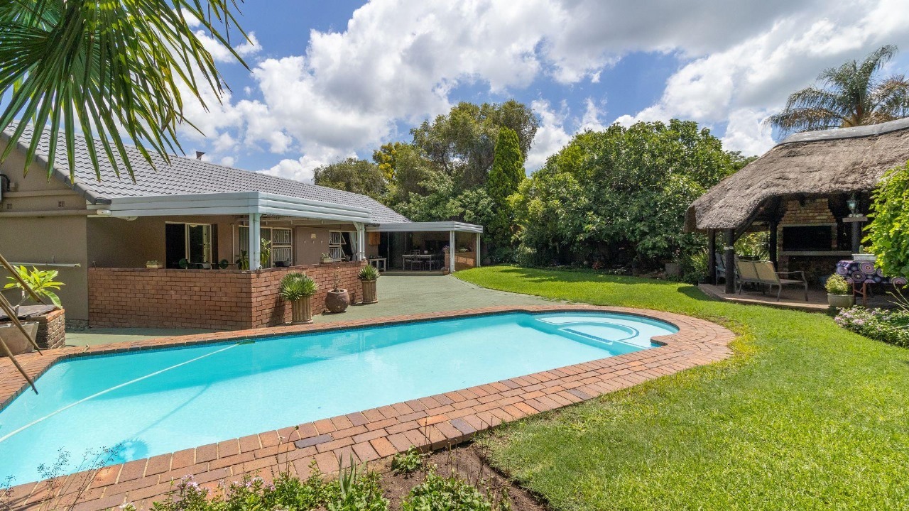 Discover this charming 3-bedroom, 2-bathroom residence nestled on a generous 1000 sqm erf in the sought-after suburban area of Brackenhurst, Alberton. The property immediately impresses with its well-maintained exterior, featuring a large paved driveway offering secure parking for up to six vehicles, including two garages and an additional carport. Mature trees enhance the kerb appeal, providing natural shade and a welcoming ambiance. Step inside to an inviting interior designed for comfortable living and entertaining. The home boasts a spacious lounge, a dedicated dining room, and a family TV room, all flowing seamlessly. Unique wooden plank ceilings add character, while a cozy fireplace creates a warm focal point. The heart of the home is a well-appointed kitchen featuring ample white cabinetry, dark granite countertops, and built-in appliances, complemented by durable tiled flooring. An impressive built-in bar area provides the perfect setting for social gatherings. The three comfortable bedrooms offer private retreats, with two bathrooms ensuring convenience, including one ensuite. Outside, the property truly shines with its private, freeform swimming pool, ideal for relaxation and recreation. The lush, well-maintained garden, complete with a decorative fountain and covered patio, offers an idyllic outdoor entertainment space. The fenced perimeter ensures privacy and security, and pets are welcome. This Brackenhurst home combines practical features with lifestyle amenities, making it an excellent choice for families. Enjoy the convenience of ample parking, a dedicated entertainment zone, and a tranquil garden setting in a desirable Alberton neighbourhood. Key Features: * 3 Bedrooms, 2 Bathrooms (1 En-suite) * Spacious Lounge, Dining Room, Family TV Room * Well-appointed Kitchen with Granite Countertops * Dedicated Built-in Bar and Fireplace * Private Swimming Pool and Lush Garden * Covered Outdoor Patio Area * 2 Garages and Parking for 6 Vehicles * Pet-Friendly with Fenced Perimeter * Generous 1000 sqm Erf Size