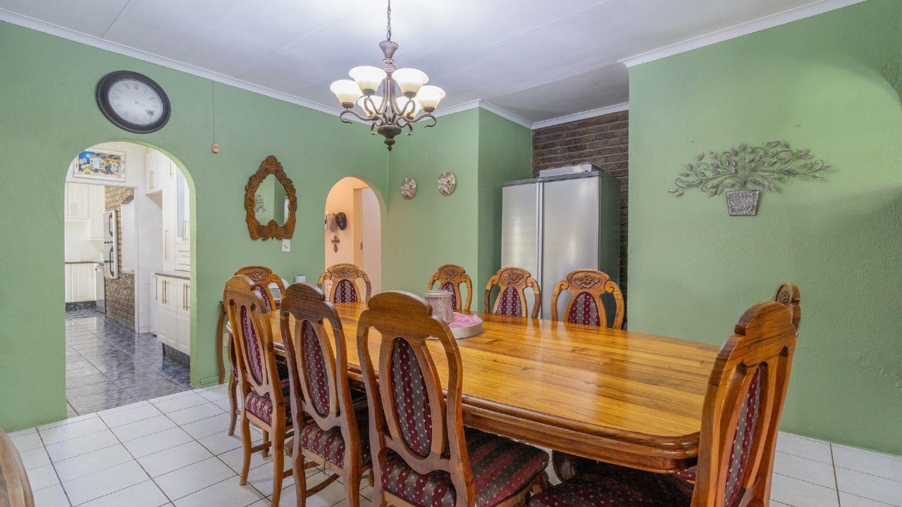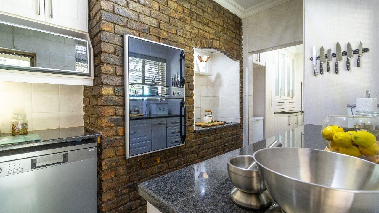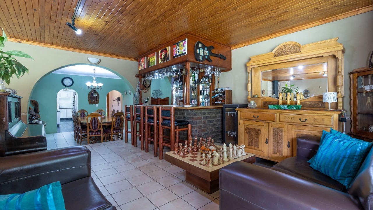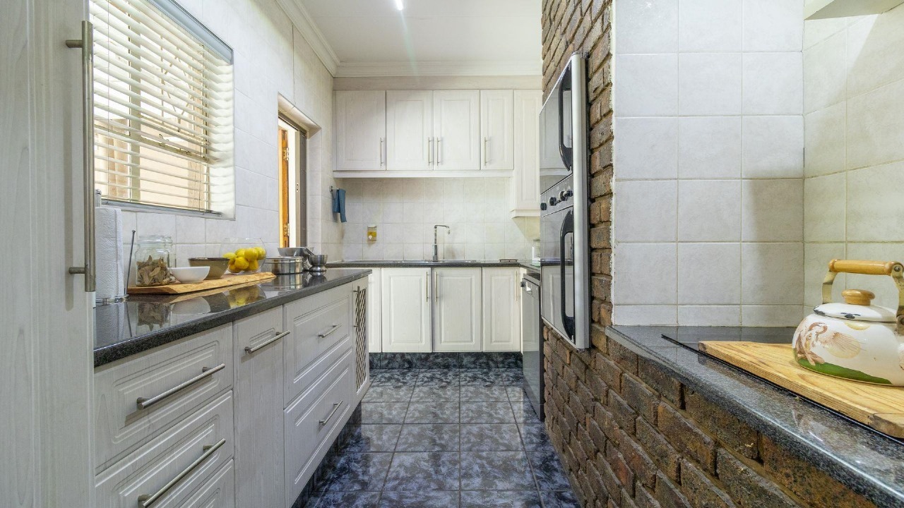 Discover this charming 3-bedroom, 2-bathroom residence nestled on a generous 1000 sqm erf in the sought-after suburban area of Brackenhurst, Alberton. The property immediately impresses with its well-maintained exterior, featuring a large paved driveway offering secure parking for up to six vehicles, including two garages and an additional carport. Mature trees enhance the kerb appeal, providing natural shade and a welcoming ambiance. Step inside to an inviting interior designed for comfortable living and entertaining. The home boasts a spacious lounge, a dedicated dining room, and a family TV room, all flowing seamlessly. Unique wooden plank ceilings add character, while a cozy fireplace creates a warm focal point. The heart of the home is a well-appointed kitchen featuring ample white cabinetry, dark granite countertops, and built-in appliances, complemented by durable tiled flooring. An impressive built-in bar area provides the perfect setting for social gatherings. The three comfortable bedrooms offer private retreats, with two bathrooms ensuring convenience, including one ensuite. Outside, the property truly shines with its private, freeform swimming pool, ideal for relaxation and recreation. The lush, well-maintained garden, complete with a decorative fountain and covered patio, offers an idyllic outdoor entertainment space. The fenced perimeter ensures privacy and security, and pets are welcome. This Brackenhurst home combines practical features with lifestyle amenities, making it an excellent choice for families. Enjoy the convenience of ample parking, a dedicated entertainment zone, and a tranquil garden setting in a desirable Alberton neighbourhood. Key Features: * 3 Bedrooms, 2 Bathrooms (1 En-suite) * Spacious Lounge, Dining Room, Family TV Room * Well-appointed Kitchen with Granite Countertops * Dedicated Built-in Bar and Fireplace * Private Swimming Pool and Lush Garden * Covered Outdoor Patio Area * 2 Garages and Parking for 6 Vehicles * Pet-Friendly with Fenced Perimeter * Generous 1000 sqm Erf Size