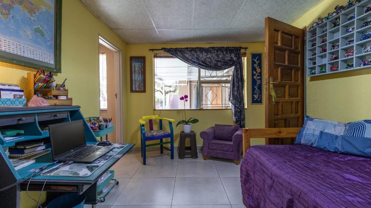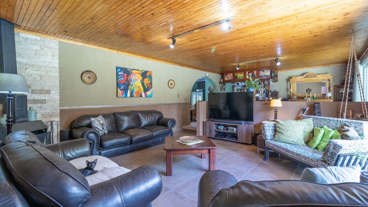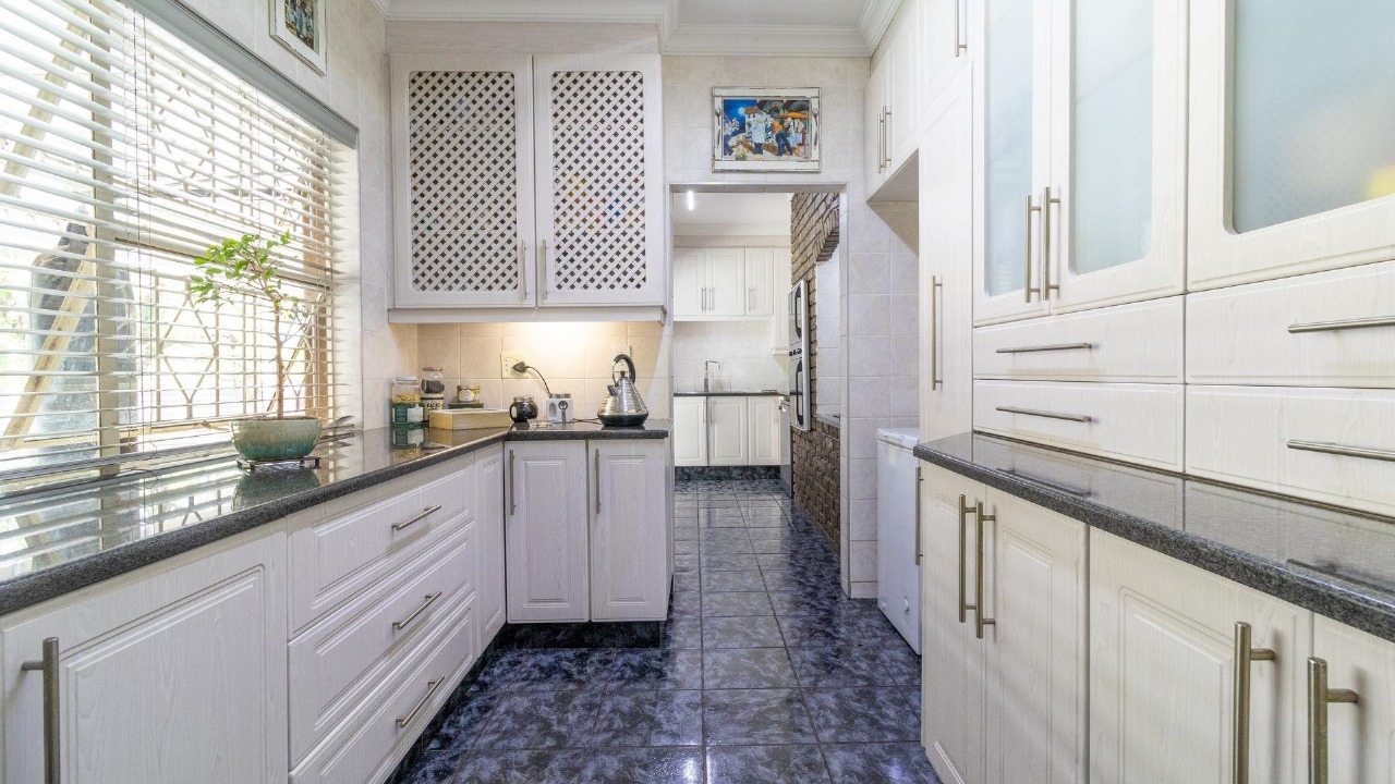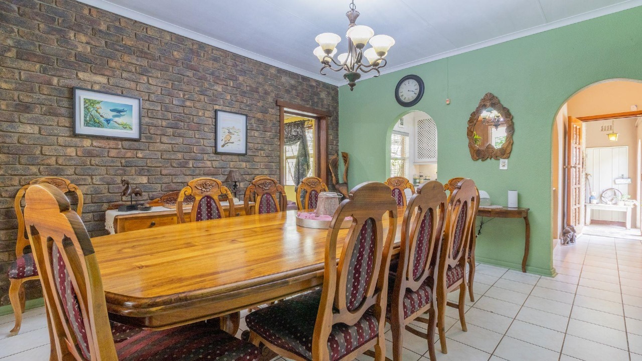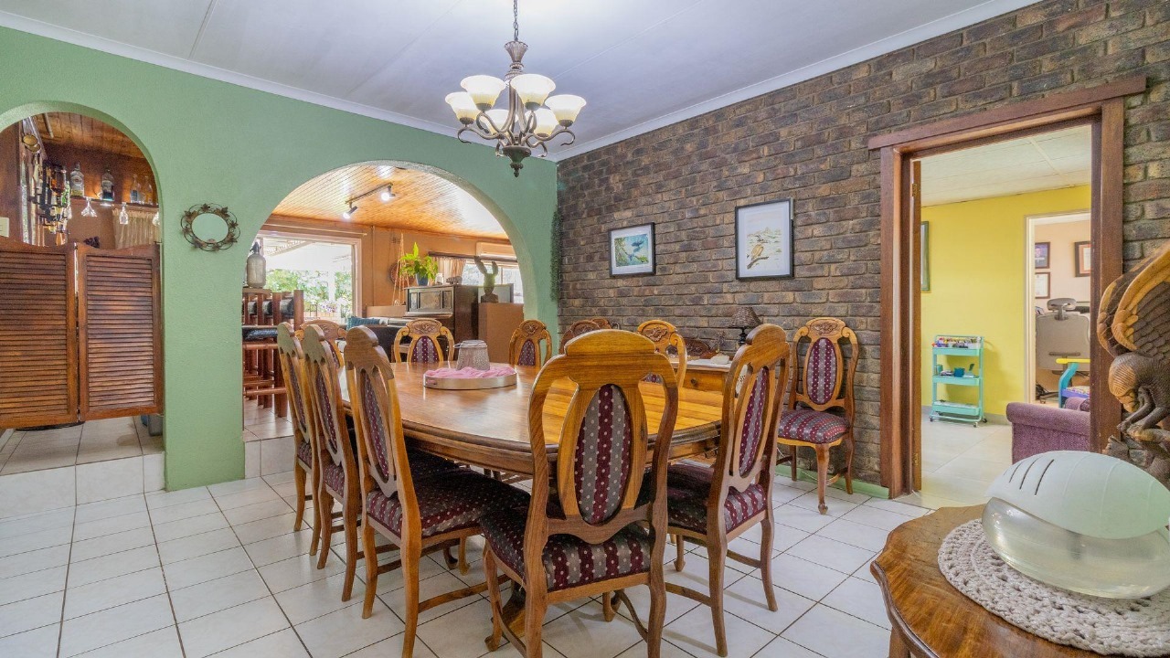 Discover this charming 3-bedroom, 2-bathroom residence nestled on a generous 1000 sqm erf in the sought-after suburban area of Brackenhurst, Alberton. The property immediately impresses with its well-maintained exterior, featuring a large paved driveway offering secure parking for up to six vehicles, including two garages and an additional carport. Mature trees enhance the kerb appeal, providing natural shade and a welcoming ambiance. Step inside to an inviting interior designed for comfortable living and entertaining. The home boasts a spacious lounge, a dedicated dining room, and a family TV room, all flowing seamlessly. Unique wooden plank ceilings add character, while a cozy fireplace creates a warm focal point. The heart of the home is a well-appointed kitchen featuring ample white cabinetry, dark granite countertops, and built-in appliances, complemented by durable tiled flooring. An impressive built-in bar area provides the perfect setting for social gatherings. The three comfortable bedrooms offer private retreats, with two bathrooms ensuring convenience, including one ensuite. Outside, the property truly shines with its private, freeform swimming pool, ideal for relaxation and recreation. The lush, well-maintained garden, complete with a decorative fountain and covered patio, offers an idyllic outdoor entertainment space. The fenced perimeter ensures privacy and security, and pets are welcome. This Brackenhurst home combines practical features with lifestyle amenities, making it an excellent choice for families. Enjoy the convenience of ample parking, a dedicated entertainment zone, and a tranquil garden setting in a desirable Alberton neighbourhood. Key Features: * 3 Bedrooms, 2 Bathrooms (1 En-suite) * Spacious Lounge, Dining Room, Family TV Room * Well-appointed Kitchen with Granite Countertops * Dedicated Built-in Bar and Fireplace * Private Swimming Pool and Lush Garden * Covered Outdoor Patio Area * 2 Garages and Parking for 6 Vehicles * Pet-Friendly with Fenced Perimeter * Generous 1000 sqm Erf Size