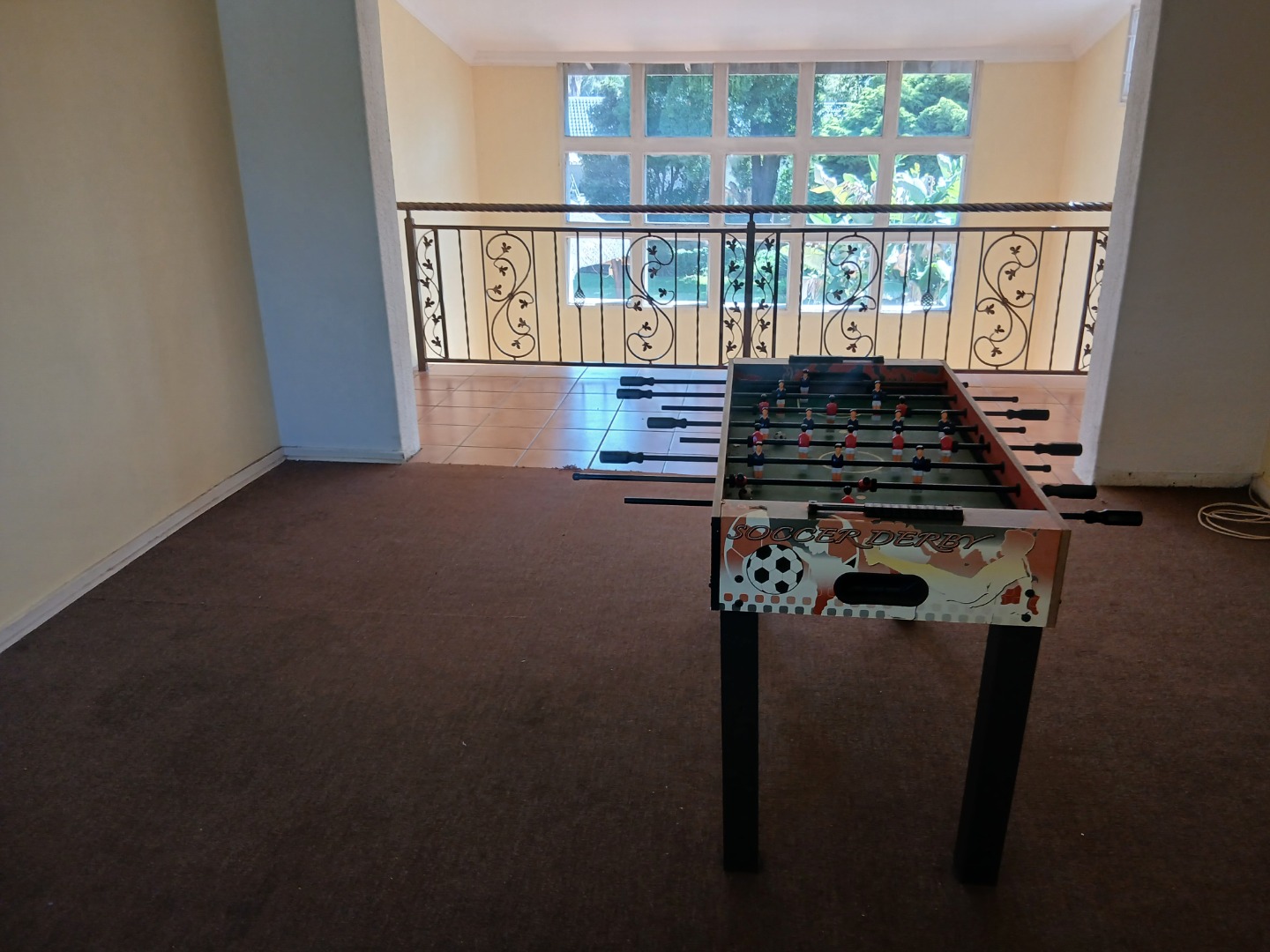 A large entertainment area ideal for family games, a cinema room, or a hobby space.