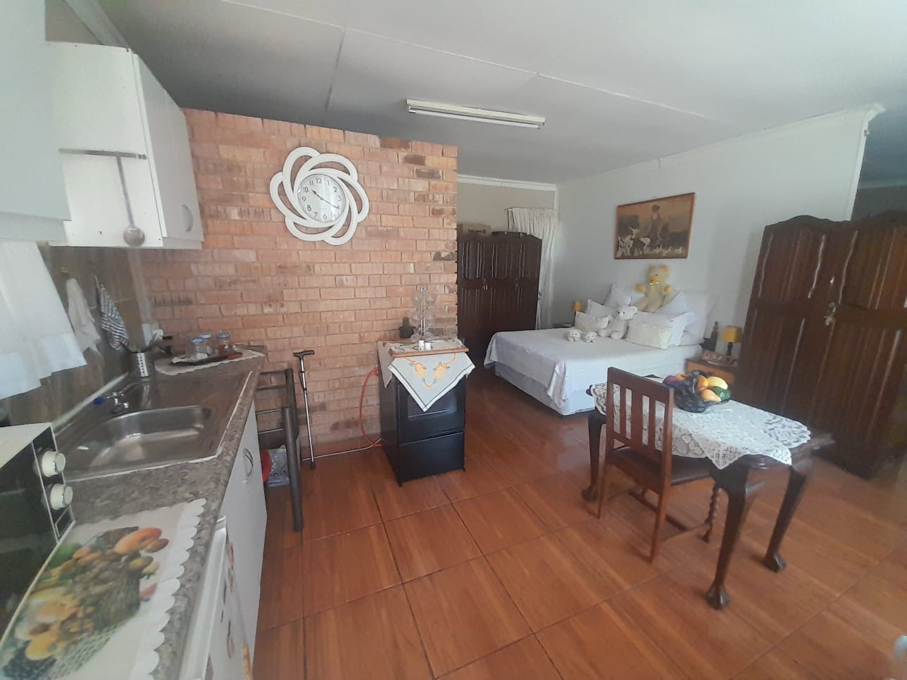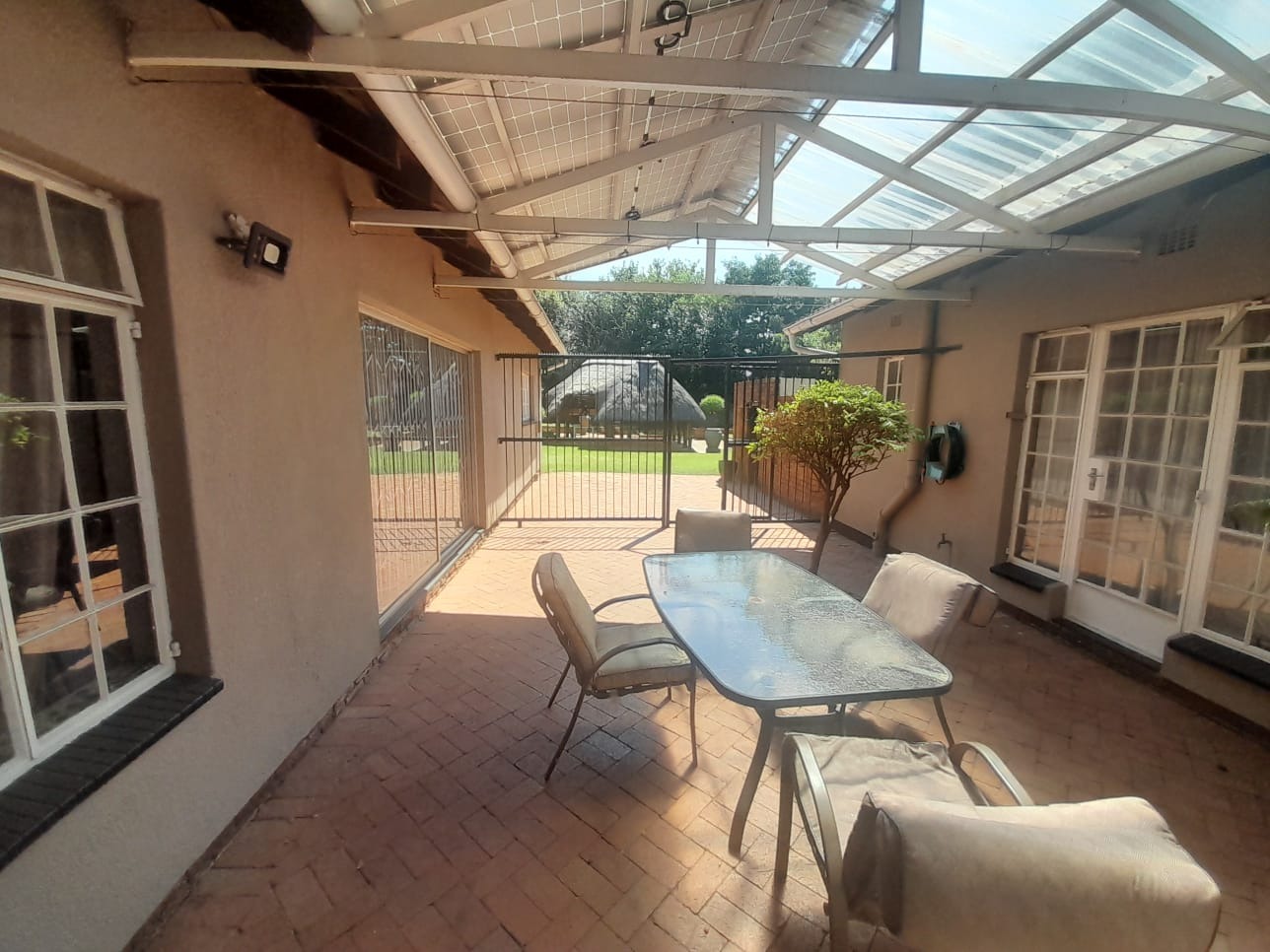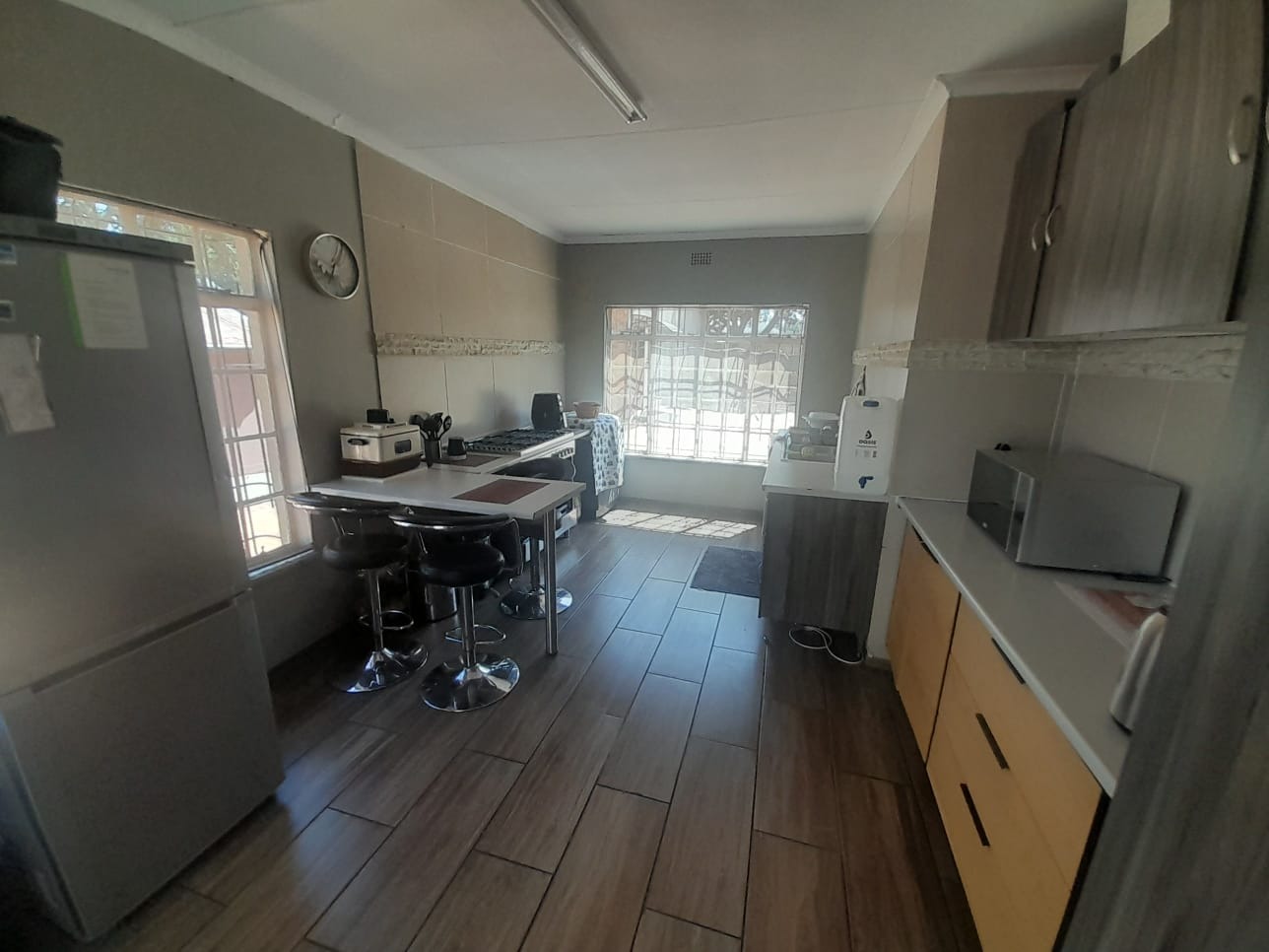 Discover this expansive residential property located in the desirable suburban area of Brackenhurst, Alberton, South Africa. Boasting a generous Erf size of 1560 sqm and a substantial Floor size of 406 sqm, this home offers ample space for comfortable living and entertaining. The interior features an inviting entrance hall, a spacious lounge, and a dedicated dining room, complemented by an open-plan design that enhances the flow throughout. Enjoy social gatherings with a built-in bar and a welcoming patio. The residence comprises three well-proportioned bedrooms and two bathrooms, providing comfortable accommodation for families. Practical amenities include a dedicated laundry area, a convenient pantry, and additional storage space, ensuring a functional and organised household. Outdoor living is a highlight, with a well-maintained garden, a lapa, and a built-in braai perfect for alfresco dining. The property also includes a wendy house and is pet-friendly. Significant value is added by the presence of a flatlet and a second house, offering versatile options for extended family living or potential rental income. Parking is well catered for with two garages. Security is prioritised with 24-hour security, electric fencing, and burglar bars, providing peace of mind. The property is equipped with solar panels for enhanced energy efficiency and fibre connectivity for modern living. Additionally, it is wheelchair friendly, ensuring accessibility for all. Brackenhurst offers a well-established suburban environment within Alberton, providing residents with a convenient and family-oriented lifestyle. Key Features: * 3 Bedrooms, 2 Bathrooms * 1560 sqm Erf, 406 sqm Floor Size * Flatlet and Second House * 2 Garages * Lapa with Built-in Braai * Solar Panels & Fibre Connectivity * 24-Hour Security & Electric Fencing * Wheelchair Friendly * Pet-Friendly Garden
