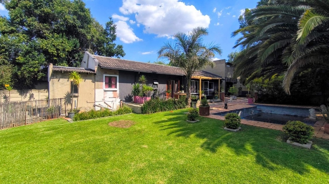 Step outside to a magnificent garden oasis, complete with a sparkling swimming pool, offering an idyllic setting for relaxation. The property further benefits from a valuable flatlet, providing versatile space. Practical amenities include two secure garages, three additional parking spaces, and convenient staff quarters. Pets are welcome.