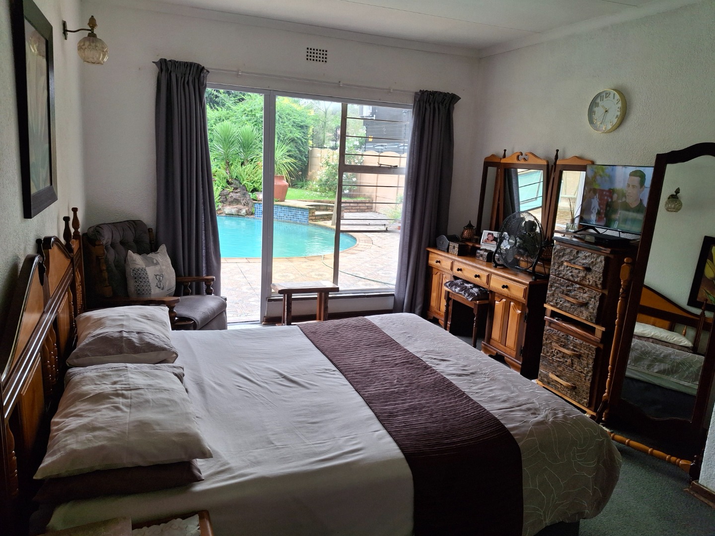 A grand, sun-drenched entrance hall ushers you into a colossal family room, distinguished by a sophisticated built-in bar – an entertainer's dream. Most principal rooms afford breathtaking panoramic vistas of the magnificent, Olympic-sized swimming pool, transforming daily living into a resort-like experience. The meticulously landscaped garden offers a collection of secluded havens, perfect for quiet contemplation amidst the melodic symphony of nature. Further enhancing this exceptional offering are a double garage, a substantial carport providing extensive parking, dedicated staff quarters, electric fencing, and fibre connectivity, all contributing to an environment of utmost privacy and convenience. This residence, truly a jewel in Brackenhurst's crown, represents an extraordinary opportunity to acquire a home where every detail has been curated for luxury and comfort.