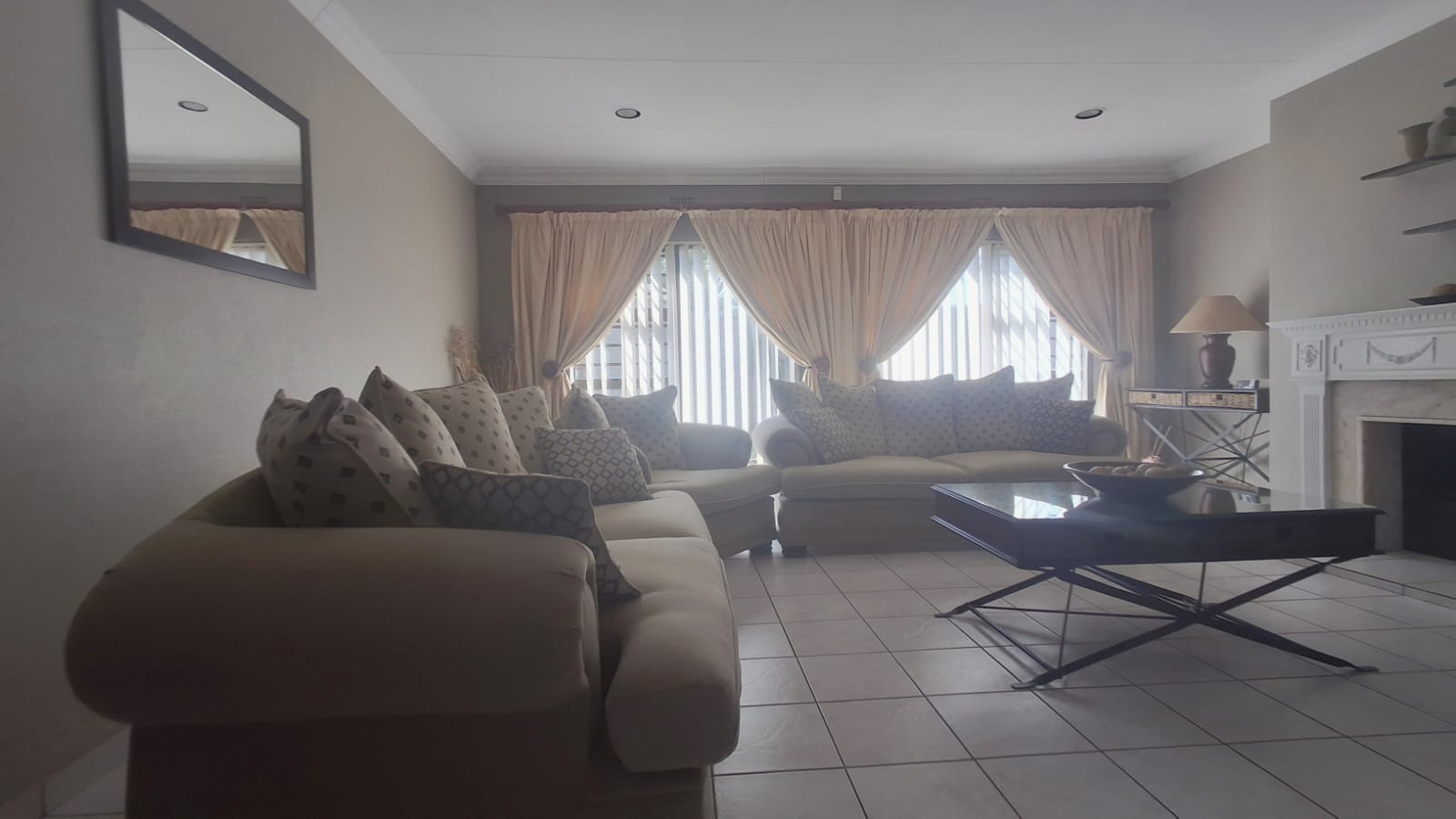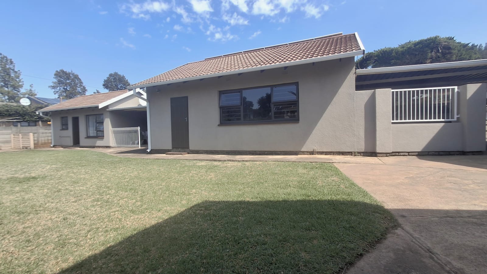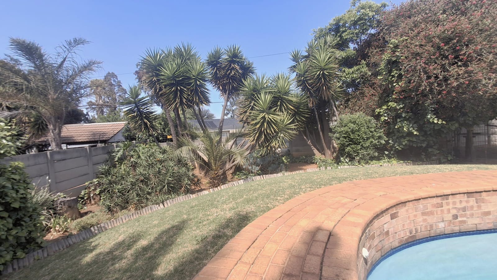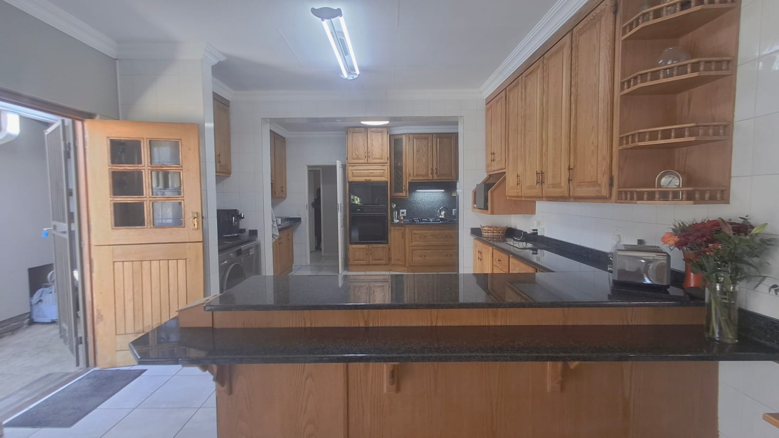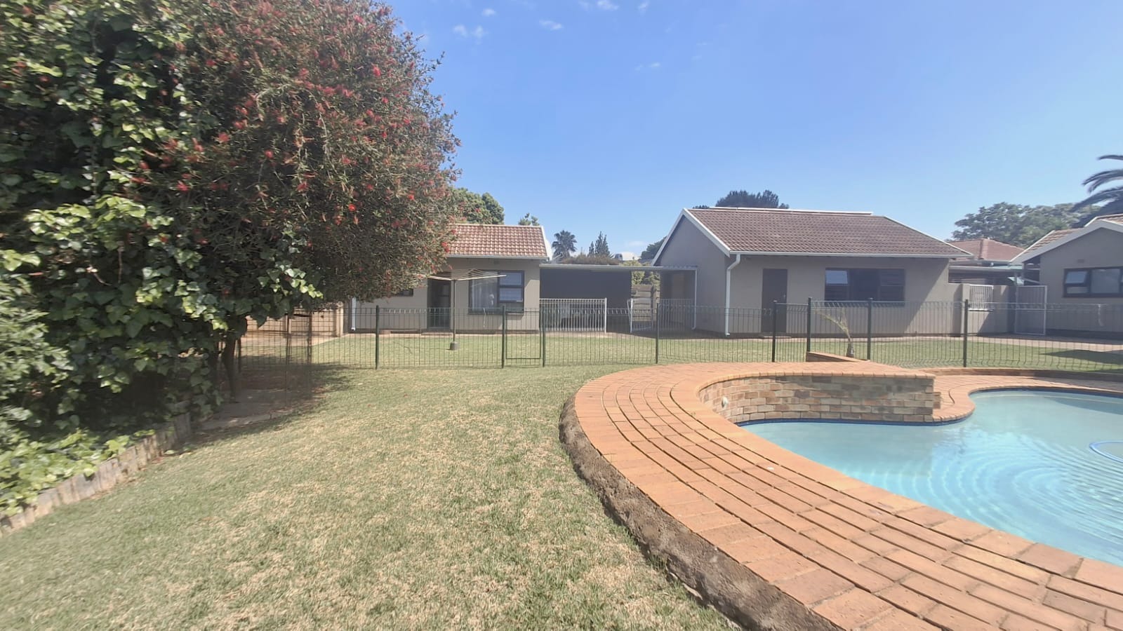 - Family Room with solid oak bar, flowing to covered patio and built-in braai