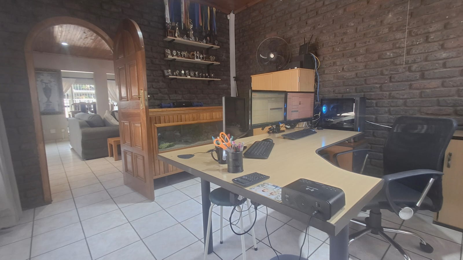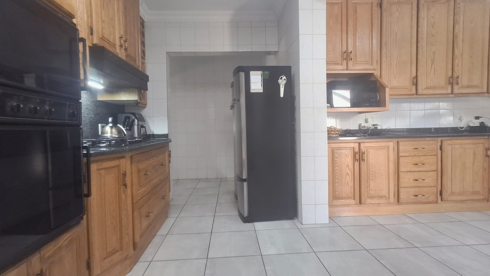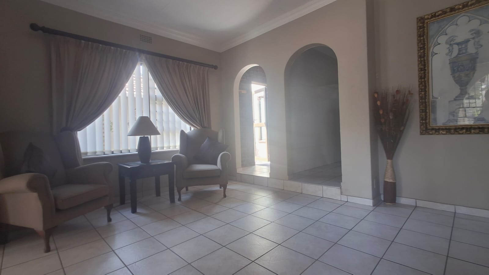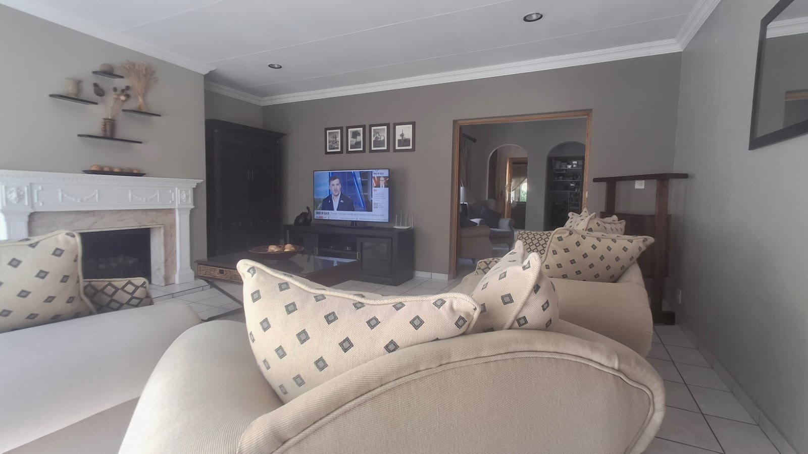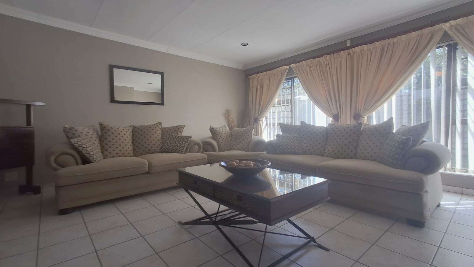 - Family Room with solid oak bar, flowing to covered patio and built-in braai