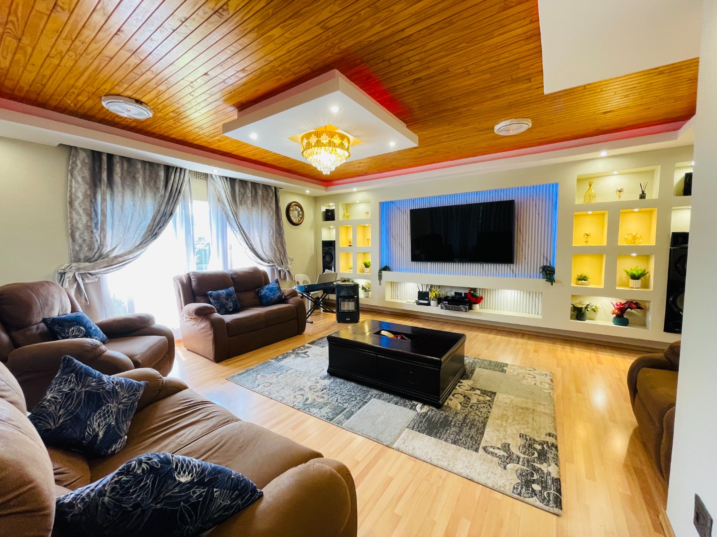 The property includes two garages, staff quarters, and a sparkling swimming pool perfect for summer days with family and friends. The large garden and generous outdoor space offer endless potential for relaxation, play, or future extensions.