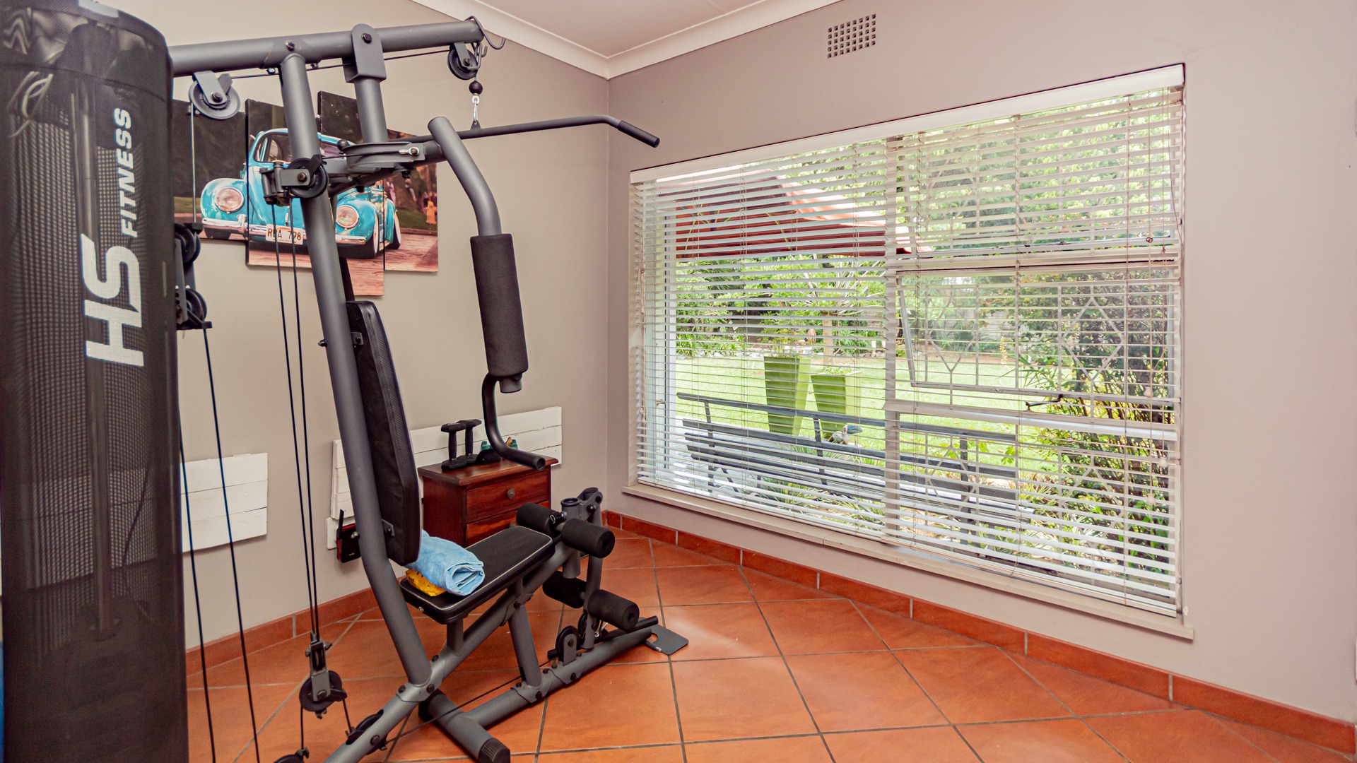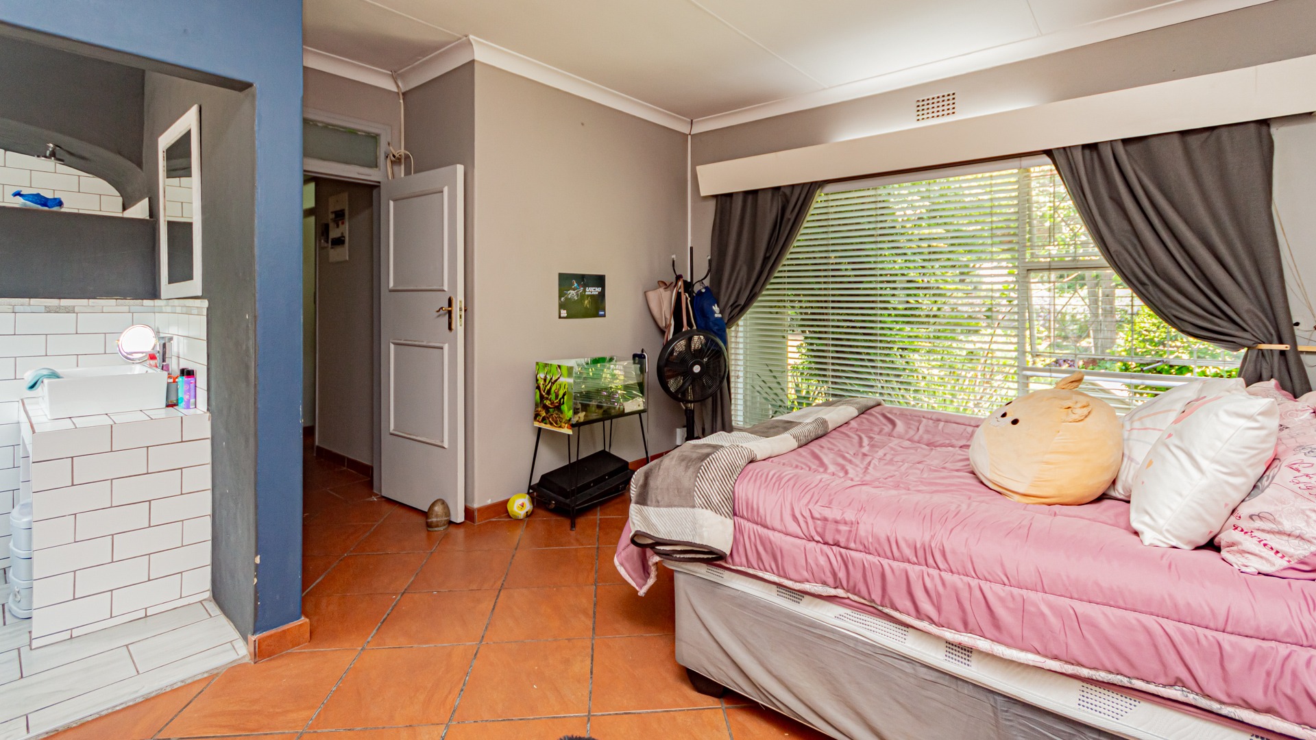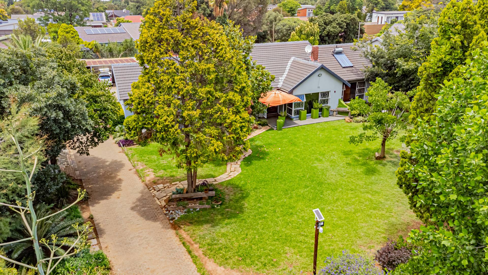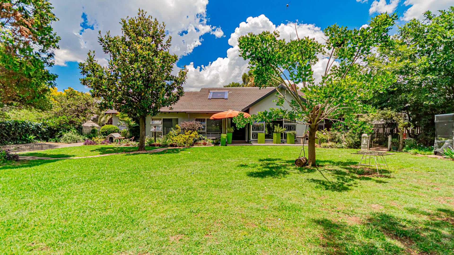 The exterior is equally impressive, with a meticulously maintained garden filled with mature trees and plants, providing a private and tranquil environment. A built-in braai adds to the outdoor entertainment appeal.