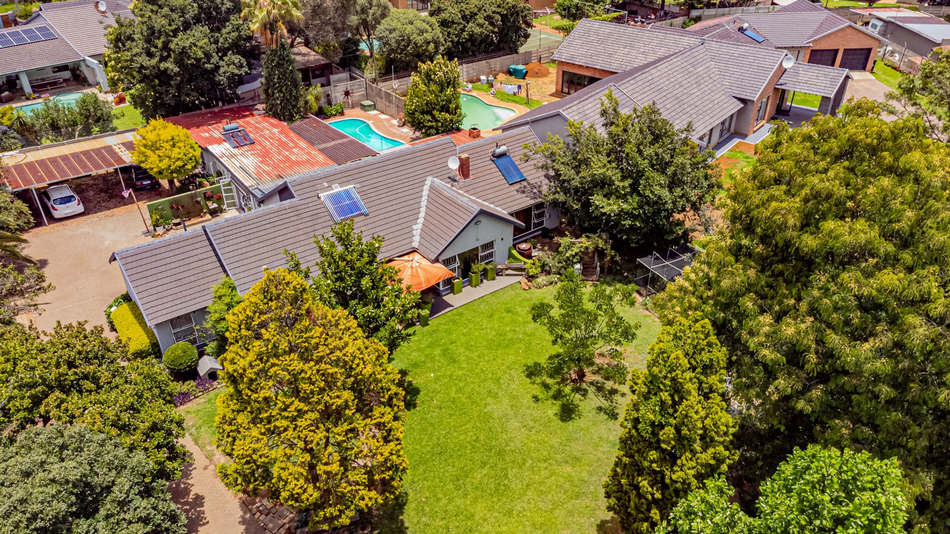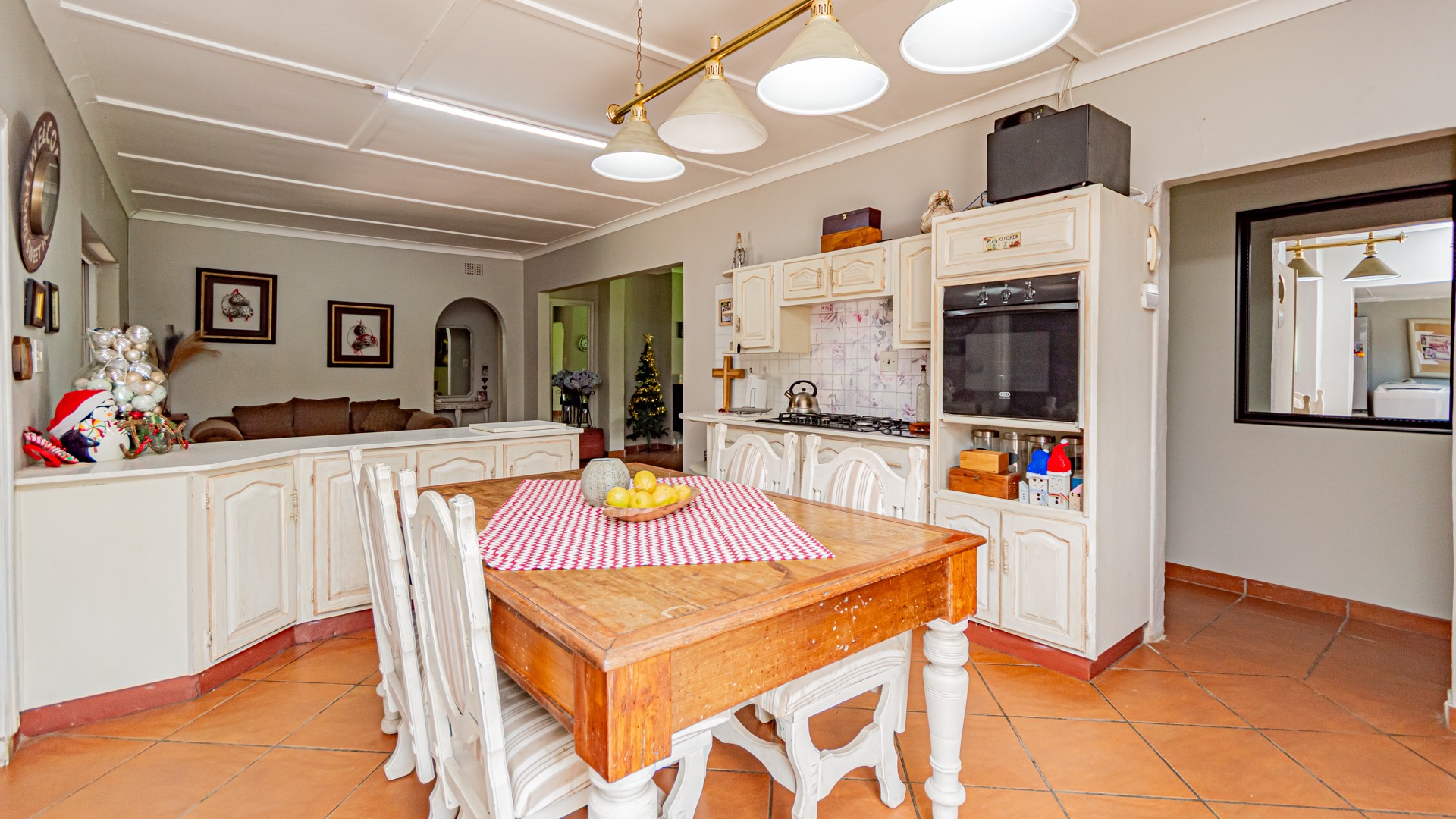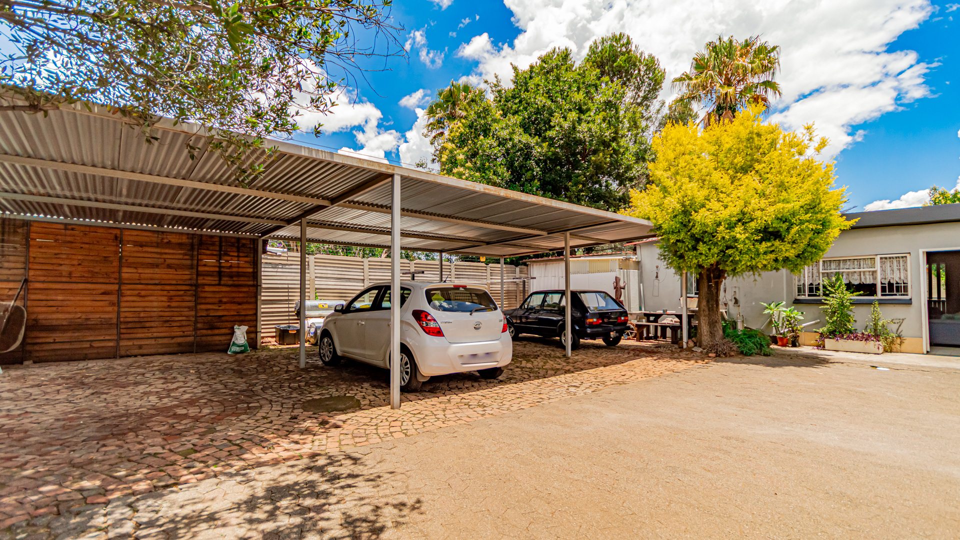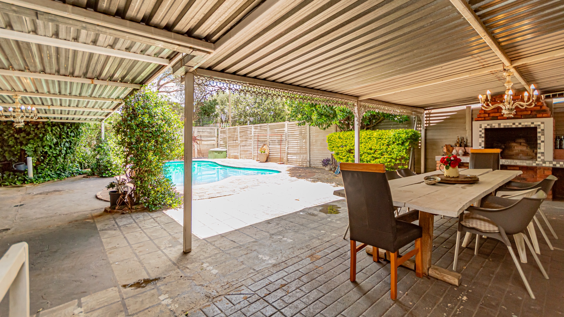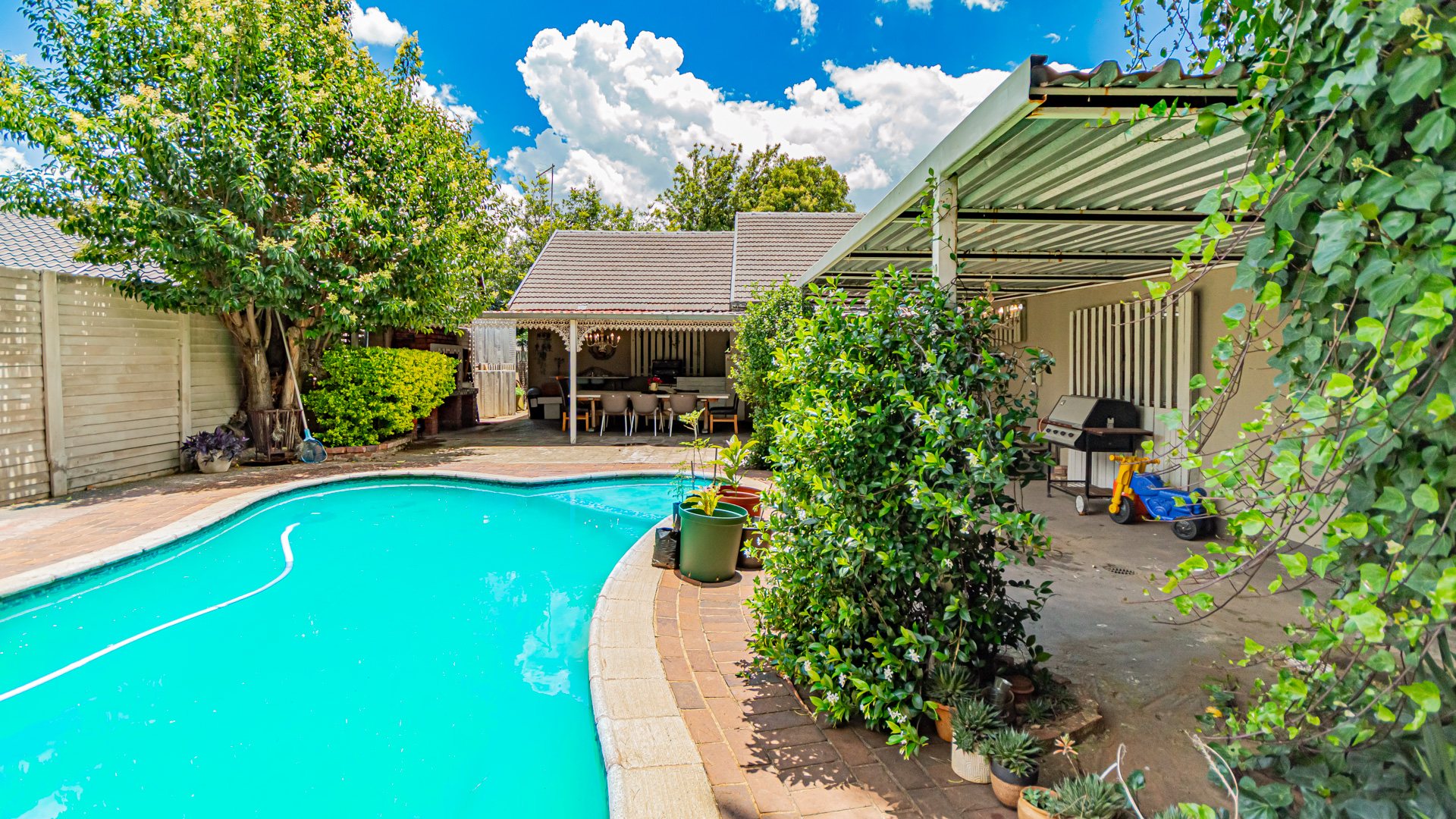 Security is in place, with high walls, burglar bars, cameras, an alarm system, and an automated Front gate. Extra features include two solar power geysers, in total three geysers, pre-paid electricity, and an outdoor toilet near the pool. Parking is hassle-free with a carport and plenty of paved driveway space.