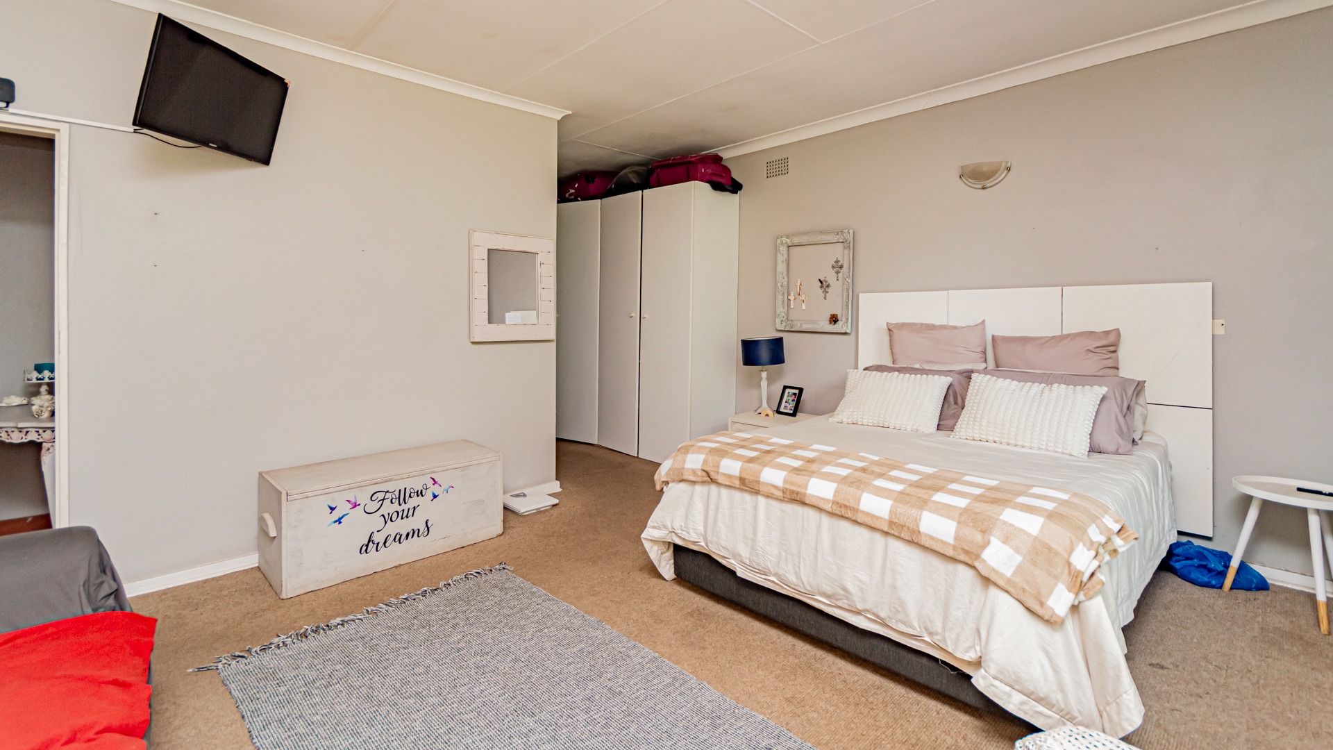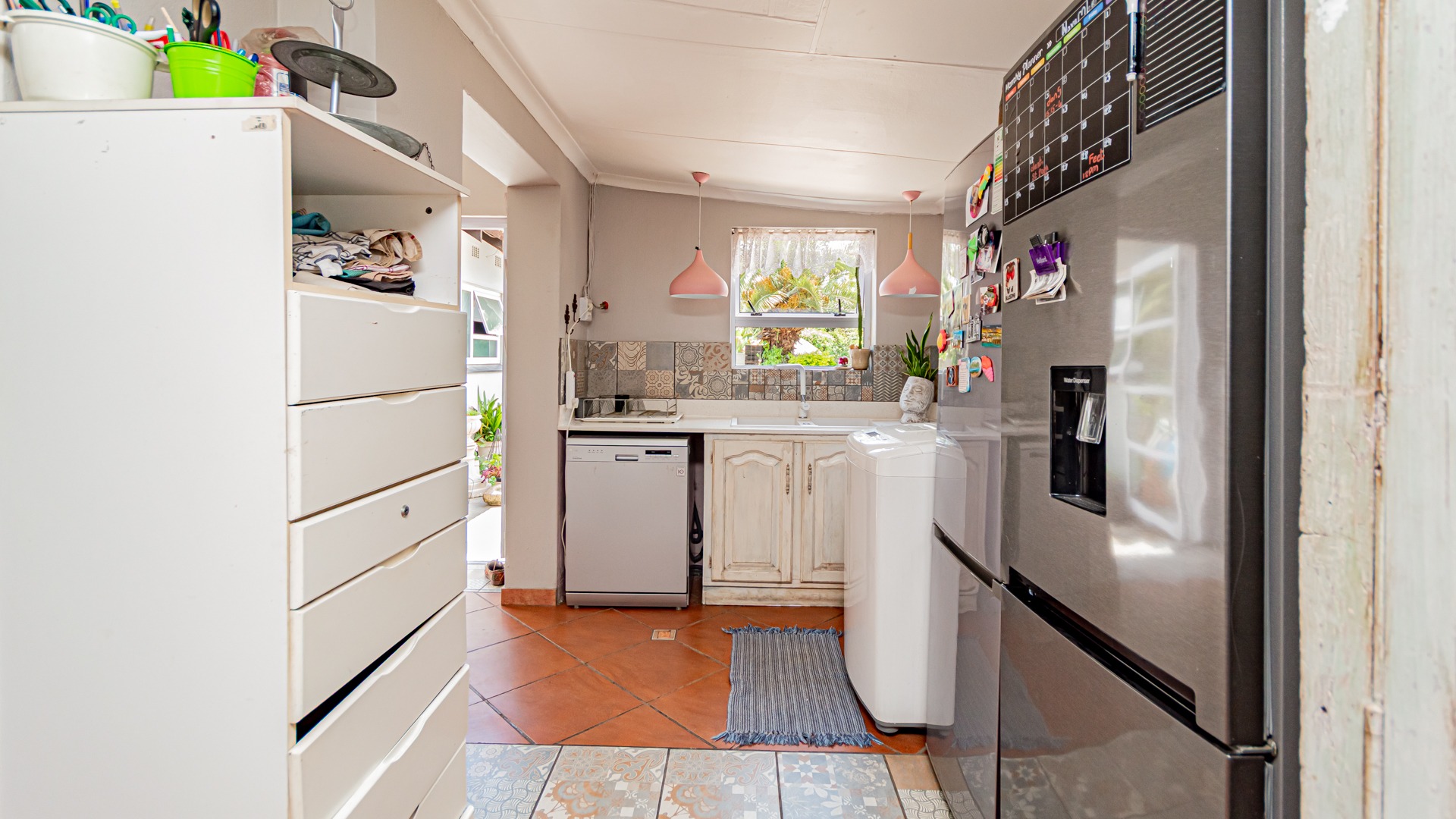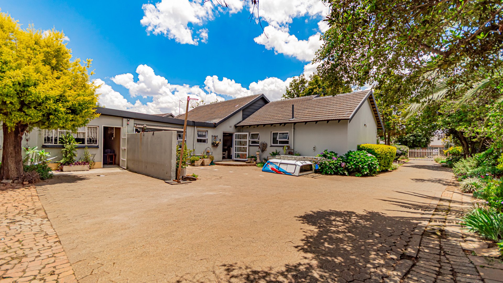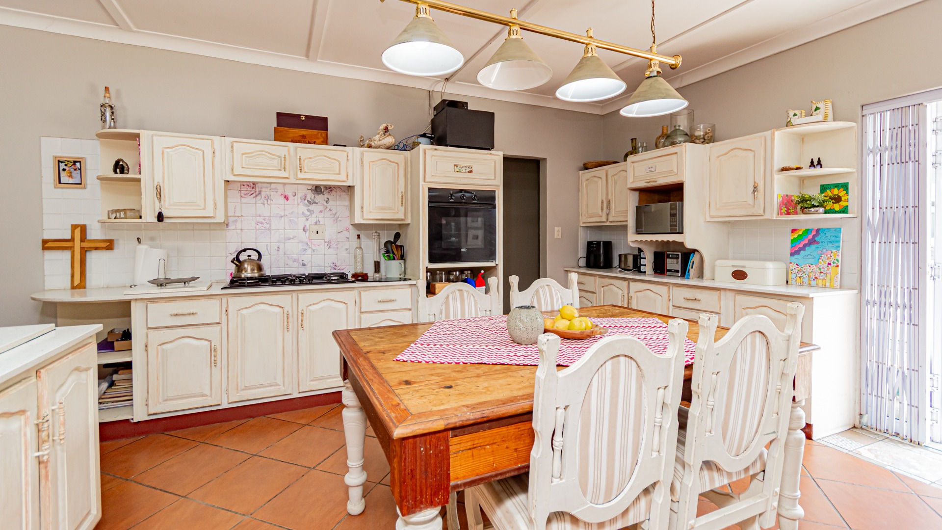 Security is in place, with high walls, burglar bars, cameras, an alarm system, and an automated Front gate. Extra features include two solar power geysers, in total three geysers, pre-paid electricity, and an outdoor toilet near the pool. Parking is hassle-free with a carport and plenty of paved driveway space.
