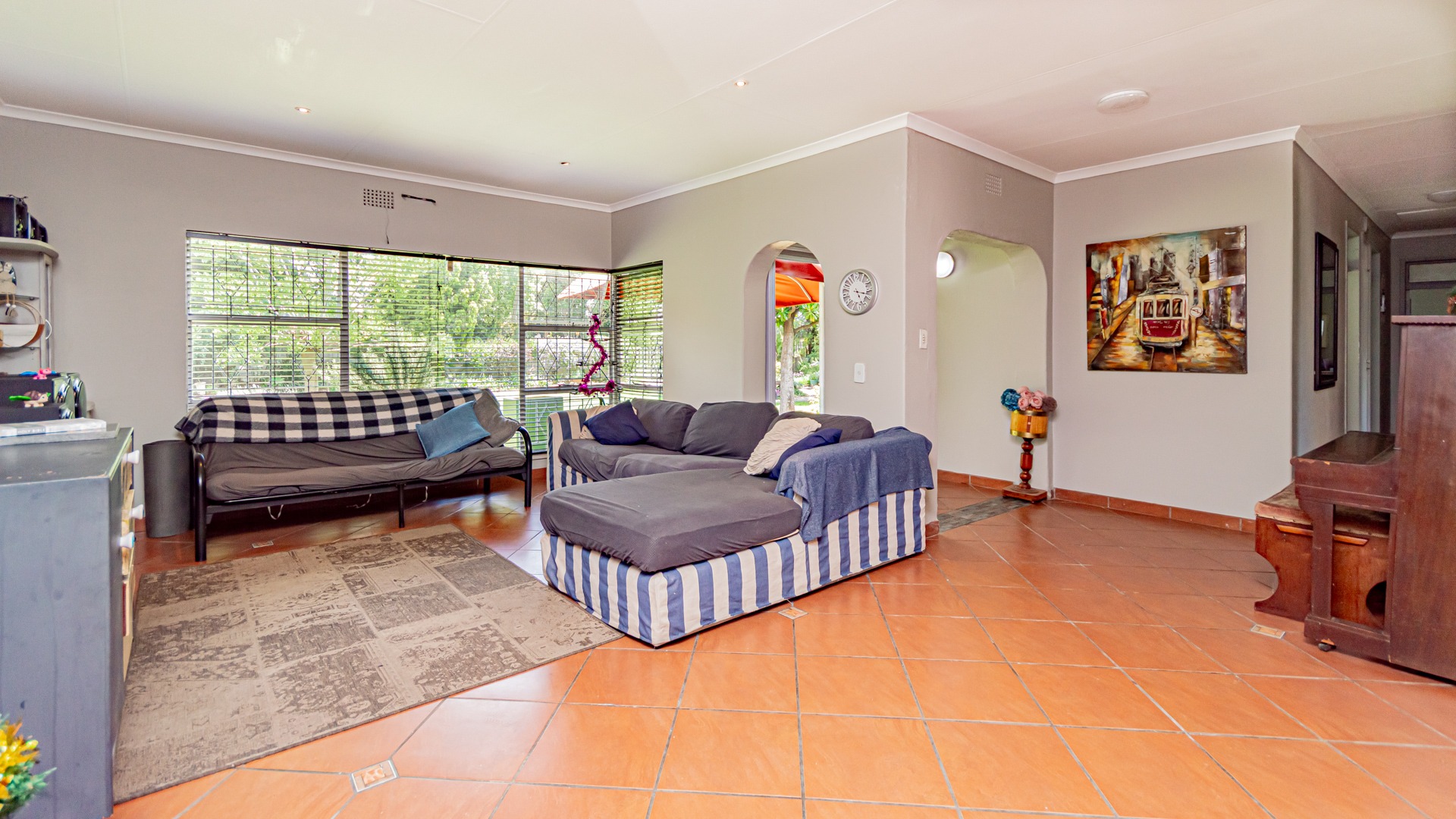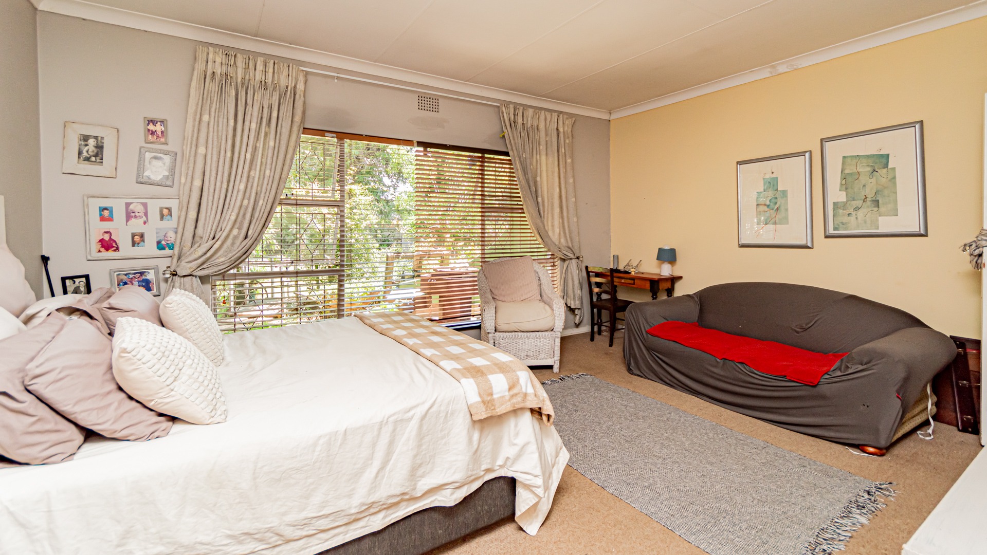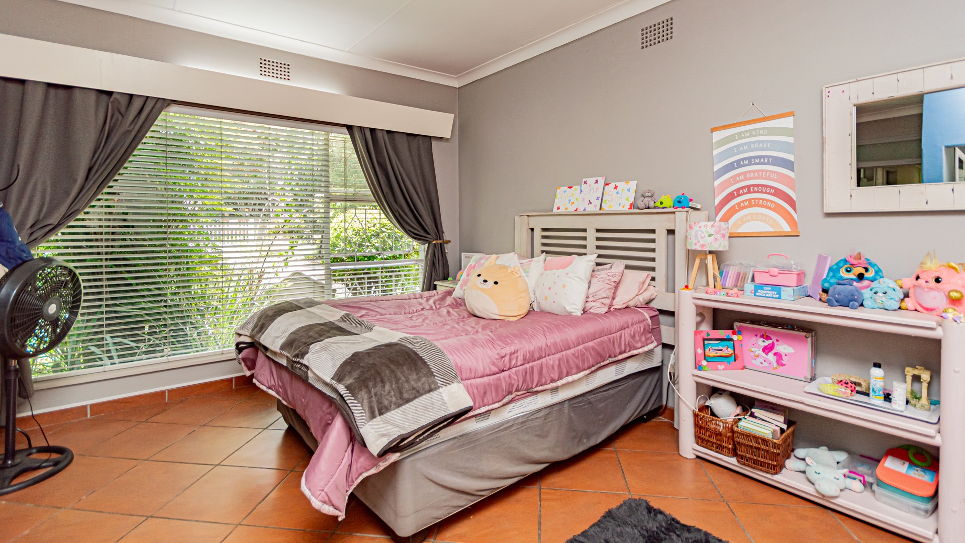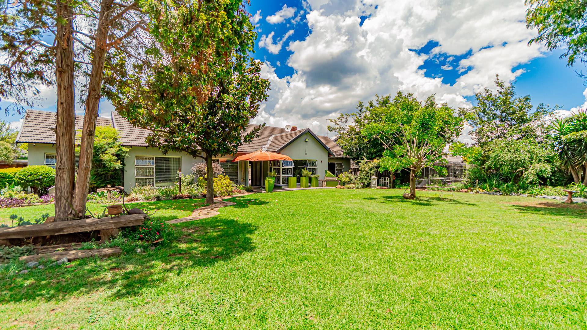 The exterior is equally impressive, with a meticulously maintained garden filled with mature trees and plants, providing a private and tranquil environment. A built-in braai adds to the outdoor entertainment appeal.