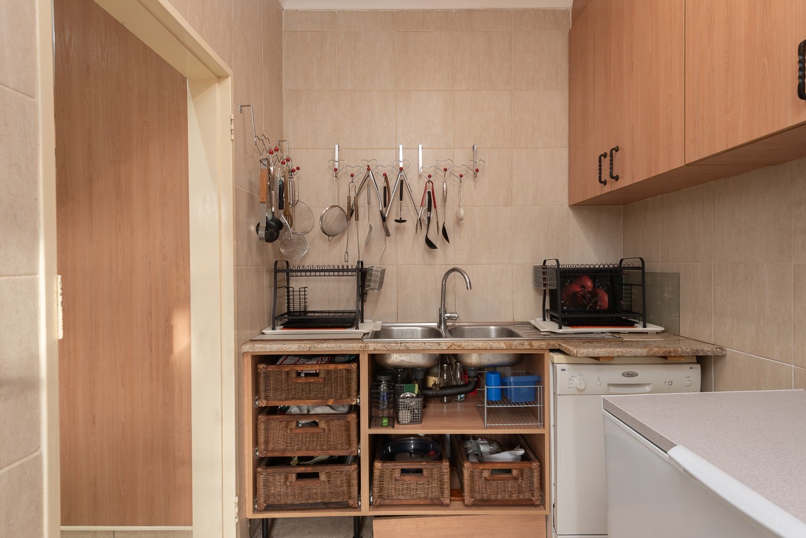 The heart of the home is a beautifully designed central kitchen, fitted with granite countertops, a centre island, eye-level oven, glass-top stove, extractor fan, and pantry. A separate scullery provides space for a top-loader washing machine, dishwasher, and freezer, adding to the home’s practicality.