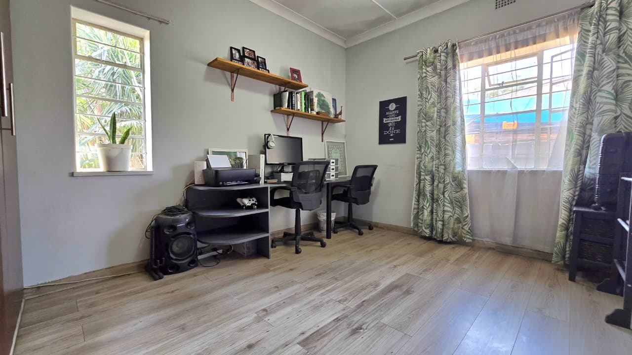 Beyond the main living areas, the servant’s quarters offer excellent potential—perfect for creating additional accommodation or generating rental income. The expansive garden enhances the property even further, featuring an inviting open patio and built-in braai, ideal for enjoying warm summer evenings with friends and family. Pre-paid electricity adds to the convenience of this move-in-ready home.