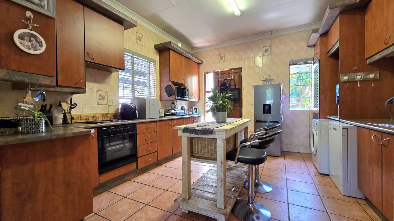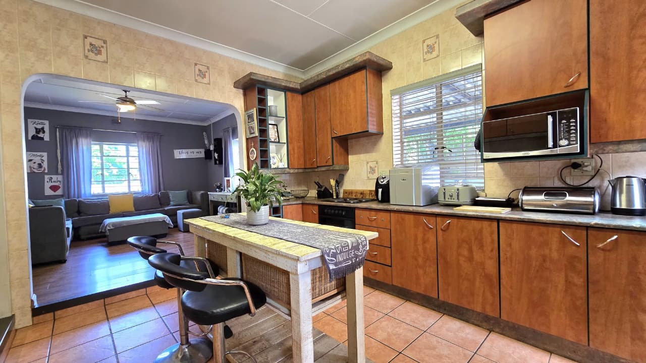 Beyond the main living areas, the servant’s quarters offer excellent potential—perfect for creating additional accommodation or generating rental income. The expansive garden enhances the property even further, featuring an inviting open patio and built-in braai, ideal for enjoying warm summer evenings with friends and family. Pre-paid electricity adds to the convenience of this move-in-ready home.