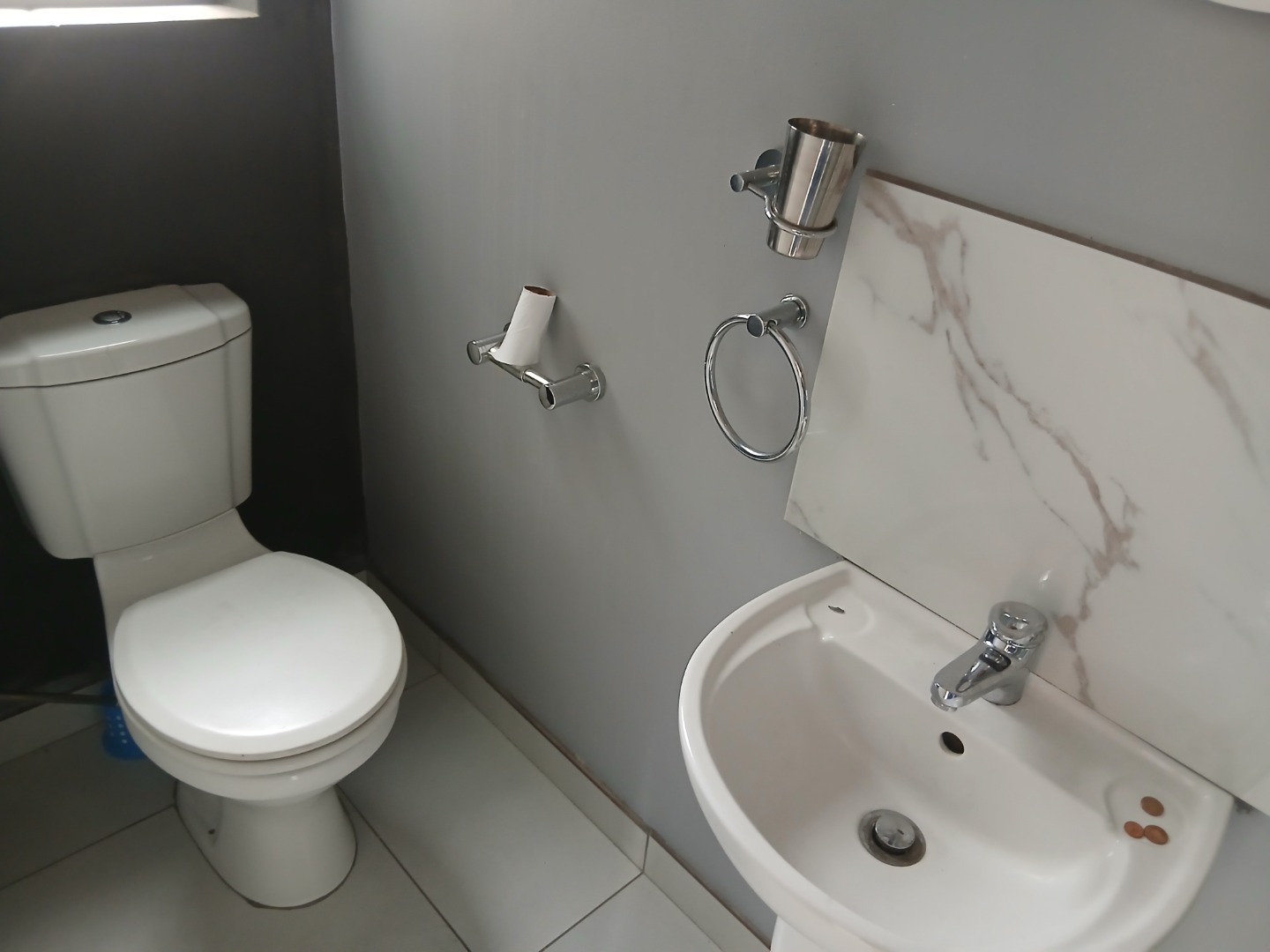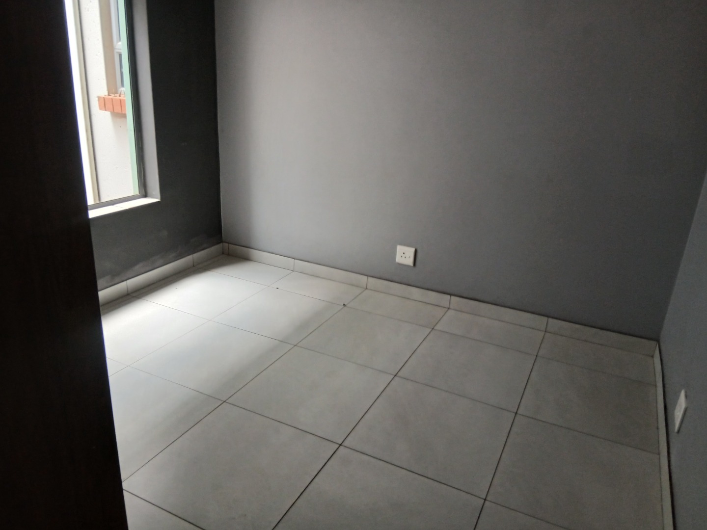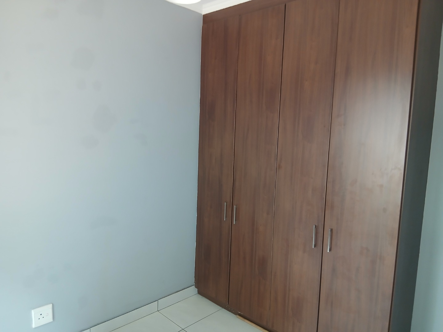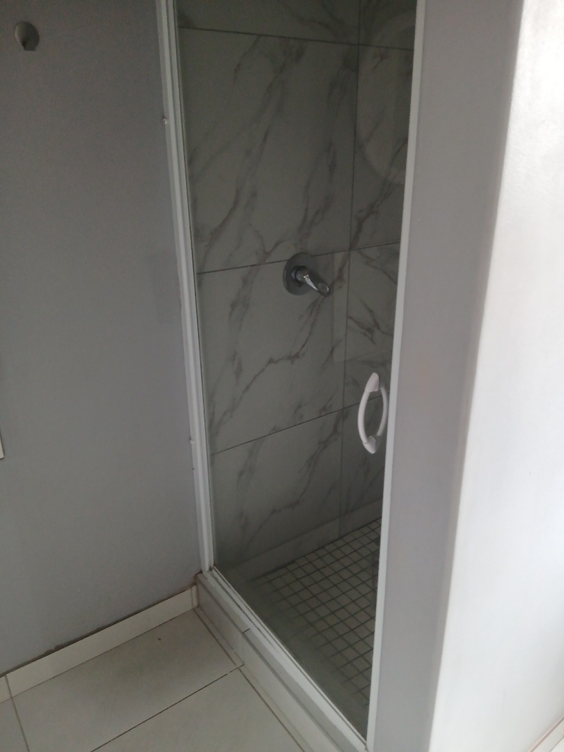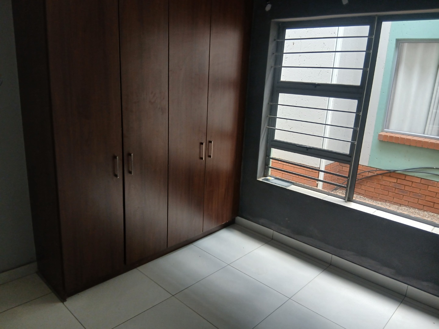 The main bedroom is tiled and includes built-in cupboards, as well as an en-suite bathroom with a shower, toilet, and basin. The two additional bedrooms are spacious and also fitted with built-in cupboards. The second bathroom includes a bath-and-shower combination, toilet, and basin.