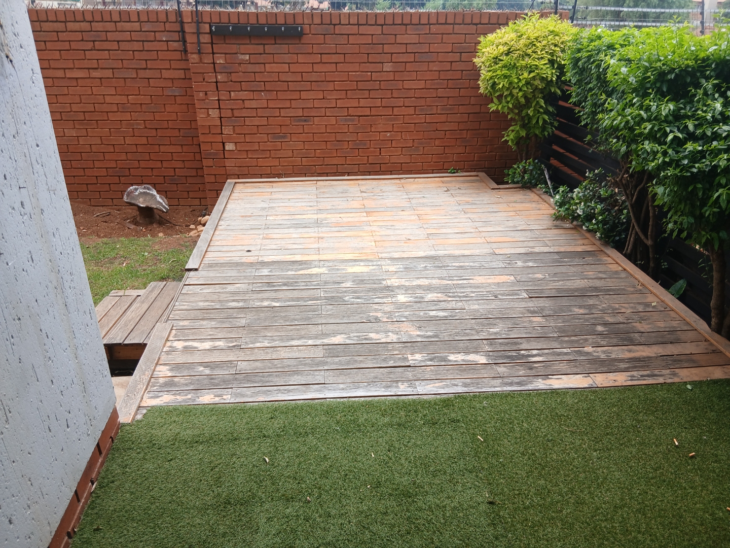 Enjoy the open-plan lounge that flows seamlessly to a wooden deck and a charming, private garden — fully walled and secured with electric fencing, perfect for relaxing or entertaining. A plus is parking for two covered by shaded nets.