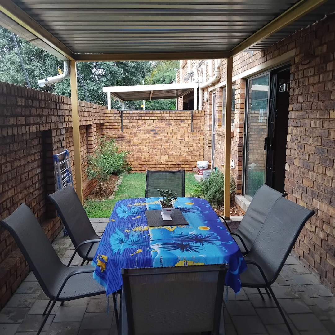 This charming 3-bedroom, 2-bathroom townhouse is nestled within a secure complex in Alberton. The Tuscan Gardens complex offers excellent security with an automated access gate, electric fencing, and visible 24-hour armed response services, ensuring peace of mind for residents. The well-maintained entrance, adorned with palm trees and lush landscaping, creates an inviting first impression, complemented by the uniform face brick architecture and tiled roofs of the units. Each home boasts a brick exterior, a paved driveway, a covered carport, and a wooden garage door, enhancing its kerb appeal. Inside, the residence features a spacious open-plan living area with durable tiled flooring throughout, providing a seamless flow for daily living and entertaining. The functional kitchen is equipped with extensive wooden cabinetry, a built-in oven and hob, and a convenient peninsula counter for additional workspace or casual dining. The living room is brightened by large windows, creating an airy atmosphere. A modern staircase with wood-look tile treads connects the levels, adding a touch of contemporary style. The property offers three comfortable bedrooms and two well-appointed bathrooms, catering to family needs or providing ample space for guests. The layout is designed for practical living, ensuring privacy and comfort. Outdoor living is a delight with a private covered patio featuring a built-in braai, perfect for entertaining friends and family. This paved area extends to a small, manageable garden, offering a tranquil retreat. The unit includes a single garage and an additional covered carport, providing secure parking for vehicles. Security gates on the sliding doors further enhance the safety of the home. Located in Florentia, Alberton, this townhouse provides a convenient suburban lifestyle. The area offers access to local amenities and transport routes, making it an ideal location for those seeking a blend of comfort and accessibility. Key Features: * 3 Bedrooms, 2 Bathrooms * Open-plan living area * Functional kitchen with built-in oven and hob * Private covered patio with built-in braai * Single garage and covered carport * Secure complex with automated access and electric fencing * Small private garden * Tiled flooring throughout