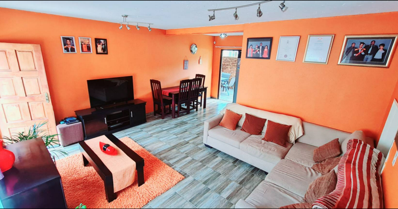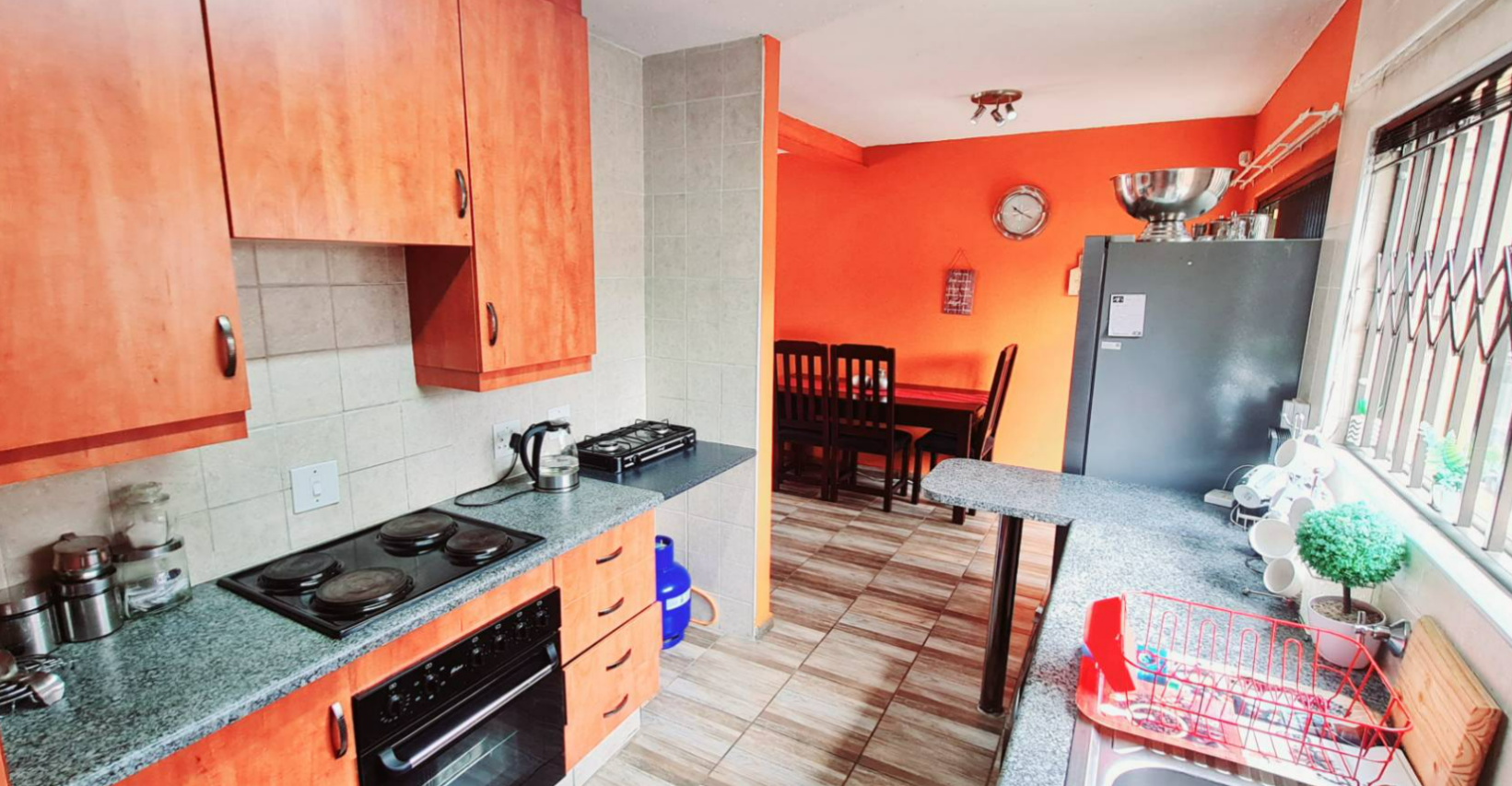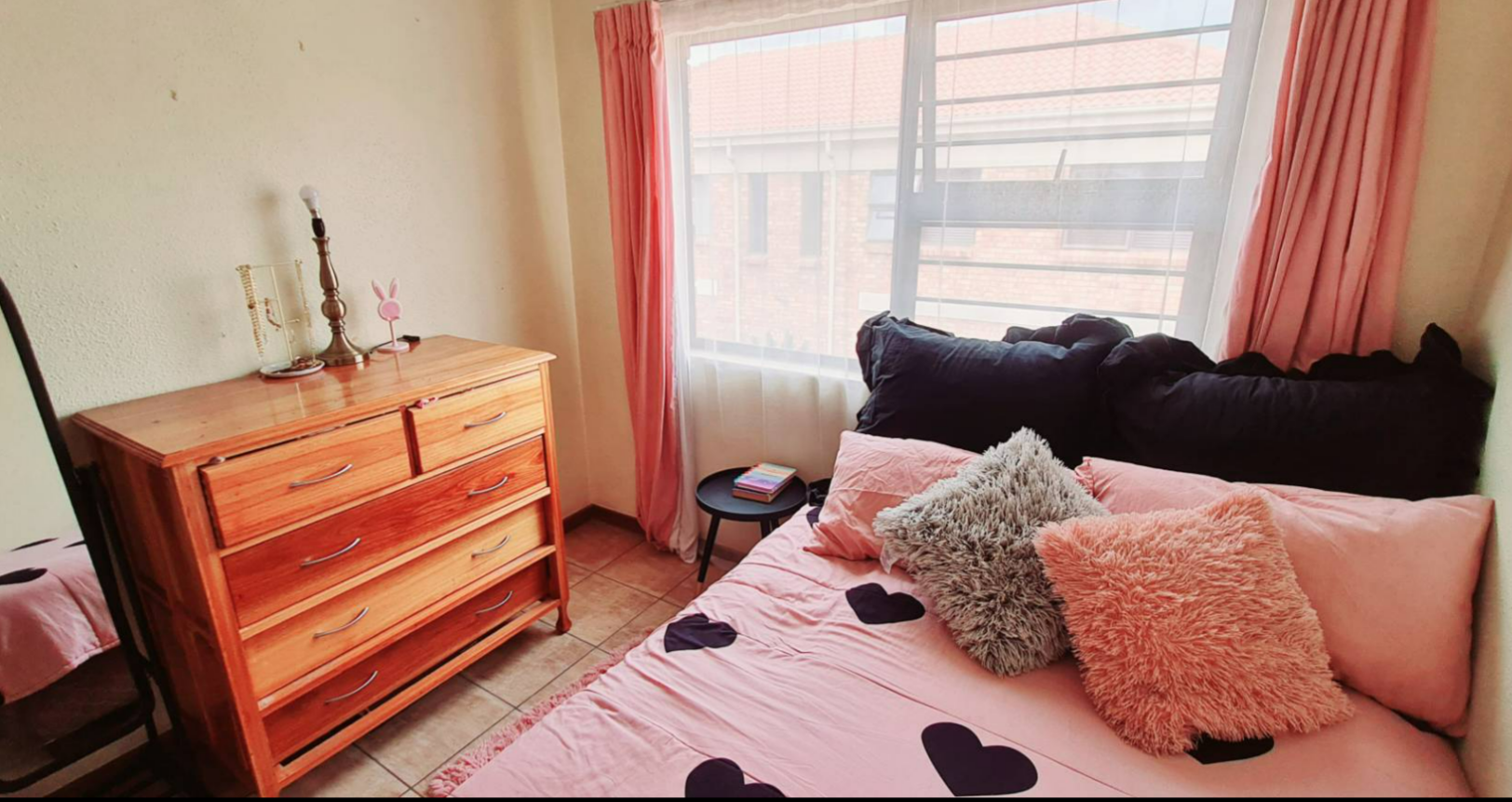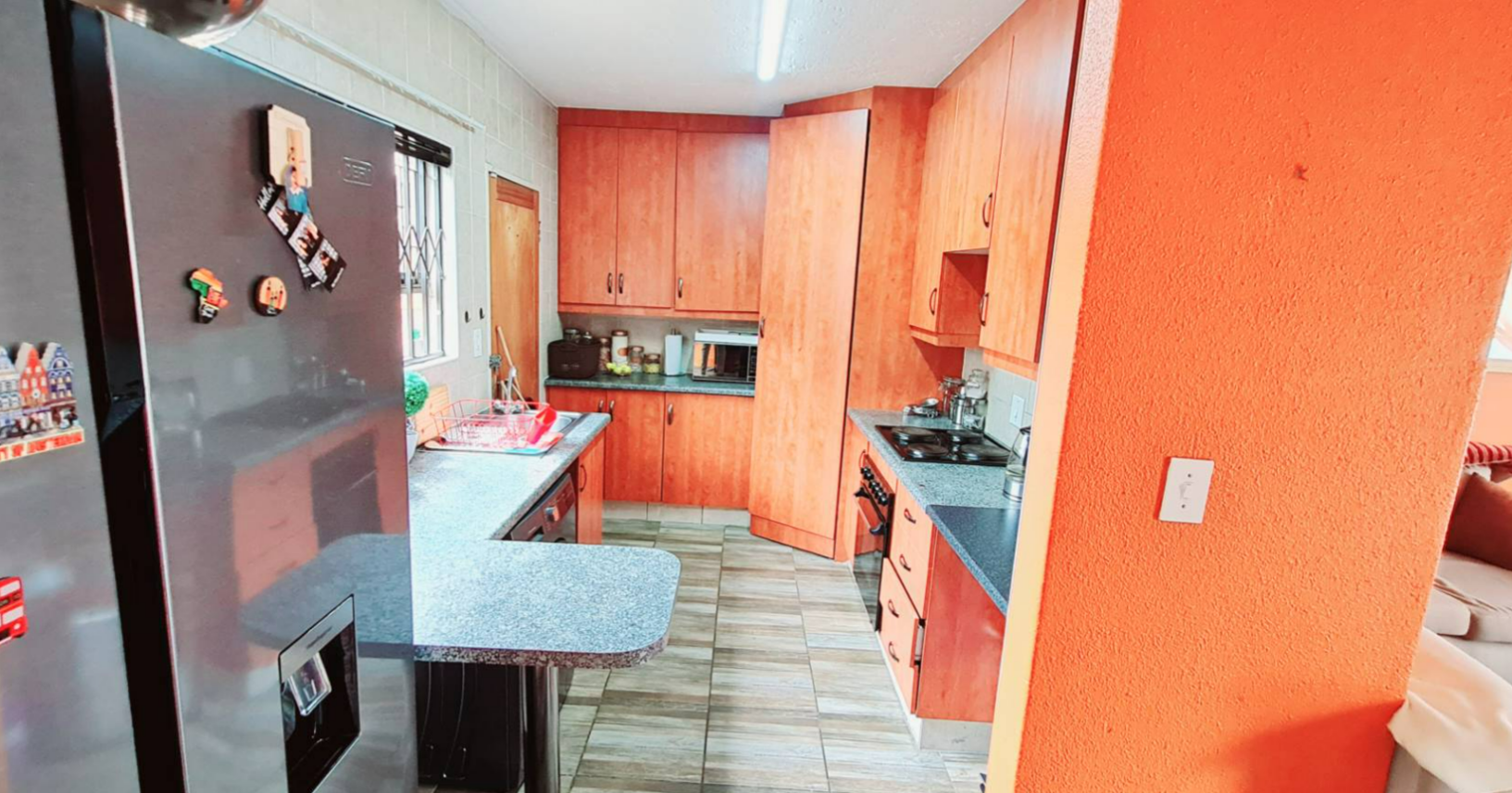 Discover this charming 3-bedroom, 2-bathroom residence nestled in the suburban heart of Florentia, Alberton. The property immediately impresses with its automated gated entrance, flanked by mature landscaping and a paved driveway leading to a durable brick exterior. A striking wooden double garage door and tiled entrance steps enhance the home's inviting curb appeal, complemented by a small, well-maintained garden. Inside, the 121 sqm floor plan offers practical living spaces. The three bedrooms are designed for comfort, each featuring tiled flooring and benefiting from abundant natural light through large, security-barred windows. Built-in wardrobes provide essential storage. The home includes two fully tiled bathrooms, one of which is an en-suite, both featuring compact shower enclosures and mirrored cabinets for convenience. Security is paramount, with an automated access gate, a security gate at the main entrance, and burglar bars on windows, all within a secure complex. A visible solar panel contributes to potential energy efficiency. The expansive 4106 sqm erf size provides significant outdoor potential, a rare find in a suburban setting, offering ample space for future landscaping or expansion. Pets are allowed, making it an ideal family home. Florentia is a well-established suburb in Alberton, known for its community atmosphere and convenient access to local amenities, schools, and major transport routes, making it a desirable location for residents. Key Features: * 3 Bedrooms, 2 Bathrooms (1 En-suite) * Double Garage * Automated Gated Entrance * Expansive 4106 sqm Erf * Durable Brick Exterior * Tiled Flooring Throughout * Security Bars on Windows * Solar Panel * Pet-Friendly