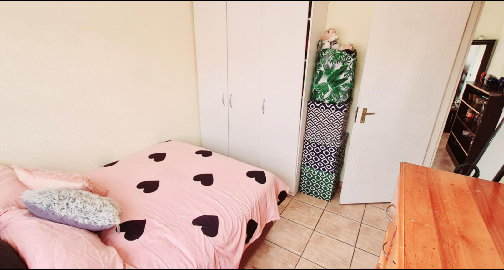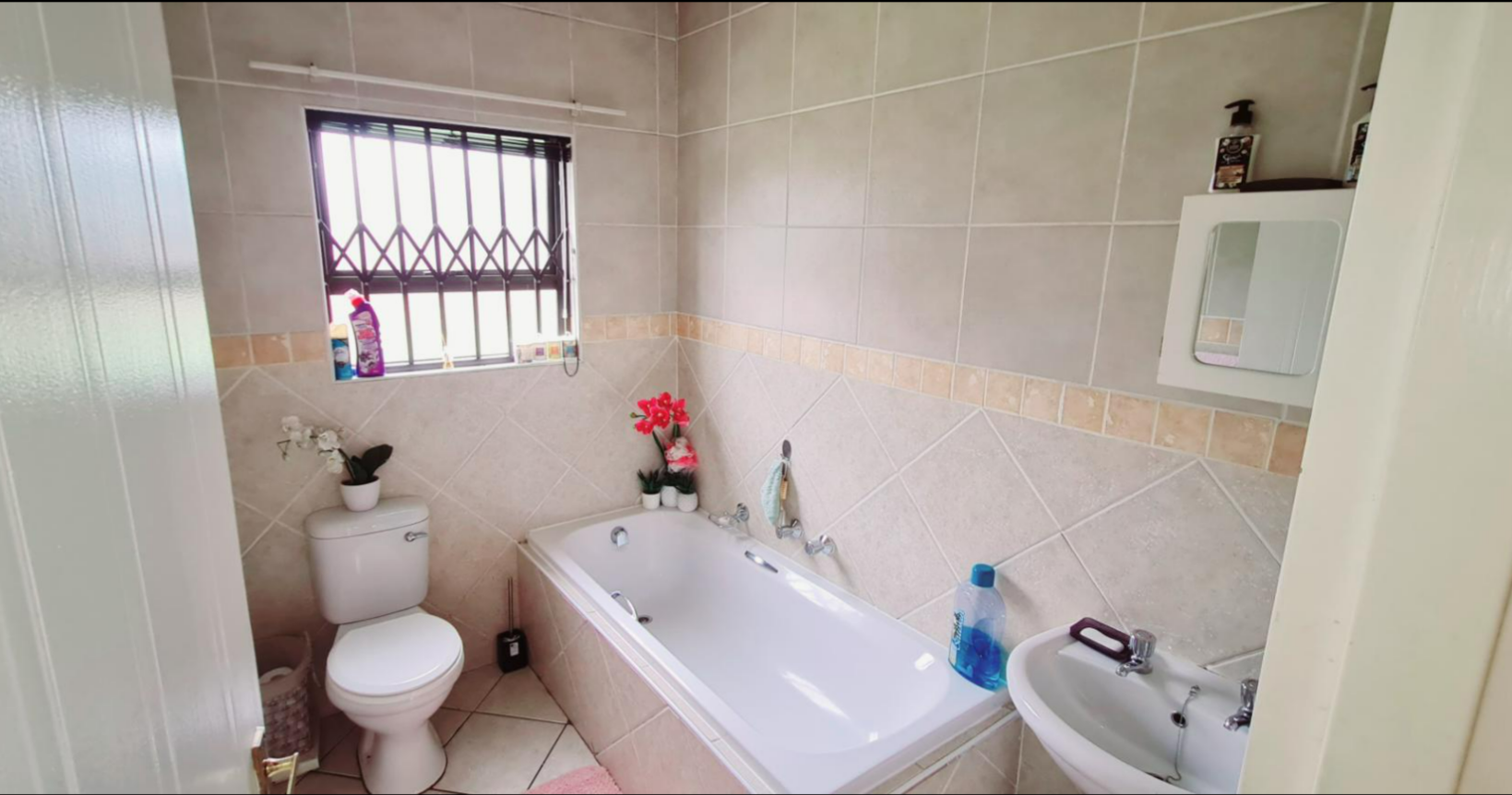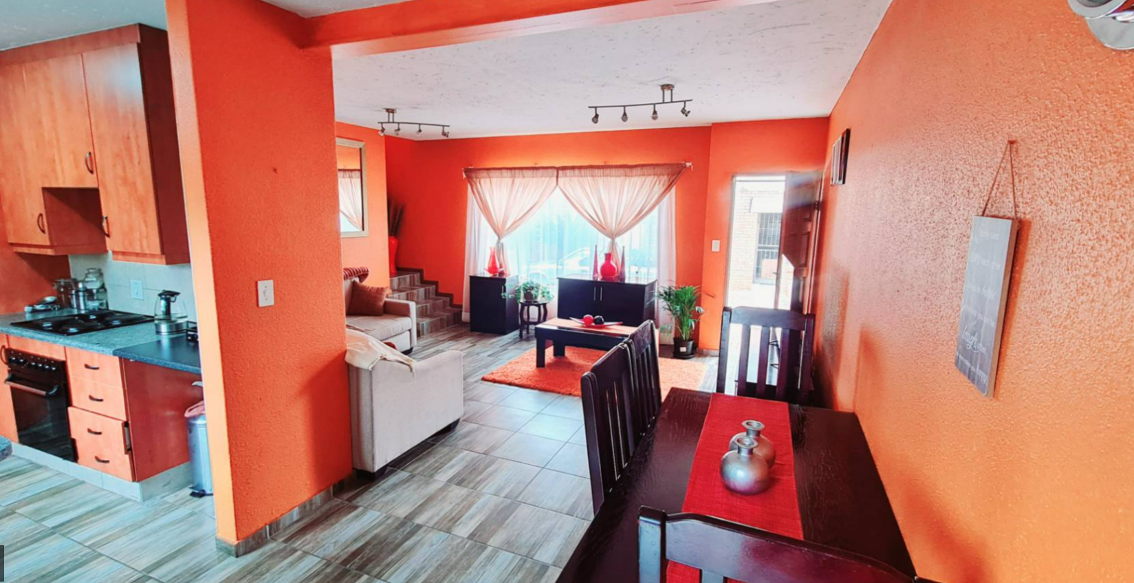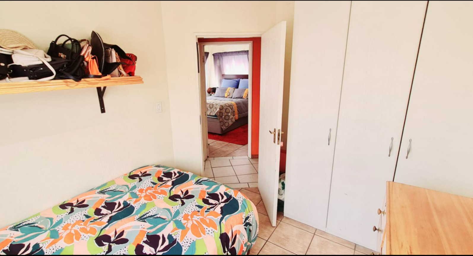 Discover this charming 3-bedroom, 2-bathroom residence nestled in the suburban heart of Florentia, Alberton. The property immediately impresses with its automated gated entrance, flanked by mature landscaping and a paved driveway leading to a durable brick exterior. A striking wooden double garage door and tiled entrance steps enhance the home's inviting curb appeal, complemented by a small, well-maintained garden. Inside, the 121 sqm floor plan offers practical living spaces. The three bedrooms are designed for comfort, each featuring tiled flooring and benefiting from abundant natural light through large, security-barred windows. Built-in wardrobes provide essential storage. The home includes two fully tiled bathrooms, one of which is an en-suite, both featuring compact shower enclosures and mirrored cabinets for convenience. Security is paramount, with an automated access gate, a security gate at the main entrance, and burglar bars on windows, all within a secure complex. A visible solar panel contributes to potential energy efficiency. The expansive 4106 sqm erf size provides significant outdoor potential, a rare find in a suburban setting, offering ample space for future landscaping or expansion. Pets are allowed, making it an ideal family home. Florentia is a well-established suburb in Alberton, known for its community atmosphere and convenient access to local amenities, schools, and major transport routes, making it a desirable location for residents. Key Features: * 3 Bedrooms, 2 Bathrooms (1 En-suite) * Double Garage * Automated Gated Entrance * Expansive 4106 sqm Erf * Durable Brick Exterior * Tiled Flooring Throughout * Security Bars on Windows * Solar Panel * Pet-Friendly