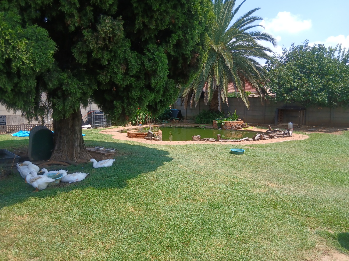 The large backyard includes a swimming pool in need of some attention, a Wendy house for extra storage, and a fully walled yard for added privacy and security. The property also offers a lock-up garage.