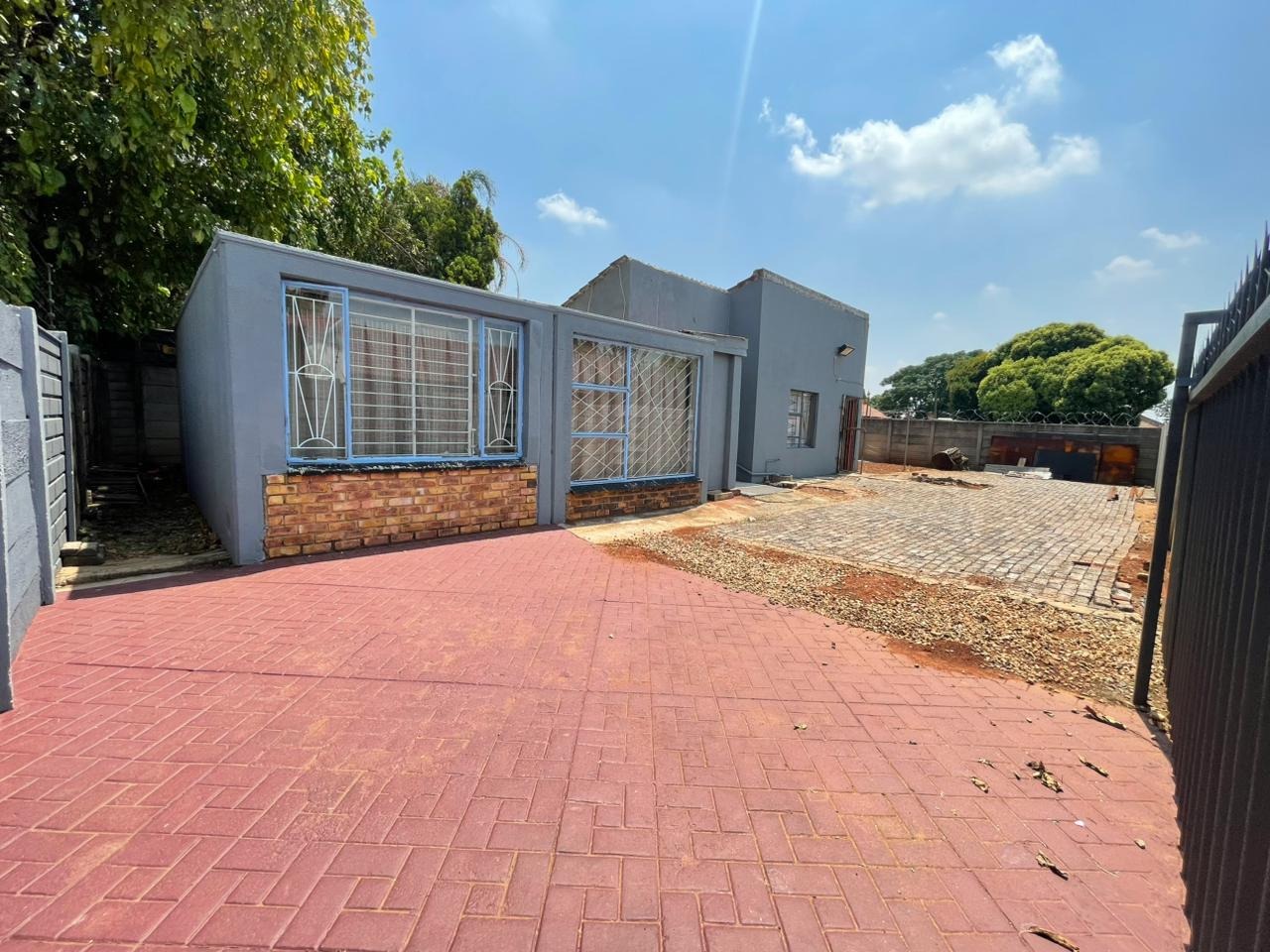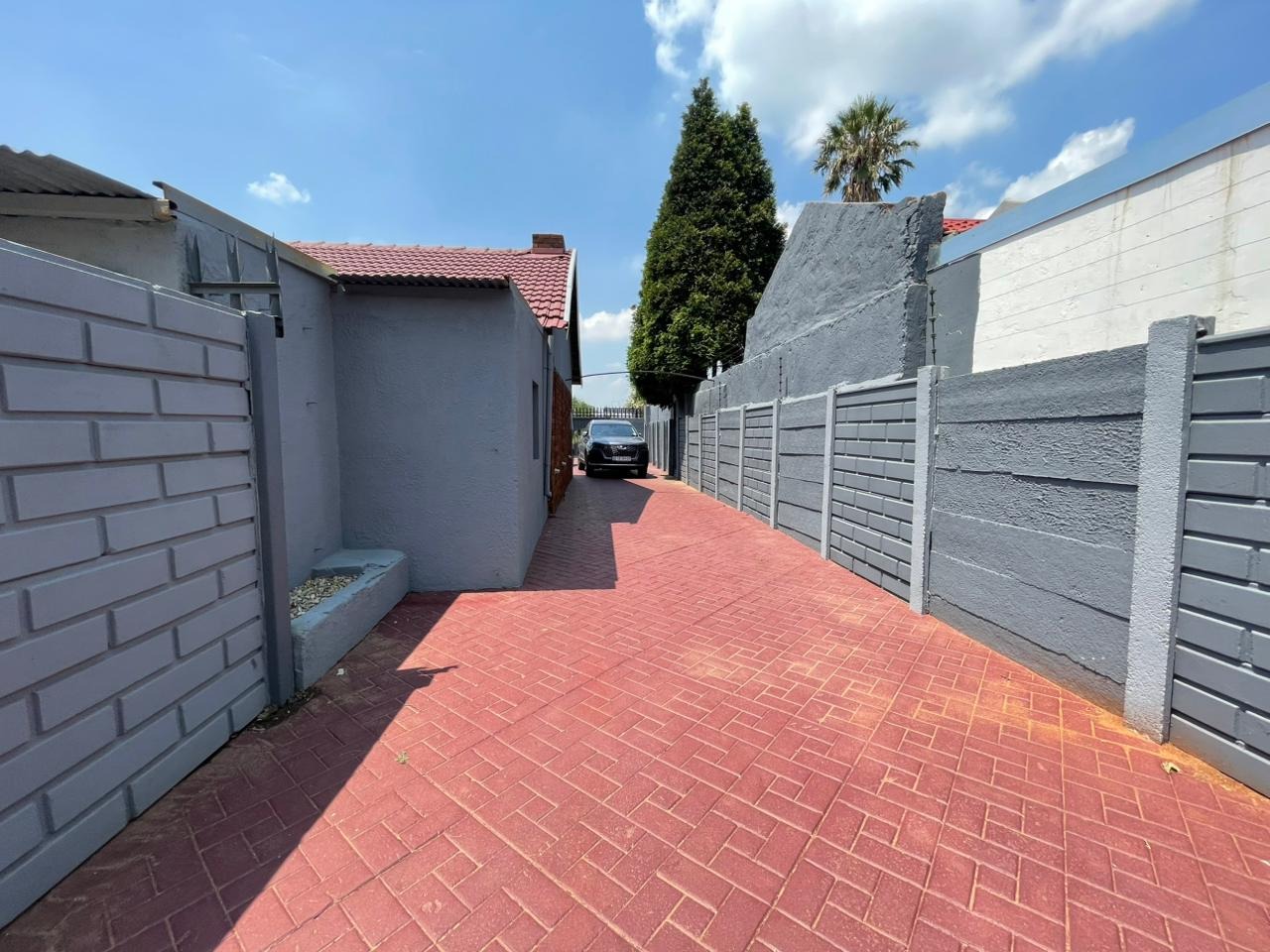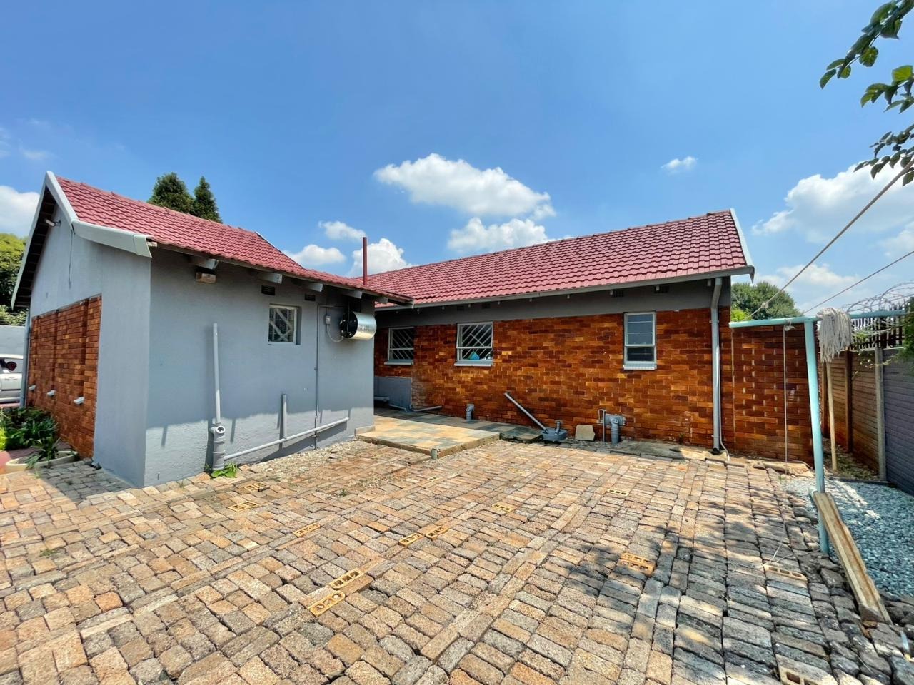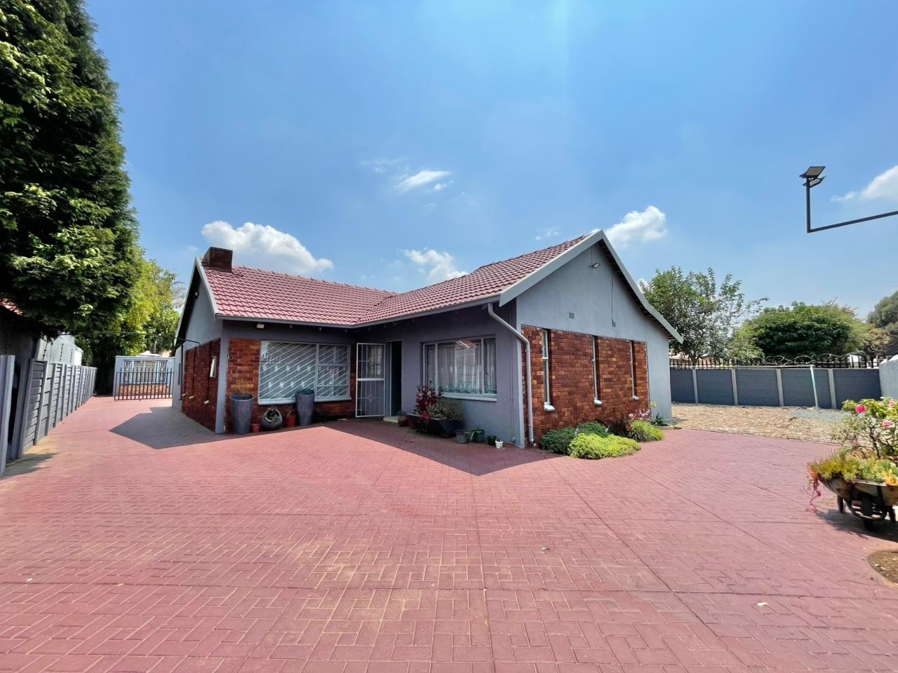 Discover this inviting 3-bedroom, 2-bathroom family home situated on a generous 880 sqm erf. The property immediately impresses with its sturdy brick and tile construction, featuring a grey facade and red brick accents. A prominent red brick paved driveway offers extensive parking for up to eight vehicles, ensuring convenience for residents and guests alike. The property is totally walled, providing a secure and private environment. Step inside to an open-plan lounge and dining area, characterized by light-colored tiled flooring and ample natural light streaming through tall vertical windows. This spacious layout provides a comfortable setting for relaxation and entertaining. The modern kitchen boasts sleek dark grey cabinetry, light countertops, and tiled flooring, equipped with a freestanding stove and a double sink. While compact, it offers functional space for daily meal preparation, enhanced by natural light and security bars on the window. The home features three comfortable bedrooms and two bathrooms, including a convenient ensuite. Beyond the main residence, the property offers practical outdoor amenities including a well-maintained garden, extensive paving, and a built-in braai, perfect for South African entertaining. Additional features include staff quarters, outside toilets, and a separate flatlet, offering versatile living arrangements. Security is well-addressed with an alarm system, burglar bars, and a totally walled perimeter, ensuring peace of mind. The property is also wheelchair-friendly, pet-friendly, and has fibre connectivity. Located in Mayberry Park, Alberton, this well-established suburban area is known for its family-friendly atmosphere and convenient access to local amenities and transport routes. Key Features: * 3 Bedrooms, 2 Bathrooms (1 Ensuite) * Open-plan Lounge and Dining Area * Modern Grey Kitchen with Freestanding Stove * 8 Parking Bays on Paved Driveway * Built-in Braai and Garden * Staff Quarters, Outside Toilets, and Flatlet * Alarm System, Burglar Bars, Totally Walled * Fibre Connectivity Available * Wheelchair and Pet Friendly