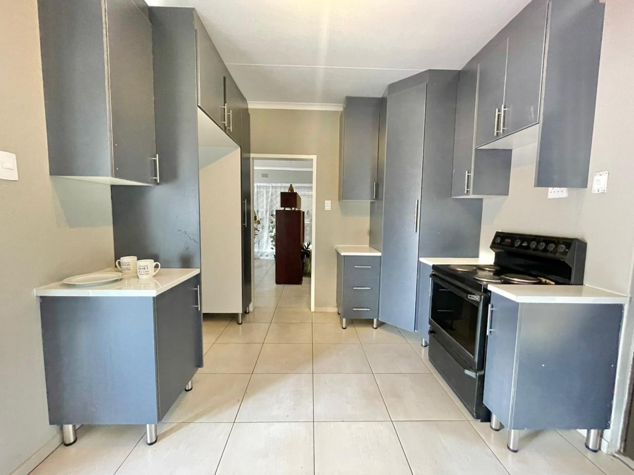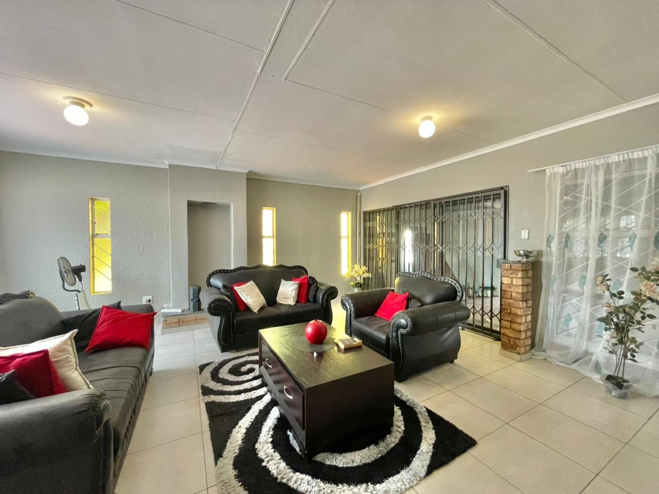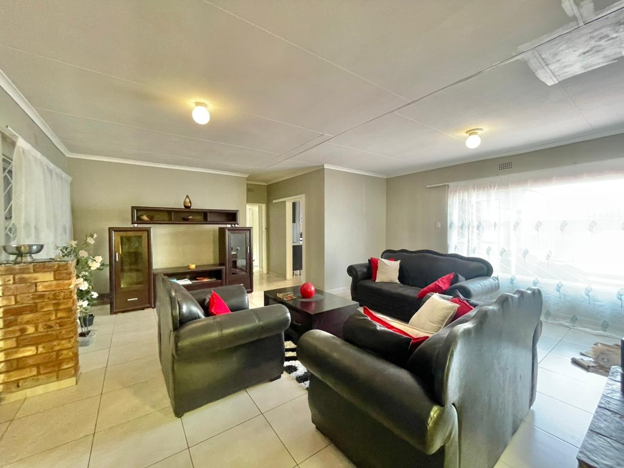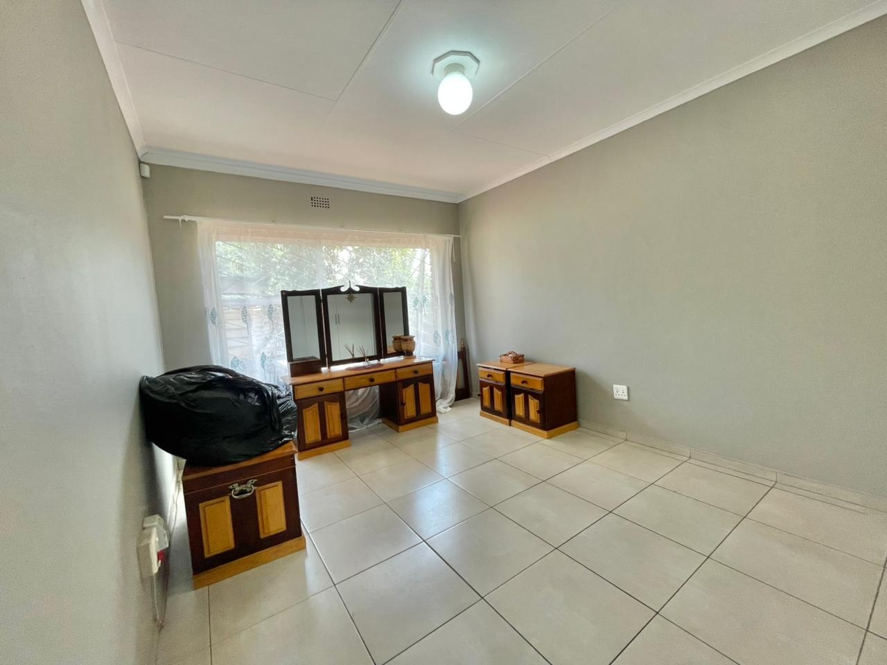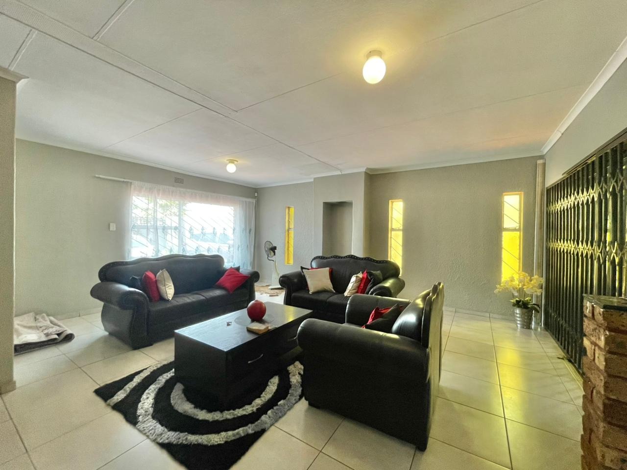 Discover this inviting 3-bedroom, 2-bathroom family home situated on a generous 880 sqm erf. The property immediately impresses with its sturdy brick and tile construction, featuring a grey facade and red brick accents. A prominent red brick paved driveway offers extensive parking for up to eight vehicles, ensuring convenience for residents and guests alike. The property is totally walled, providing a secure and private environment. Step inside to an open-plan lounge and dining area, characterized by light-colored tiled flooring and ample natural light streaming through tall vertical windows. This spacious layout provides a comfortable setting for relaxation and entertaining. The modern kitchen boasts sleek dark grey cabinetry, light countertops, and tiled flooring, equipped with a freestanding stove and a double sink. While compact, it offers functional space for daily meal preparation, enhanced by natural light and security bars on the window. The home features three comfortable bedrooms and two bathrooms, including a convenient ensuite. Beyond the main residence, the property offers practical outdoor amenities including a well-maintained garden, extensive paving, and a built-in braai, perfect for South African entertaining. Additional features include staff quarters, outside toilets, and a separate flatlet, offering versatile living arrangements. Security is well-addressed with an alarm system, burglar bars, and a totally walled perimeter, ensuring peace of mind. The property is also wheelchair-friendly, pet-friendly, and has fibre connectivity. Located in Mayberry Park, Alberton, this well-established suburban area is known for its family-friendly atmosphere and convenient access to local amenities and transport routes. Key Features: * 3 Bedrooms, 2 Bathrooms (1 Ensuite) * Open-plan Lounge and Dining Area * Modern Grey Kitchen with Freestanding Stove * 8 Parking Bays on Paved Driveway * Built-in Braai and Garden * Staff Quarters, Outside Toilets, and Flatlet * Alarm System, Burglar Bars, Totally Walled * Fibre Connectivity Available * Wheelchair and Pet Friendly