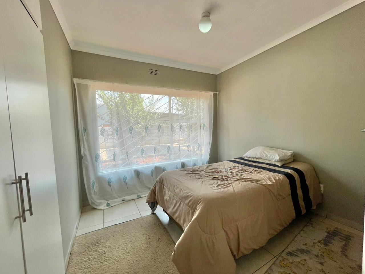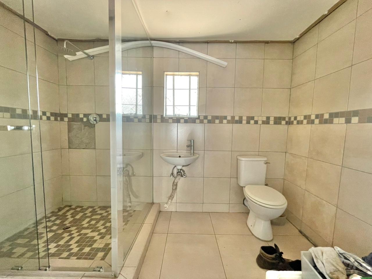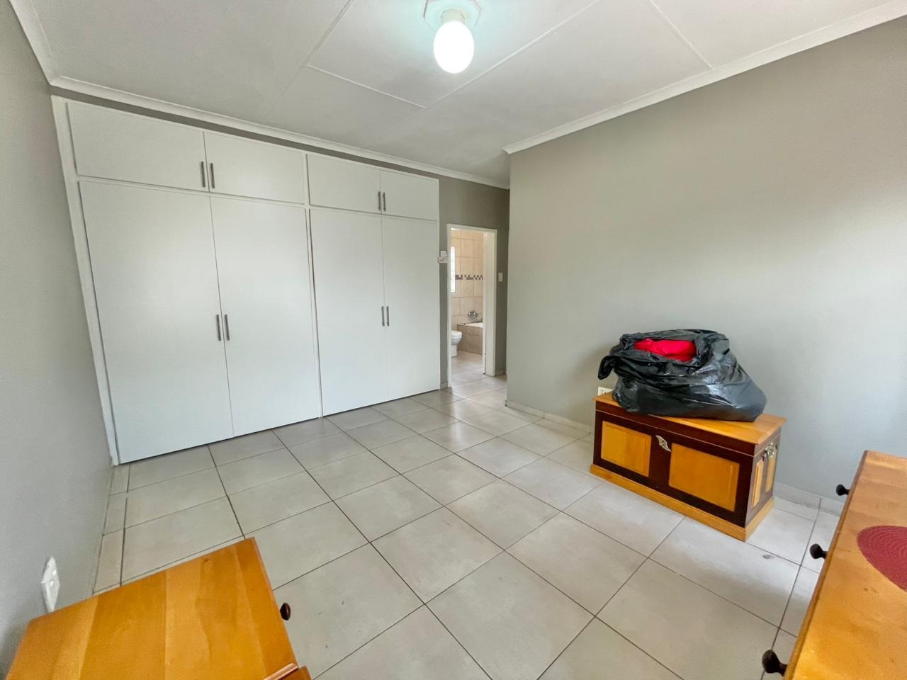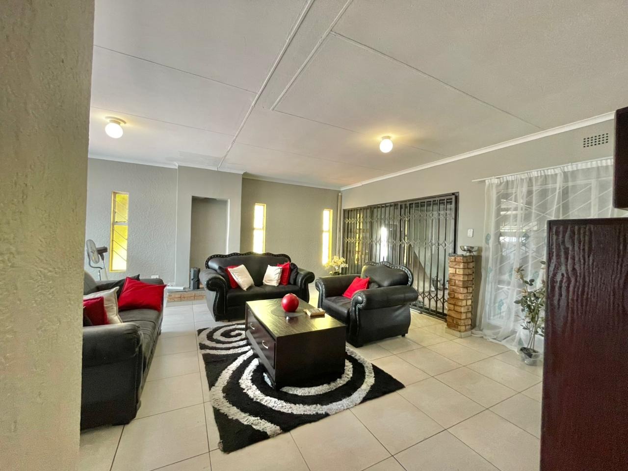 Discover this inviting 3-bedroom, 2-bathroom family home situated on a generous 880 sqm erf. The property immediately impresses with its sturdy brick and tile construction, featuring a grey facade and red brick accents. A prominent red brick paved driveway offers extensive parking for up to eight vehicles, ensuring convenience for residents and guests alike. The property is totally walled, providing a secure and private environment. Step inside to an open-plan lounge and dining area, characterized by light-colored tiled flooring and ample natural light streaming through tall vertical windows. This spacious layout provides a comfortable setting for relaxation and entertaining. The modern kitchen boasts sleek dark grey cabinetry, light countertops, and tiled flooring, equipped with a freestanding stove and a double sink. While compact, it offers functional space for daily meal preparation, enhanced by natural light and security bars on the window. The home features three comfortable bedrooms and two bathrooms, including a convenient ensuite. Beyond the main residence, the property offers practical outdoor amenities including a well-maintained garden, extensive paving, and a built-in braai, perfect for South African entertaining. Additional features include staff quarters, outside toilets, and a separate flatlet, offering versatile living arrangements. Security is well-addressed with an alarm system, burglar bars, and a totally walled perimeter, ensuring peace of mind. The property is also wheelchair-friendly, pet-friendly, and has fibre connectivity. Located in Mayberry Park, Alberton, this well-established suburban area is known for its family-friendly atmosphere and convenient access to local amenities and transport routes. Key Features: * 3 Bedrooms, 2 Bathrooms (1 Ensuite) * Open-plan Lounge and Dining Area * Modern Grey Kitchen with Freestanding Stove * 8 Parking Bays on Paved Driveway * Built-in Braai and Garden * Staff Quarters, Outside Toilets, and Flatlet * Alarm System, Burglar Bars, Totally Walled * Fibre Connectivity Available * Wheelchair and Pet Friendly