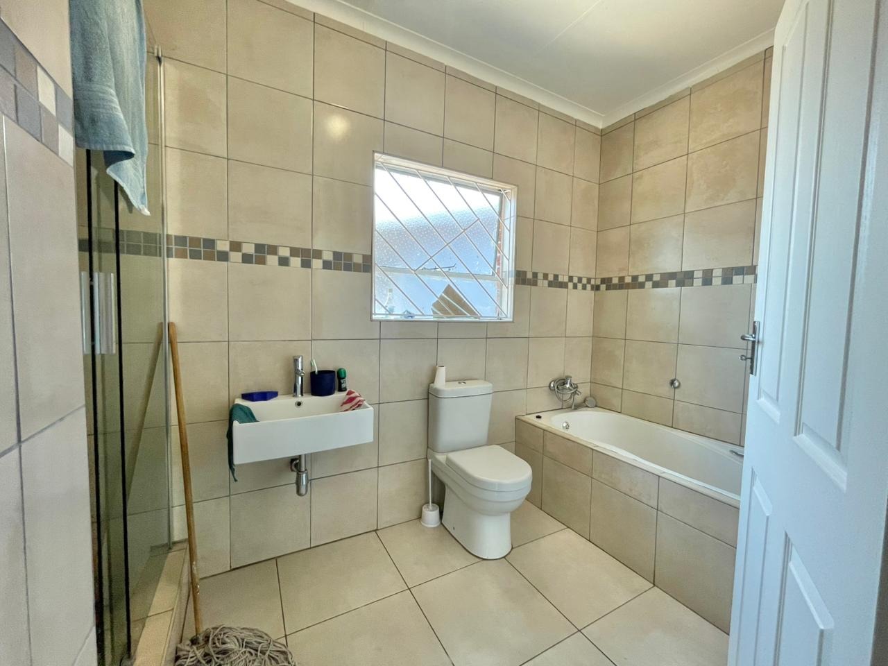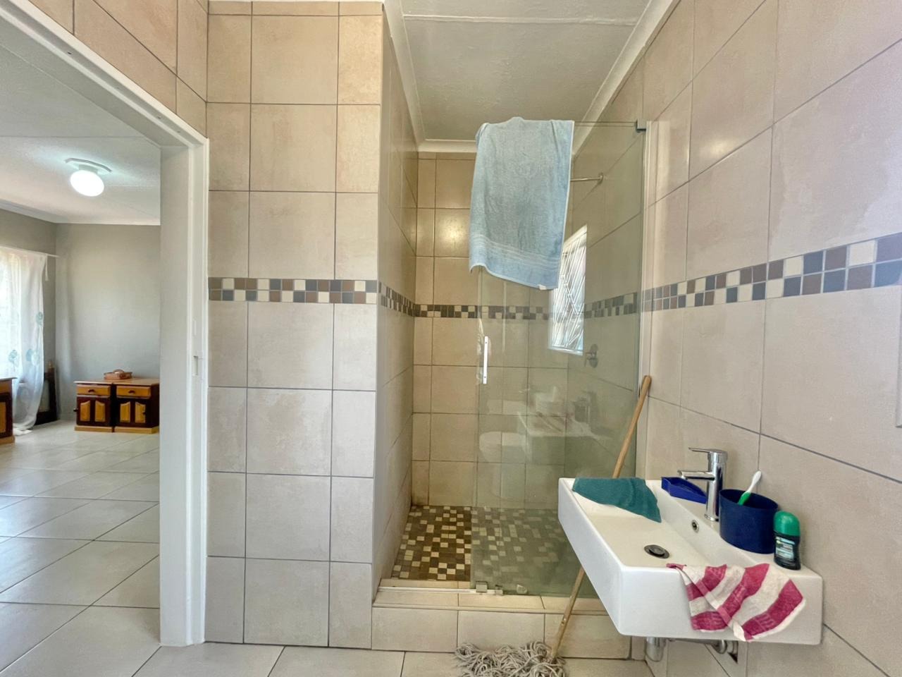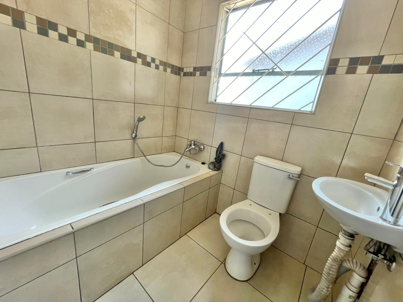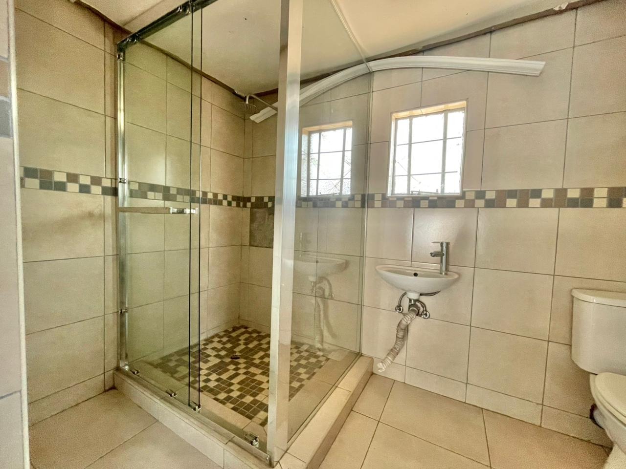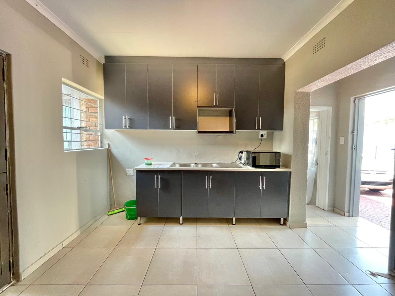 Discover this inviting 3-bedroom, 2-bathroom family home situated on a generous 880 sqm erf. The property immediately impresses with its sturdy brick and tile construction, featuring a grey facade and red brick accents. A prominent red brick paved driveway offers extensive parking for up to eight vehicles, ensuring convenience for residents and guests alike. The property is totally walled, providing a secure and private environment. Step inside to an open-plan lounge and dining area, characterized by light-colored tiled flooring and ample natural light streaming through tall vertical windows. This spacious layout provides a comfortable setting for relaxation and entertaining. The modern kitchen boasts sleek dark grey cabinetry, light countertops, and tiled flooring, equipped with a freestanding stove and a double sink. While compact, it offers functional space for daily meal preparation, enhanced by natural light and security bars on the window. The home features three comfortable bedrooms and two bathrooms, including a convenient ensuite. Beyond the main residence, the property offers practical outdoor amenities including a well-maintained garden, extensive paving, and a built-in braai, perfect for South African entertaining. Additional features include staff quarters, outside toilets, and a separate flatlet, offering versatile living arrangements. Security is well-addressed with an alarm system, burglar bars, and a totally walled perimeter, ensuring peace of mind. The property is also wheelchair-friendly, pet-friendly, and has fibre connectivity. Located in Mayberry Park, Alberton, this well-established suburban area is known for its family-friendly atmosphere and convenient access to local amenities and transport routes. Key Features: * 3 Bedrooms, 2 Bathrooms (1 Ensuite) * Open-plan Lounge and Dining Area * Modern Grey Kitchen with Freestanding Stove * 8 Parking Bays on Paved Driveway * Built-in Braai and Garden * Staff Quarters, Outside Toilets, and Flatlet * Alarm System, Burglar Bars, Totally Walled * Fibre Connectivity Available * Wheelchair and Pet Friendly