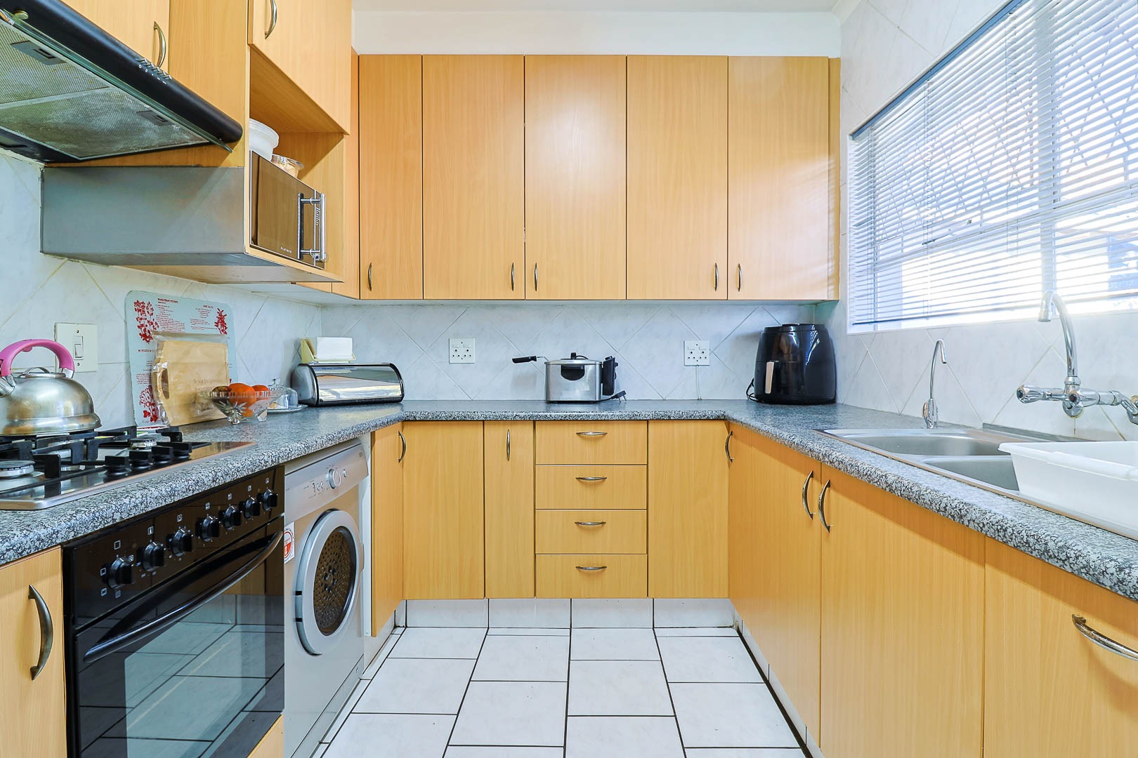This beautiful family house has everything you need!!! It is located in the quite Mayberry Park suburb in Alberton. It offers four spacious bedrooms with built in cupboards and tiled flooring. Two bathrooms offering main en-suite with bath, basin, toilet. The other bathroom shared by the three bedrooms has bath, shower, basin and toilet.