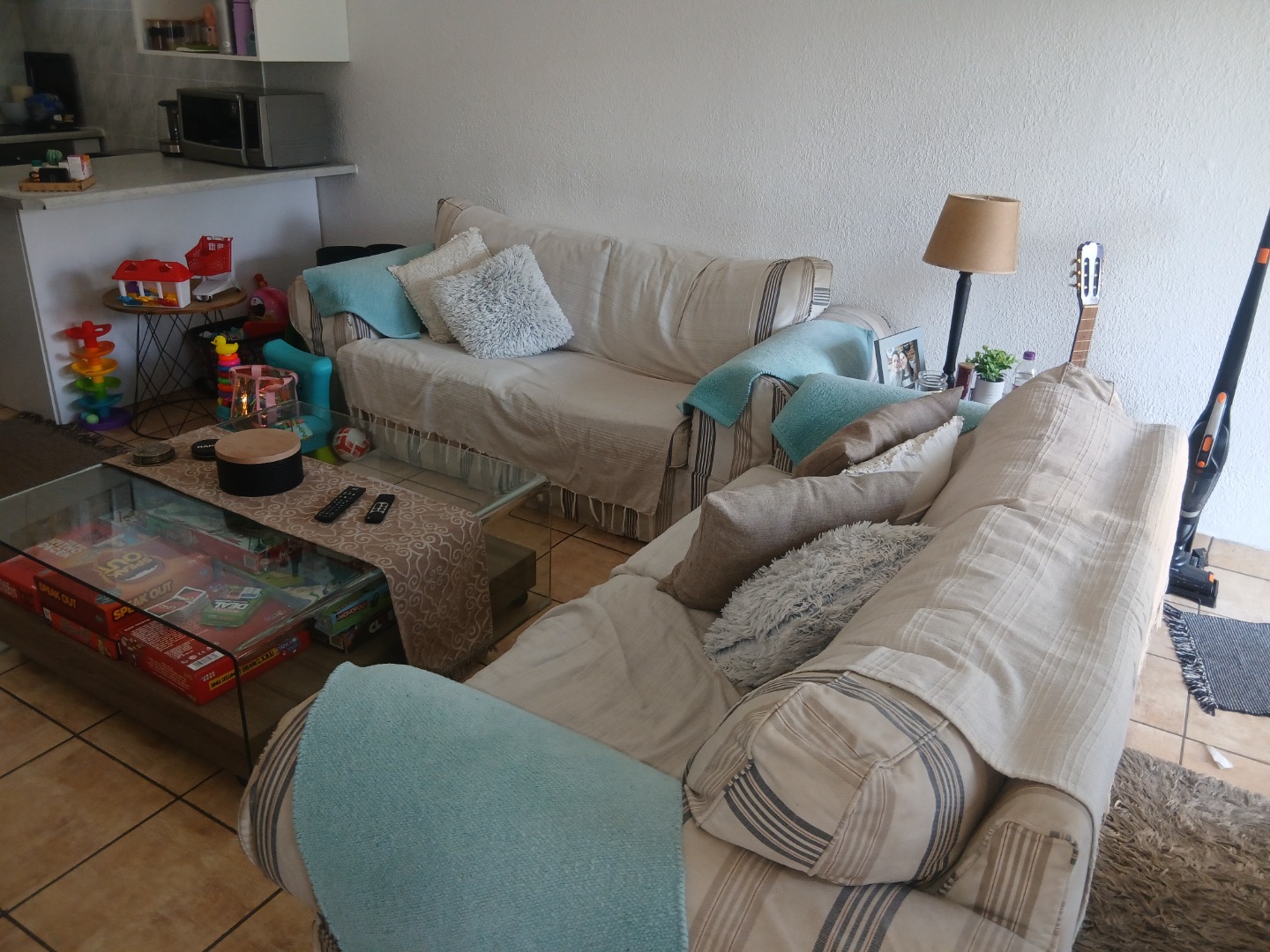 The home boasts high ceilings that enhance the sense of space, along with an open-plan lounge and kitchen ideal for modern living. The spacious main bedroom offers built-in cupboards and laminated flooring, while the second bedroom also includes built-in cupboards and laminated floors.