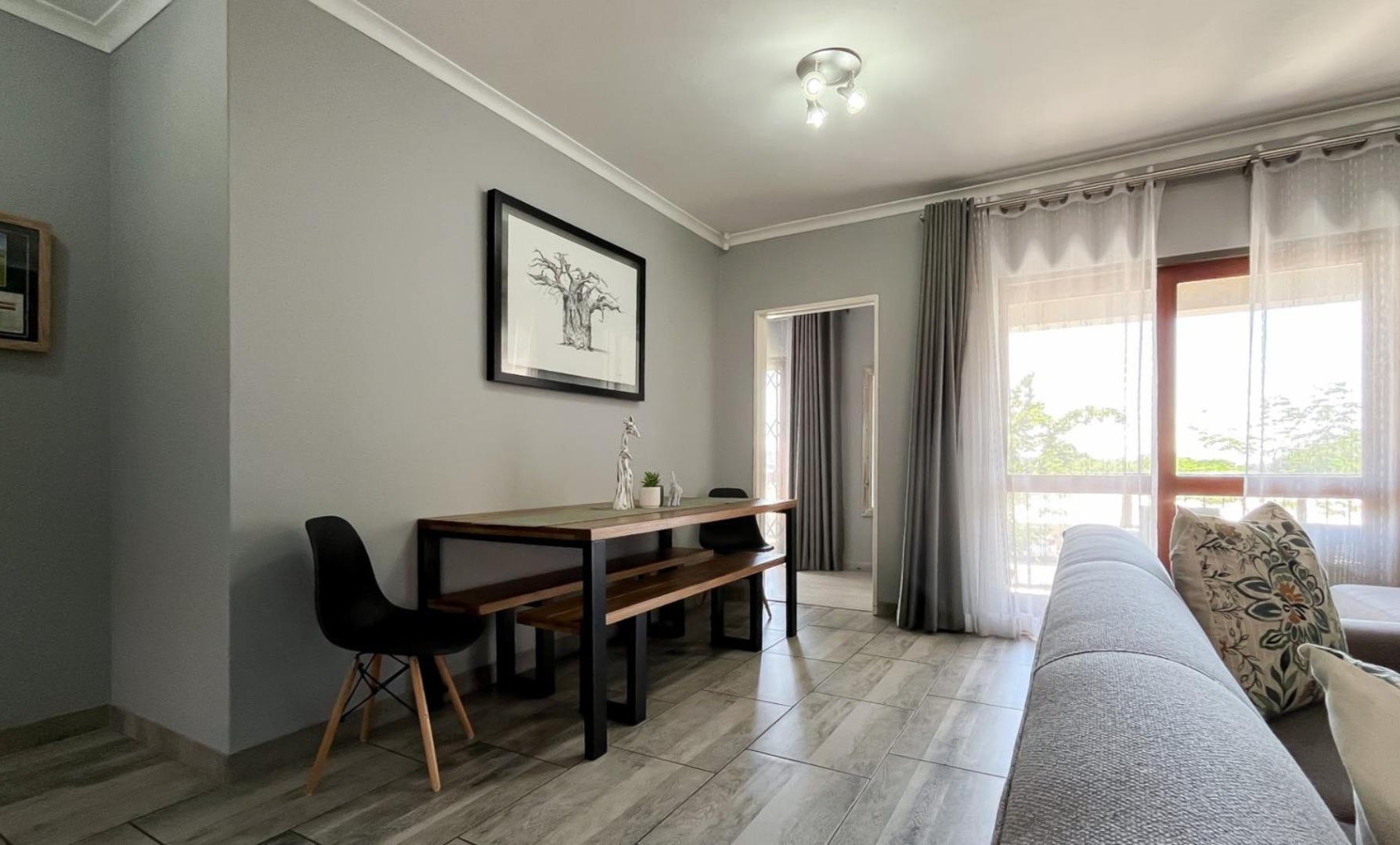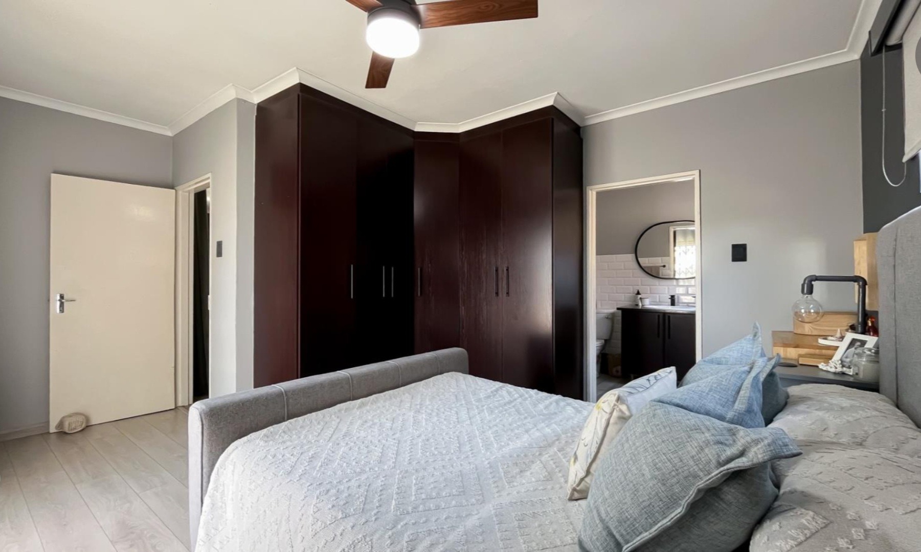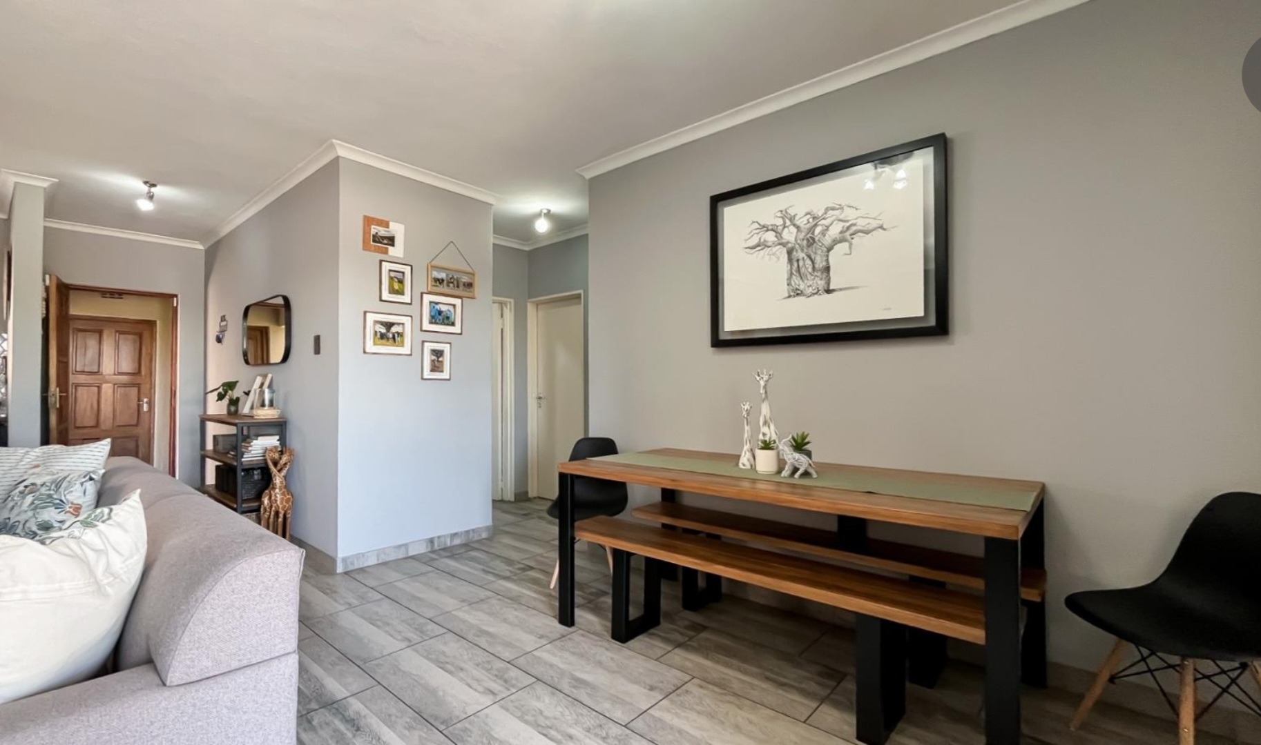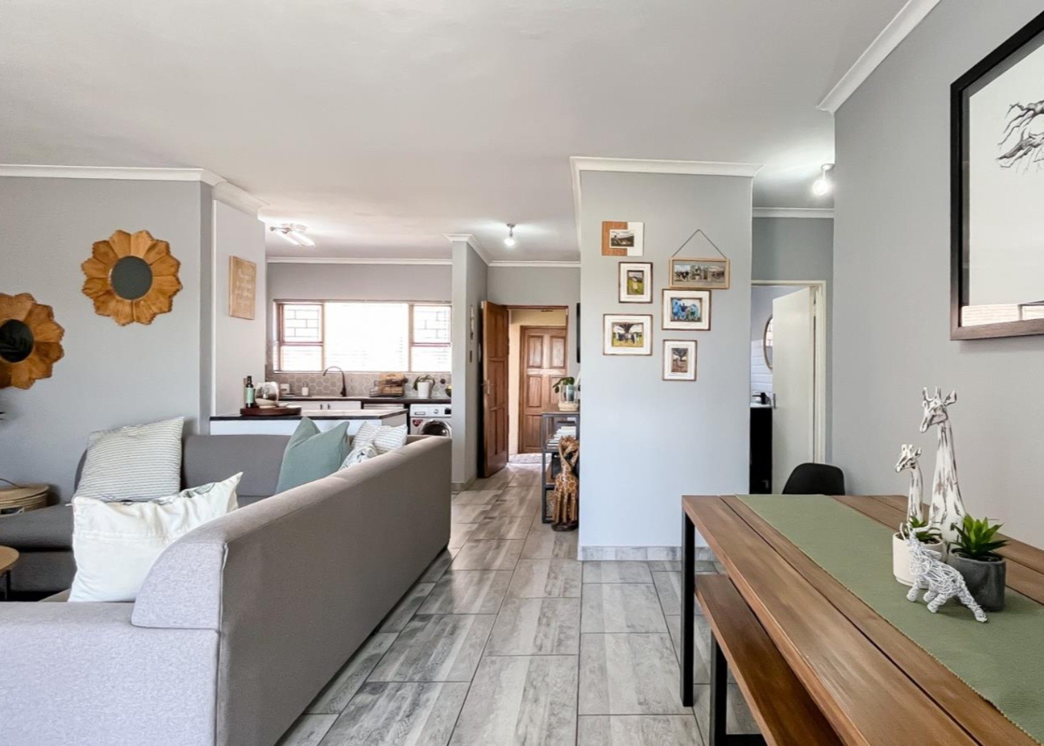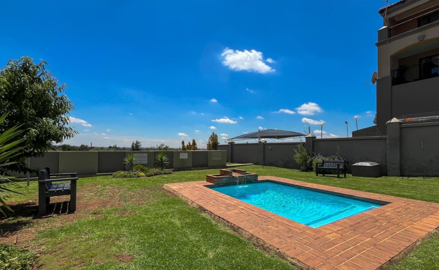 Discover modern living in this 92 sqm apartment within the secure Rock Ridge Meyerdal complex in Meyersdal, Alberton. The stylish open-plan layout seamlessly integrates the lounge, dining area, and a well-appointed kitchen. Interiors feature a neutral grey palette, elegant wood-look tiled flooring, and sophisticated crown moulding. An accent wall adds character, and the living space extends to a compact balcony. This residence offers two comfortable bedrooms and two modern bathrooms, maintaining a clean, contemporary aesthetic throughout. Residents enjoy excellent lifestyle amenities, including a refreshing swimming pool, a dedicated club house, and a communal garden. The property also features a built-in braai for entertaining and two convenient parking spaces. Security is paramount, with electric fencing, a security post, access gate, and an alarm system. Benefit from 24-hour security and CCTV surveillance, plus available ADSL connectivity. The complex boasts strong kerb appeal with its modern architectural style, light-coloured buildings, and terracotta roofs. Meyersdal, a sought-after suburban area in Alberton, offers a tranquil environment and convenient access to local amenities. Key Features: * Modern 2 Bed, 2 Bath Apartment * 92 sqm Floor Size * Open-Plan Living with Balcony * Wood-Look Tiled Flooring & Crown Moulding * Secure Complex with 24-Hour Security & CCTV * Communal Pool, Club House & Garden * Built-in Braai & 2 Parking Spaces * Pet-Friendly