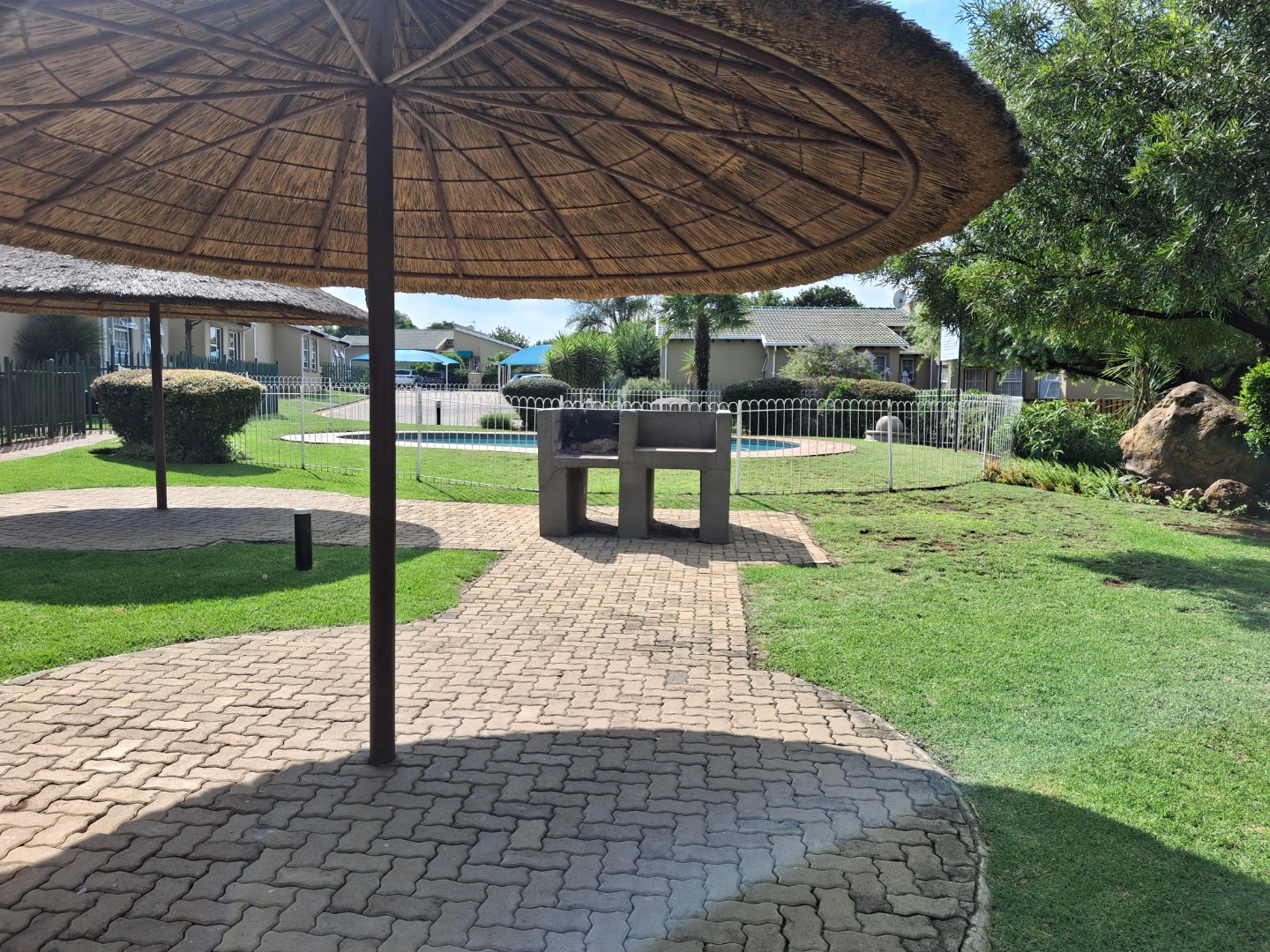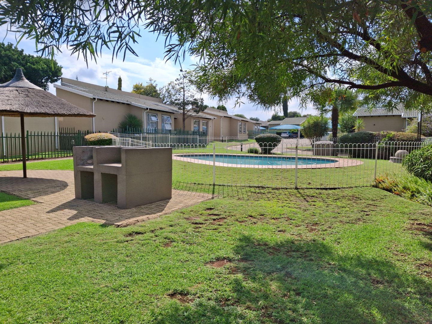 Beautiful 2 bedroom town house with one bathroom .North facing ,sunny,lounge and dinning room,2splended bedrooms.This property is strategically situated near shopping centers and in a security complex .Enjoy the huge swimming pool and braai lapa.Ideal for a "lock up and go"