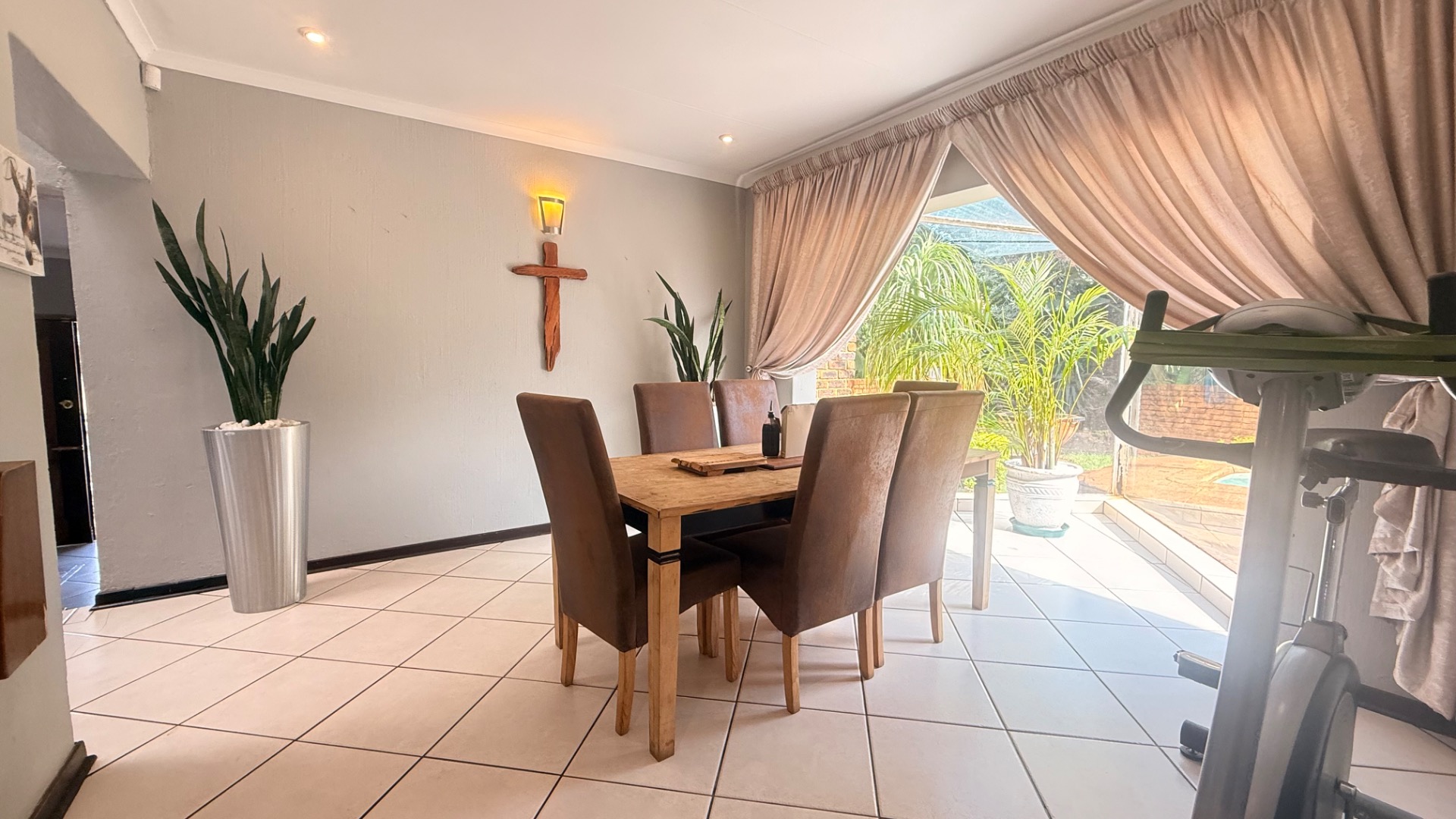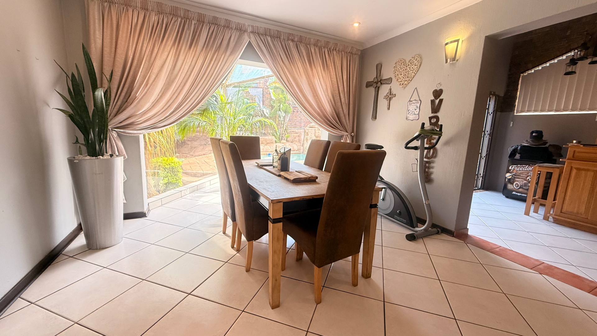 Further enhancing the appeal of this home is a built-in bar, ideal for hosting friends and family. With four bedrooms and three bathrooms, this residence provides generous accommodation for a growing family. Situated in a tranquil suburban setting, it offers a peaceful environment while remaining accessible to local amenities in Alberton, South Africa.