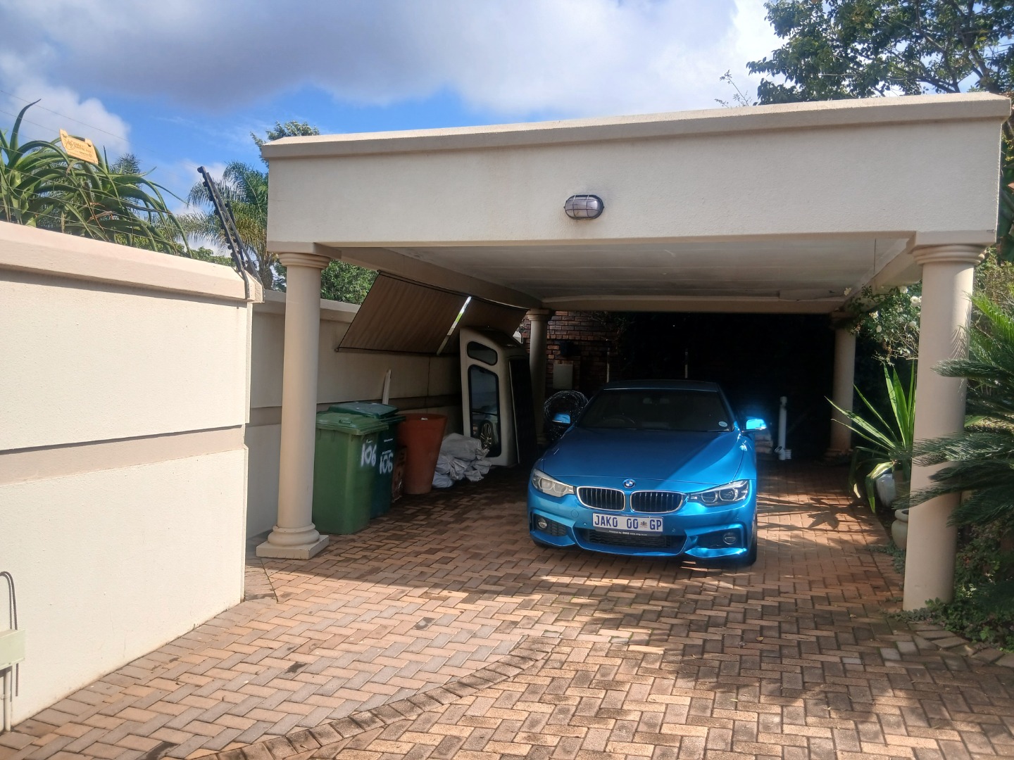 Outdoors is two Zoe-Zoe storage huts for tools, plus outside toilet and shower, double automated garage with built-in cupboards, secure guest parking and additional covered parking