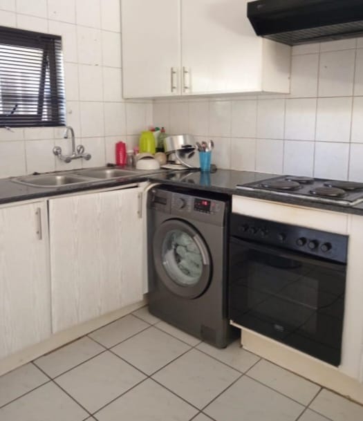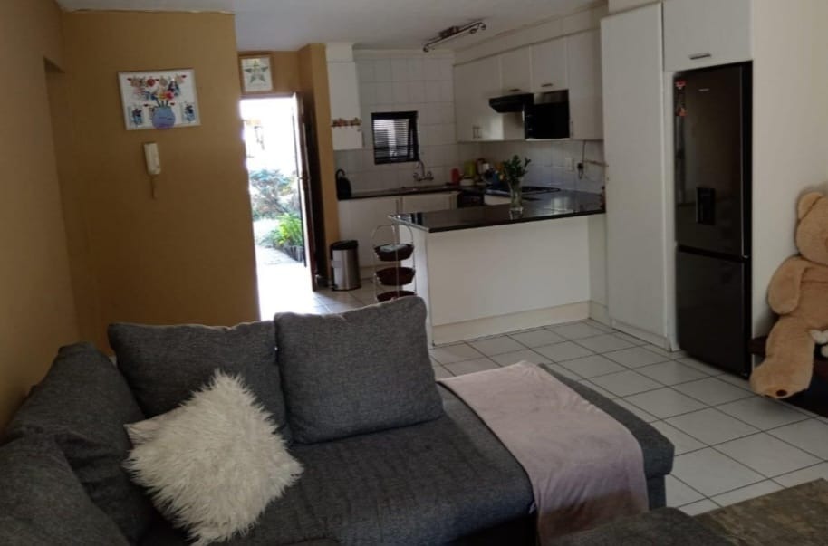 Discover comfortable living in this inviting two bedroom, one bathroom unit located within a secure complex in New Market, Alberton. The residence features an open-plan layout, seamlessly connecting the living area and kitchen, creating a spacious and bright atmosphere. Large glass doors in the lounge provide abundant natural light and direct access to the private outdoor space. The modern kitchen is equipped with white cabinetry, dark countertops, a breakfast bar, and includes an integrated washing machine, stove, oven, and range hood, catering to practical daily needs. Tiled flooring extends throughout the main living areas, offering durability and easy maintenance.