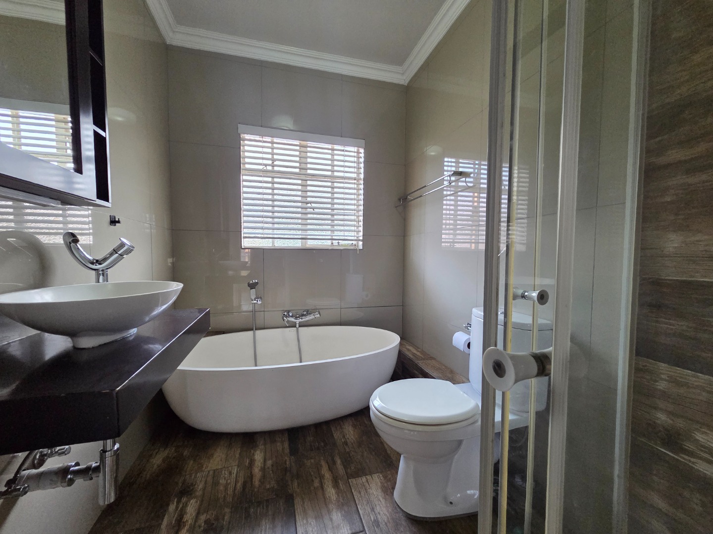 This inviting home offers 2 well-sized bedrooms, both fitted with built-in cupboards, providing ample storage space while maintaining a clean and uncluttered feel. The full bathroom is neatly finished and designed for both practicality and comfort.