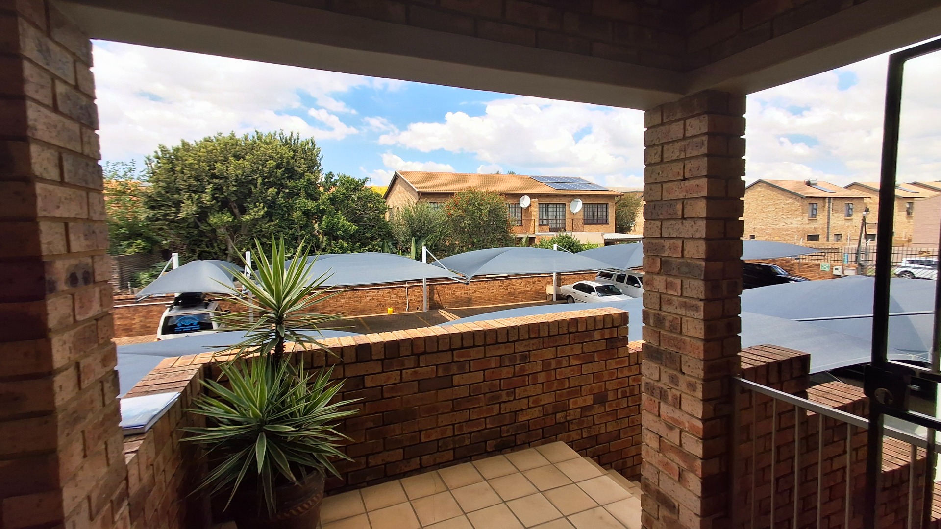 Security is top-notch with spiked fencing, electric fencing, access-controlled gates, and burglar bars. The complex boasts durable brick construction, neat landscaping, and visible solar panels for energy efficiency.