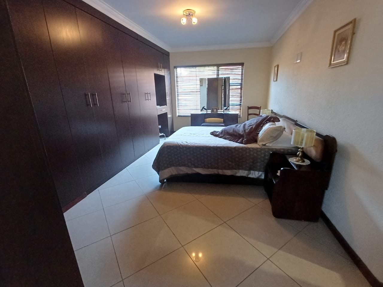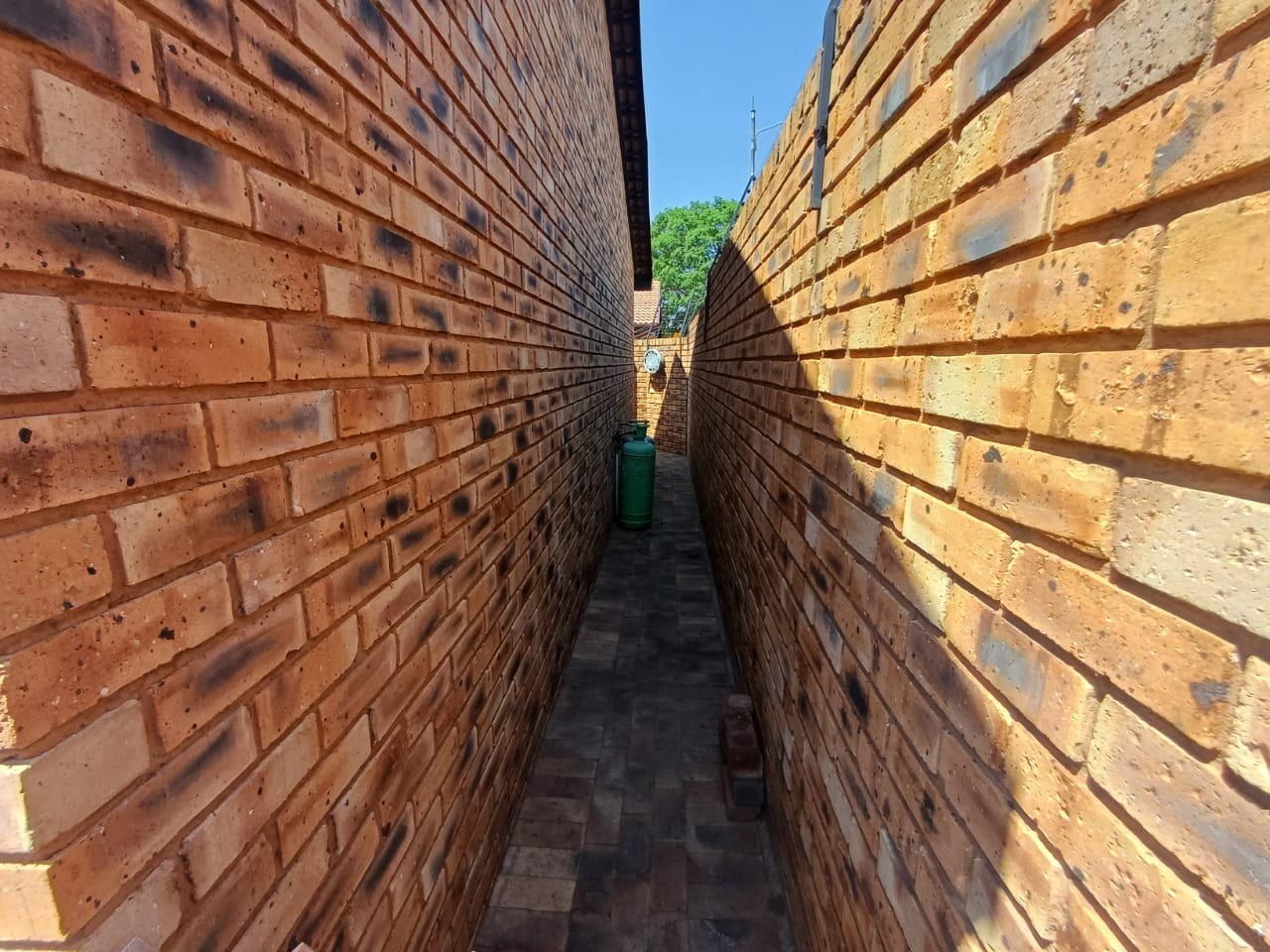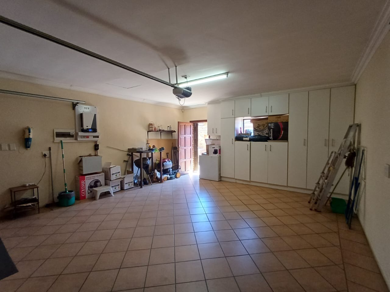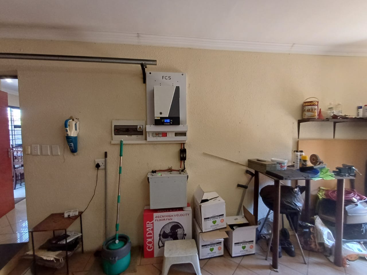 Security is a priority, with features such as electric fencing, burglar bars, a security gate, and an intercom system, all within a totally walled perimeter, providing peace of mind. This home also embraces sustainable living with solar panels, a battery inverter, and a solar geyser, contributing to energy efficiency and reduced utility costs.