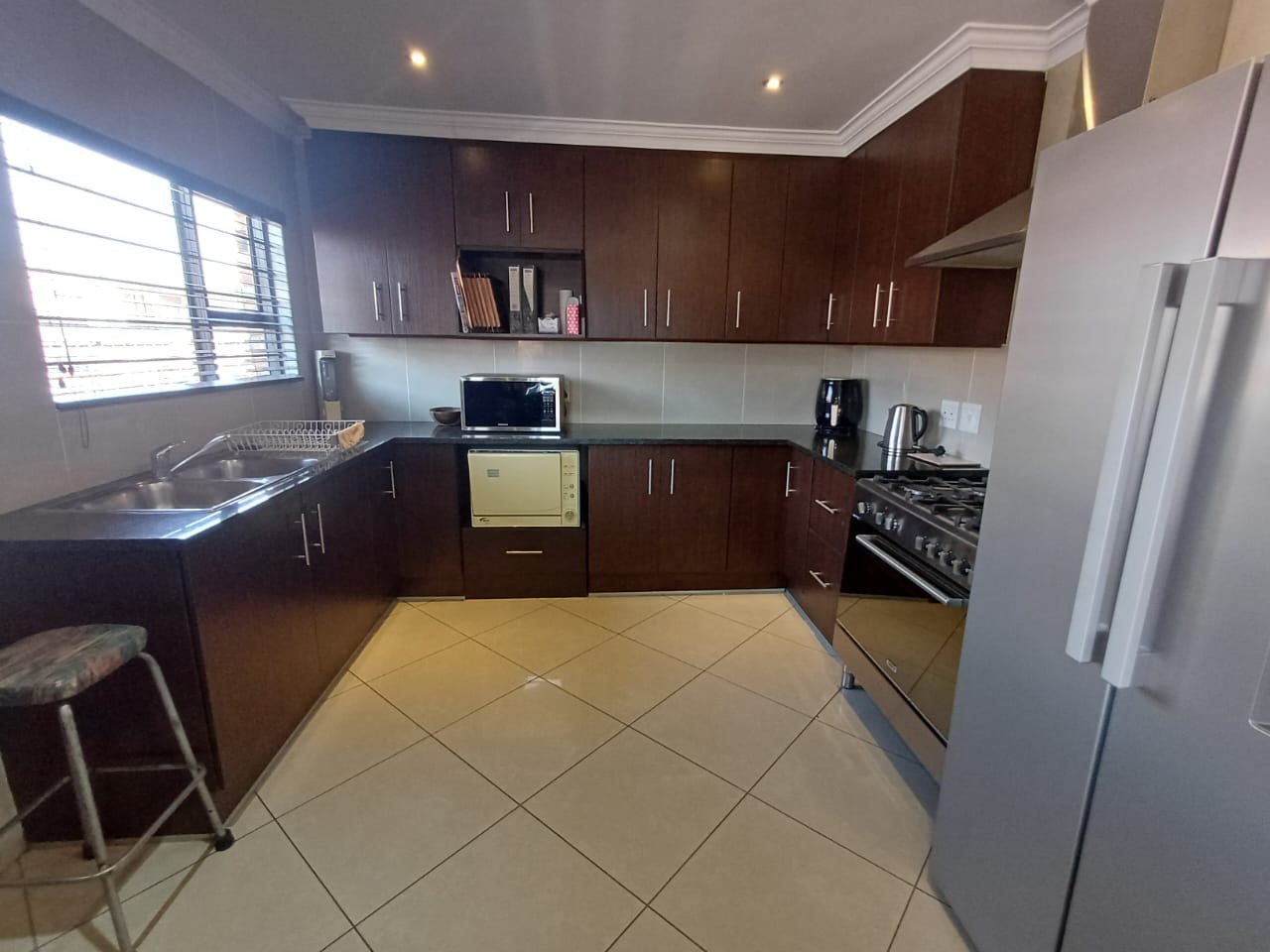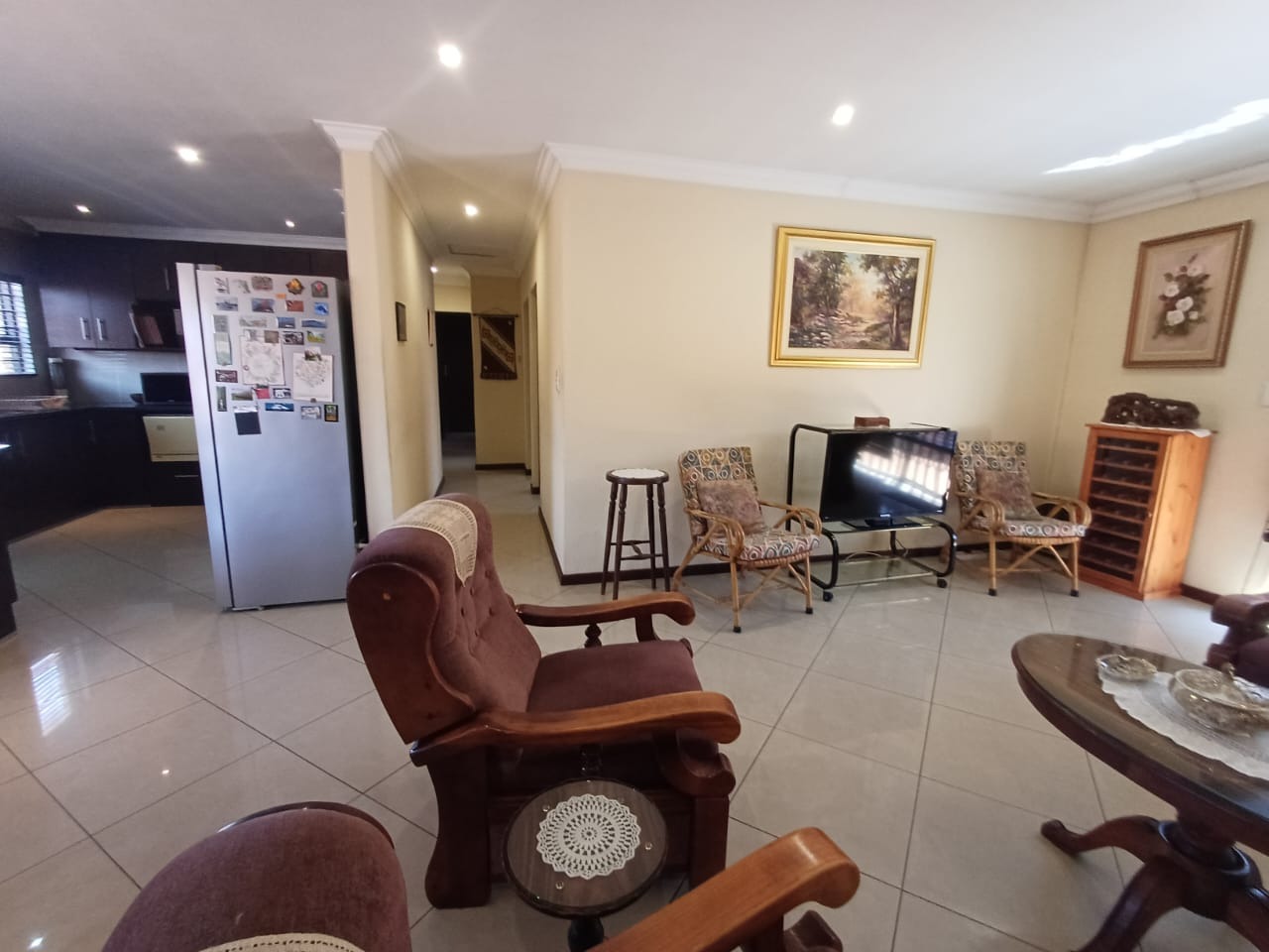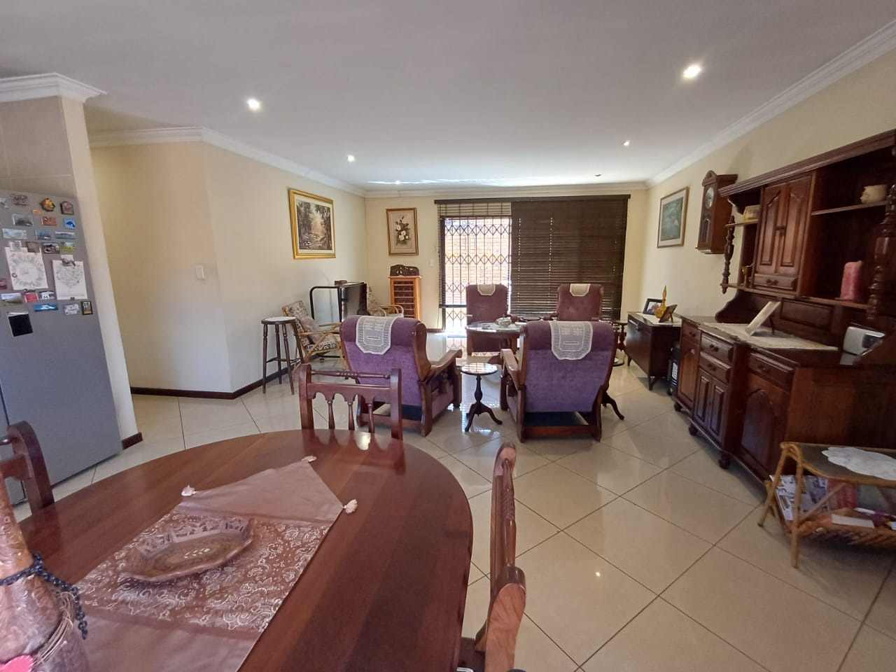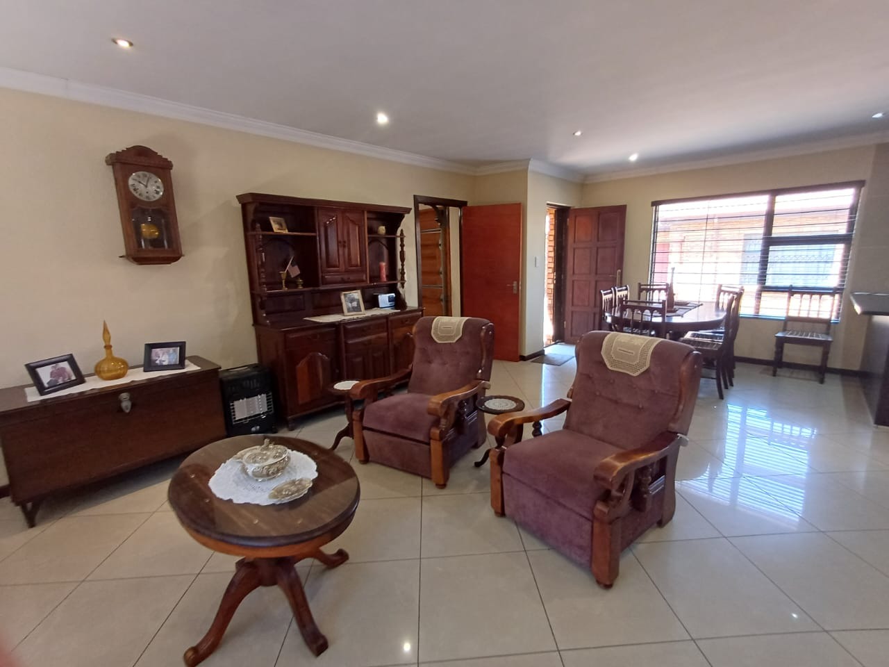 Security is a priority, with features such as electric fencing, burglar bars, a security gate, and an intercom system, all within a totally walled perimeter, providing peace of mind. This home also embraces sustainable living with solar panels, a battery inverter, and a solar geyser, contributing to energy efficiency and reduced utility costs.